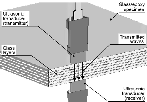 透射超声检测:使用两个换能器,在被检查区域的两侧各有一个。超声波信号从一个换能器传送到其他传感器。然后用仪器测量信号强度的损失。该仪器以原始信号强度的百分比或分贝表示损失。将信号损耗与参考标准进行比较。损失大于参考标准的区域表示为缺陷区域。