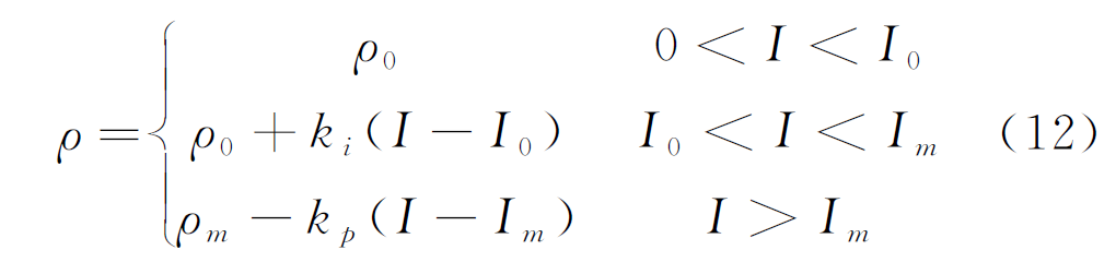 对于电弧区,其电阻率可设定为金属导体的电阻率;对于火花放电区,依据对大量冲击特性试验数据的分析结果,可取7%ρ0;对于半导体区,土壤电阻率为区域内电场强度的函数,即ρ=f(E);恒定电导区,电阻率为基准电阻率ρ0,保持不变。