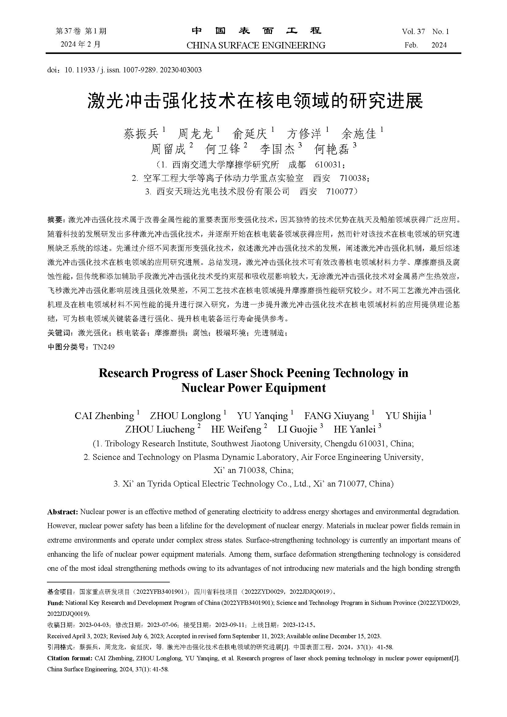 作者:蔡振兵,周龙龙,俞延庆,方修洋,余施佳,周留成,何卫锋,李国