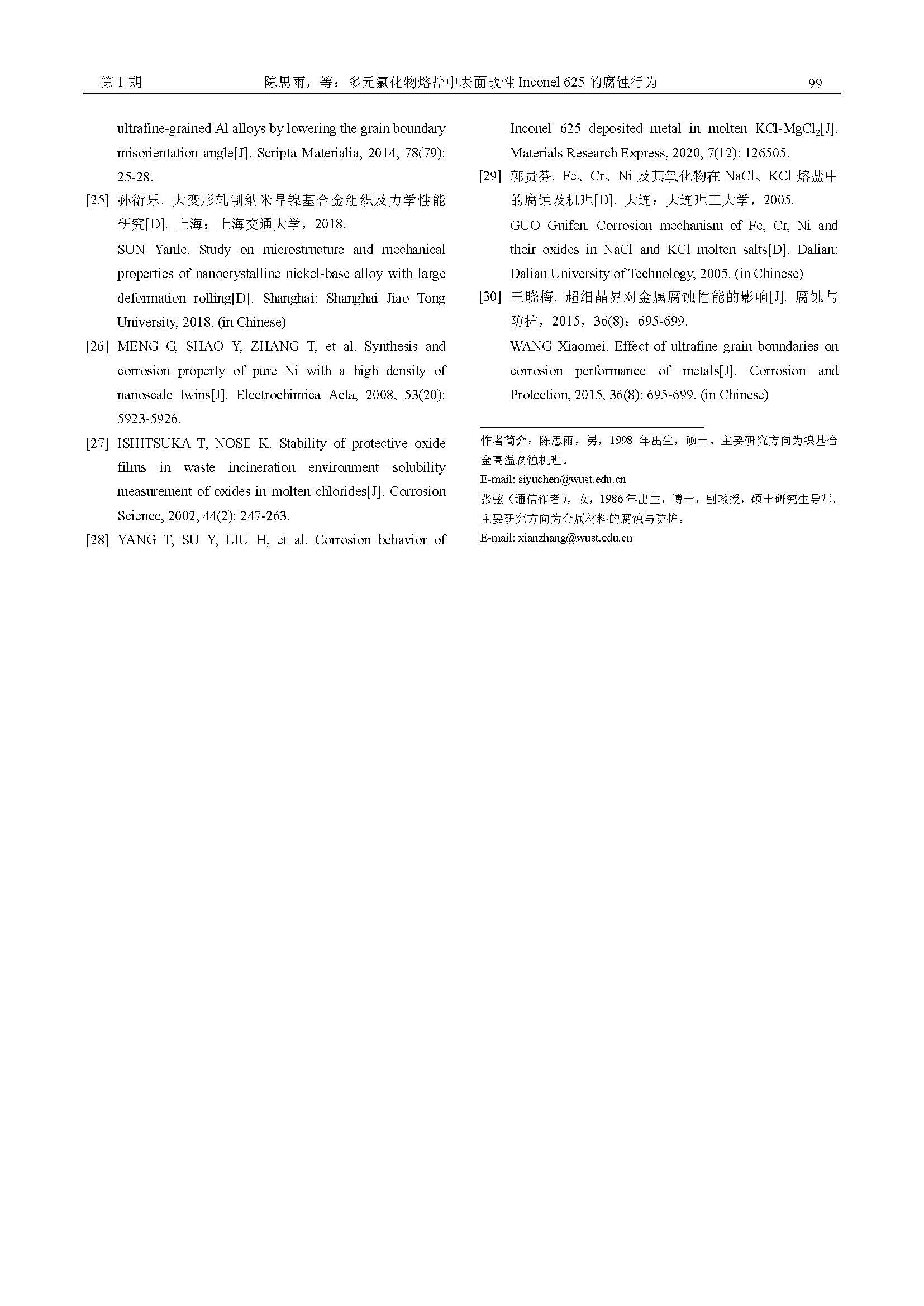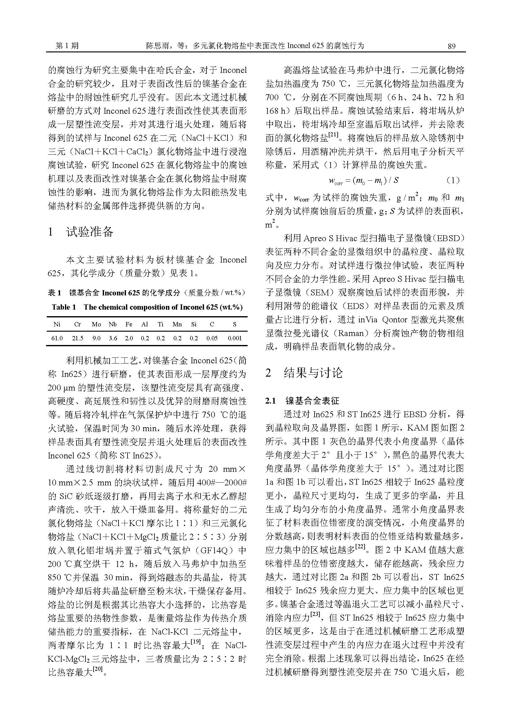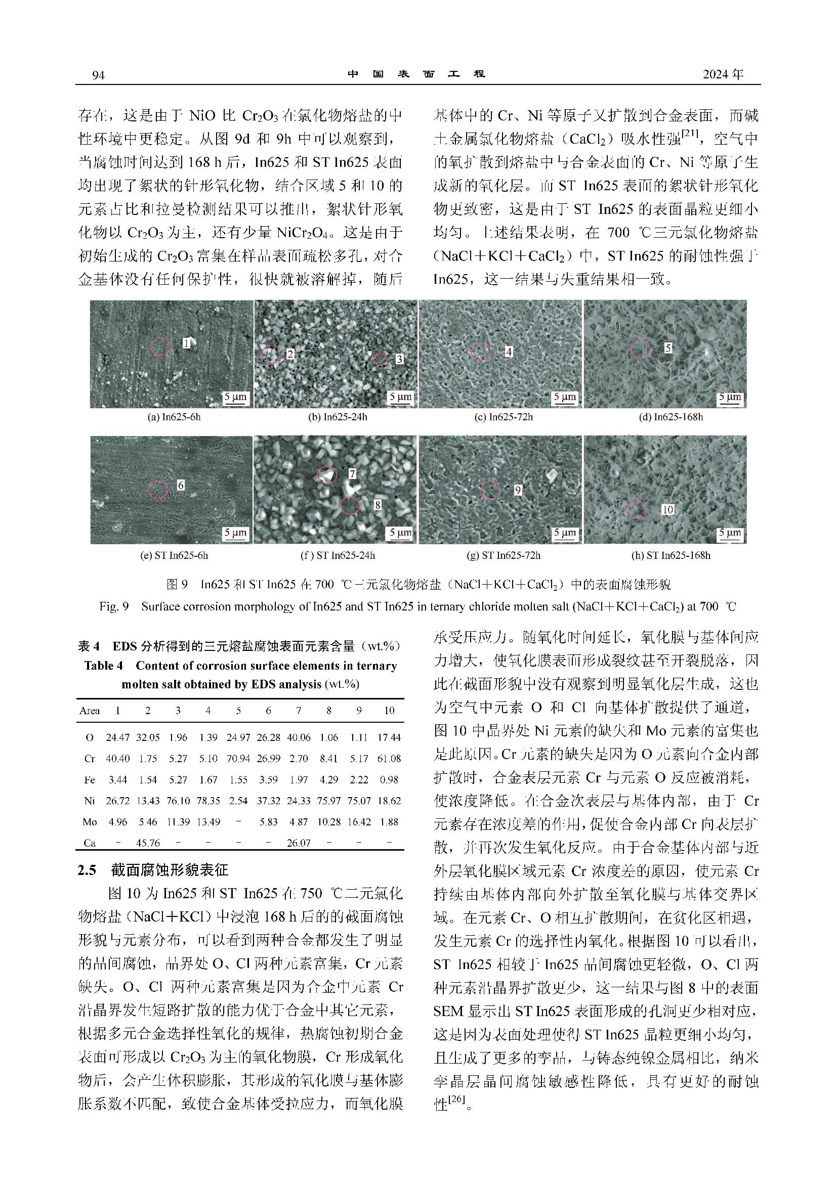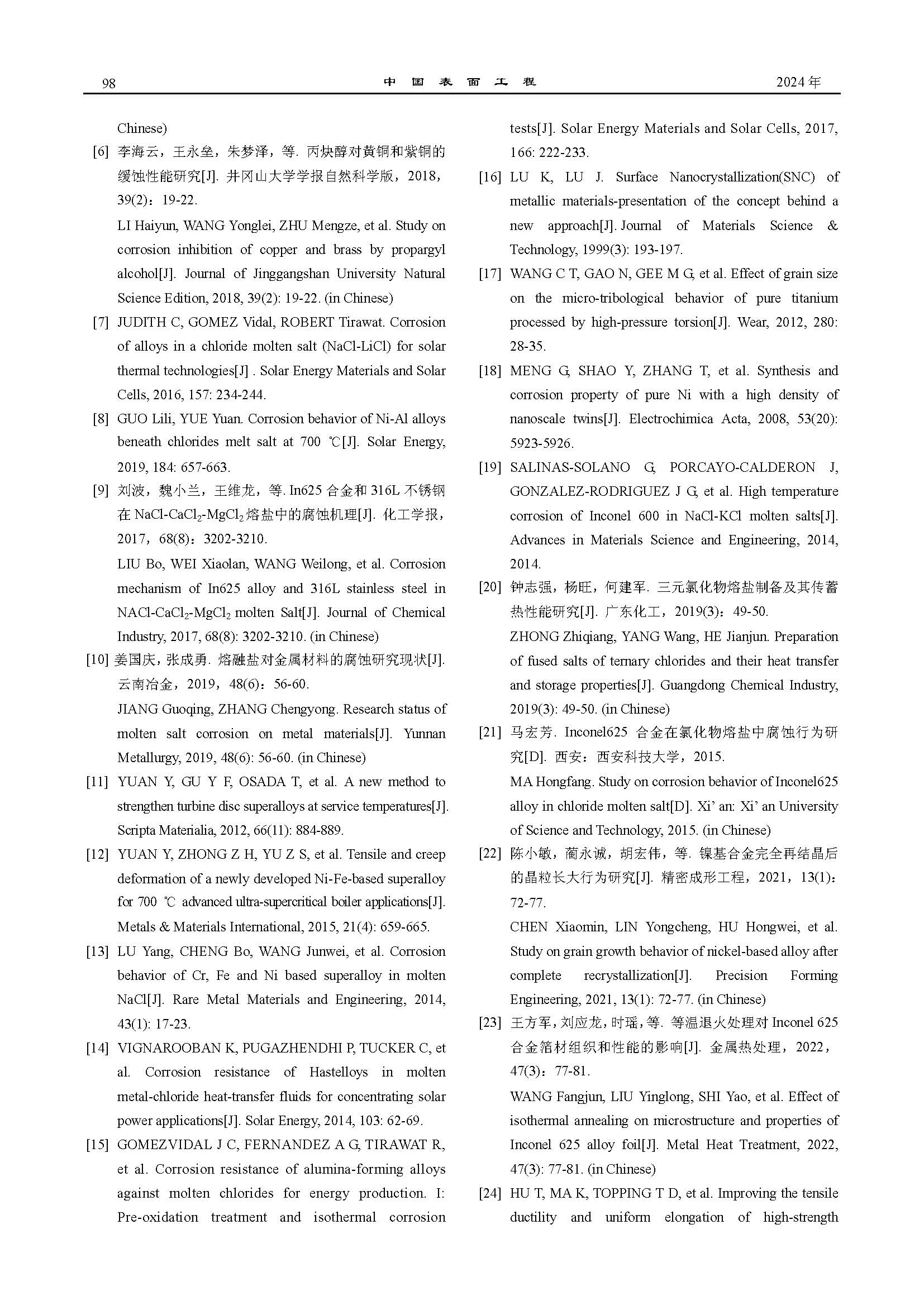 多元氯化物熔盐中表面改性Inconel625的腐蚀行为