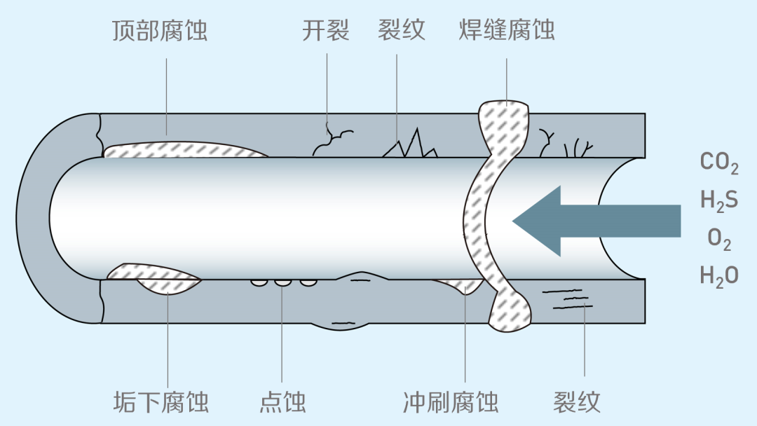 如前文《海底管道面临的内腐蚀风险概述》所述,海管内腐蚀主要类型如下图所示: