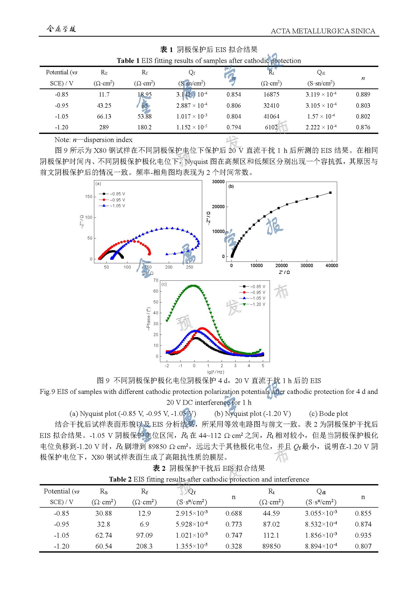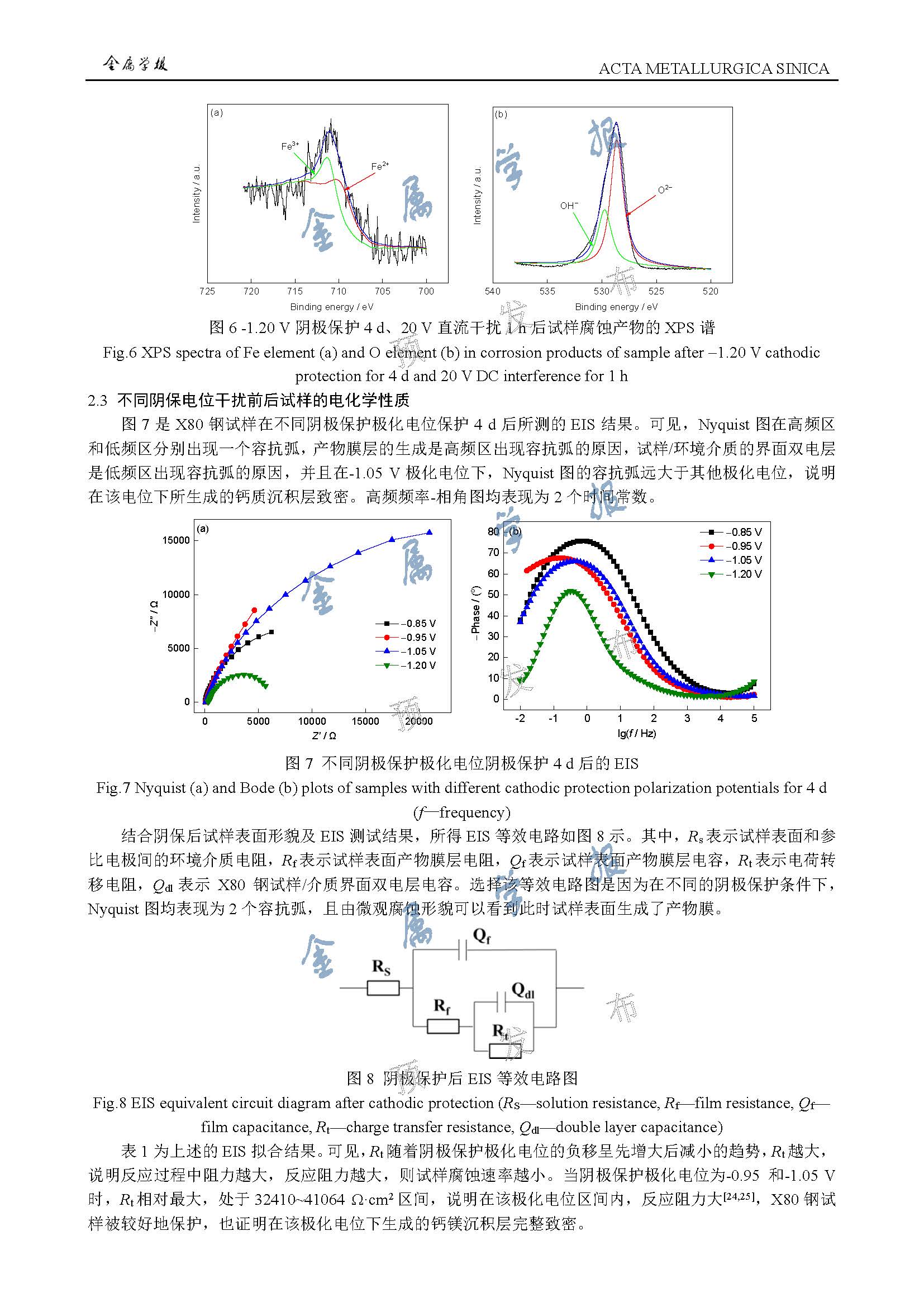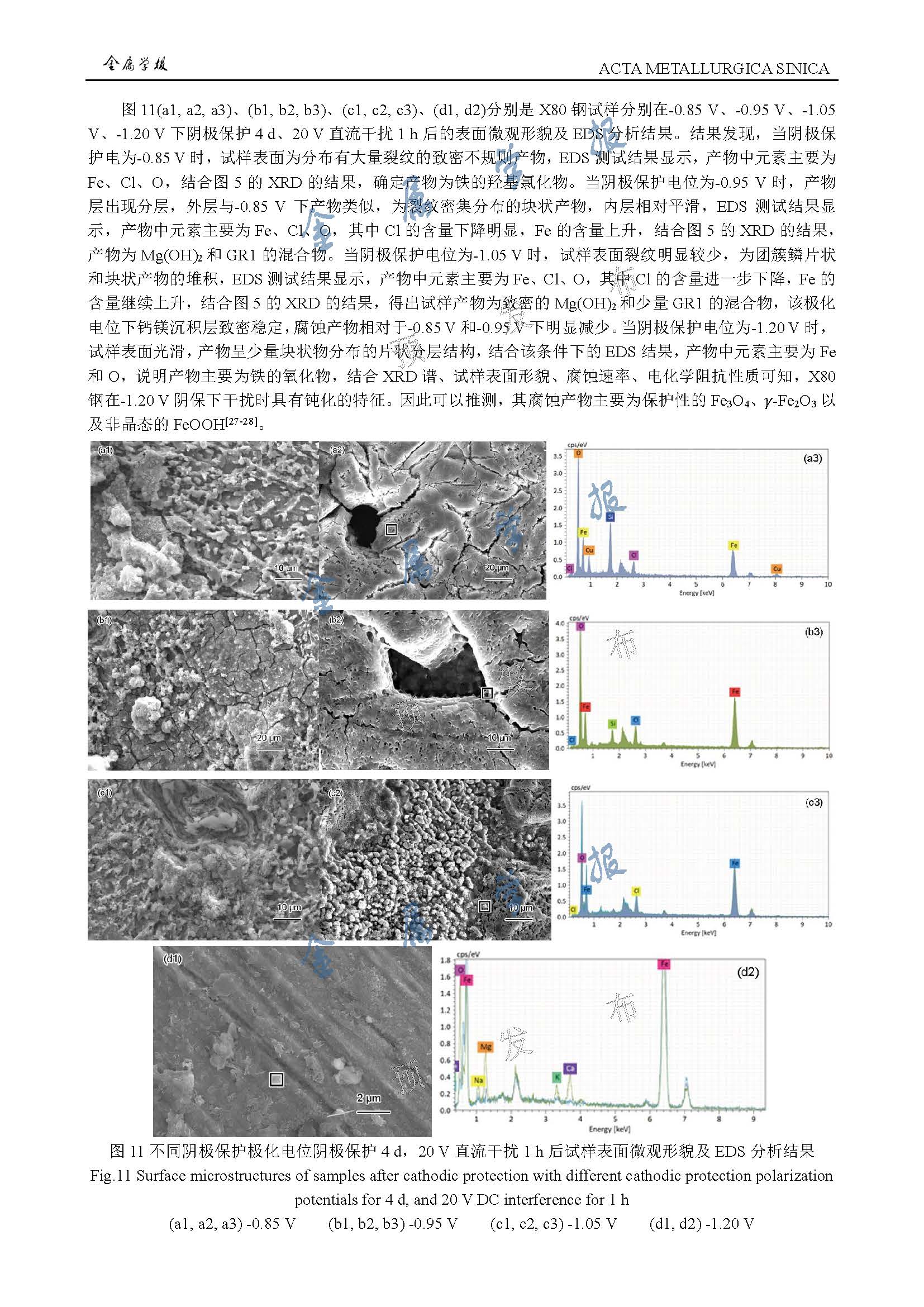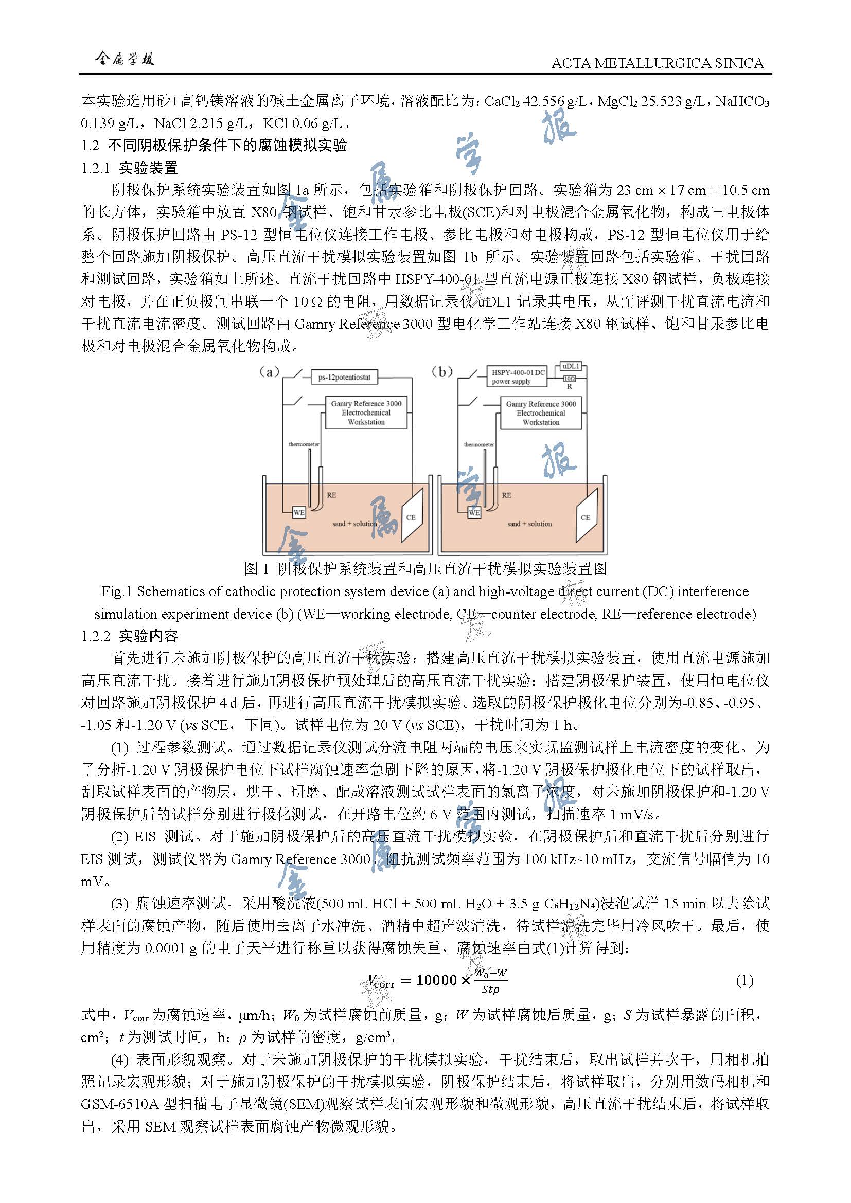 阴极保护条件对高压直流干扰下X80钢腐蚀行为影响规律及作用机制研究