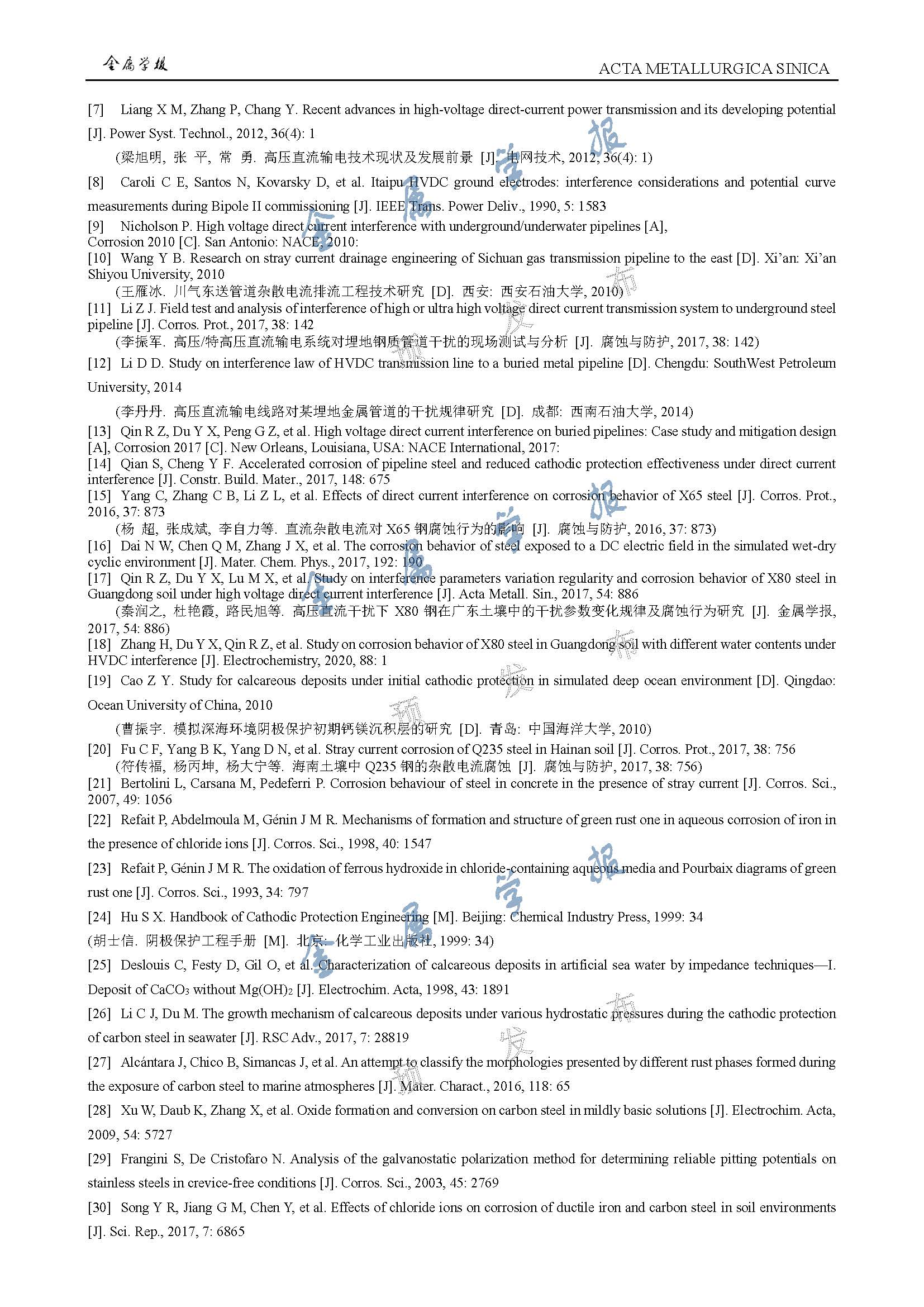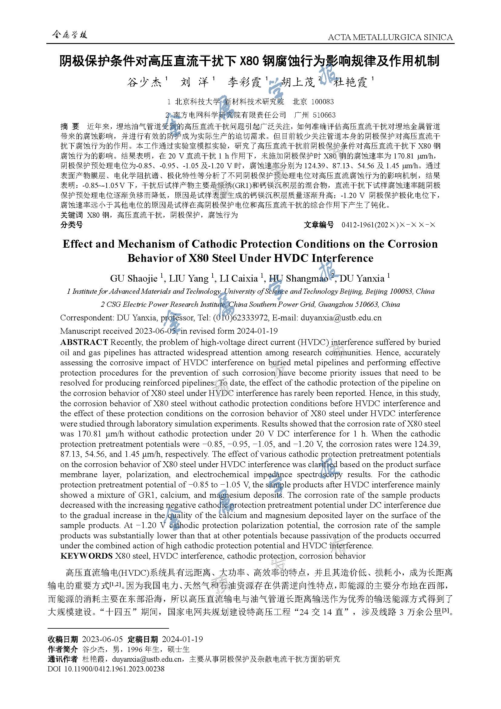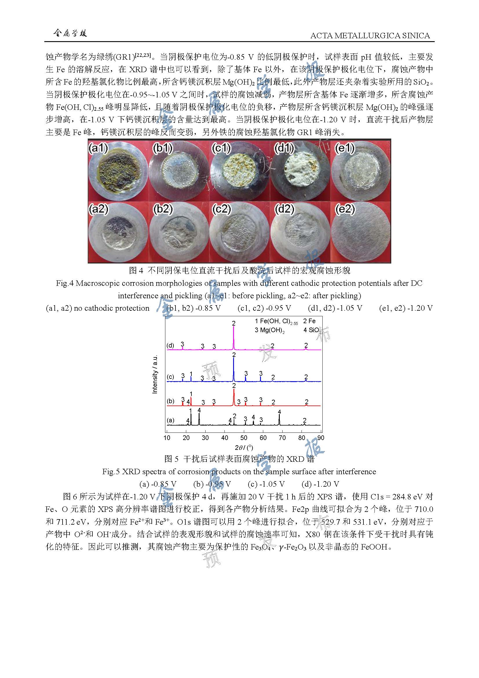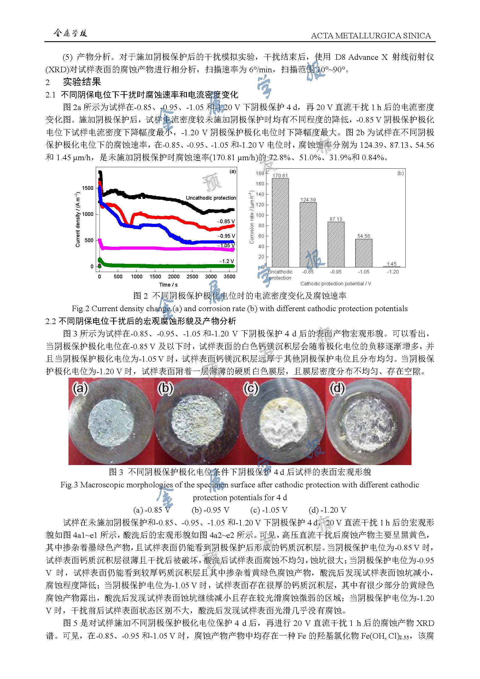 阴极保护条件对高压直流干扰下X80钢腐蚀行为影响规律及作用机制研究