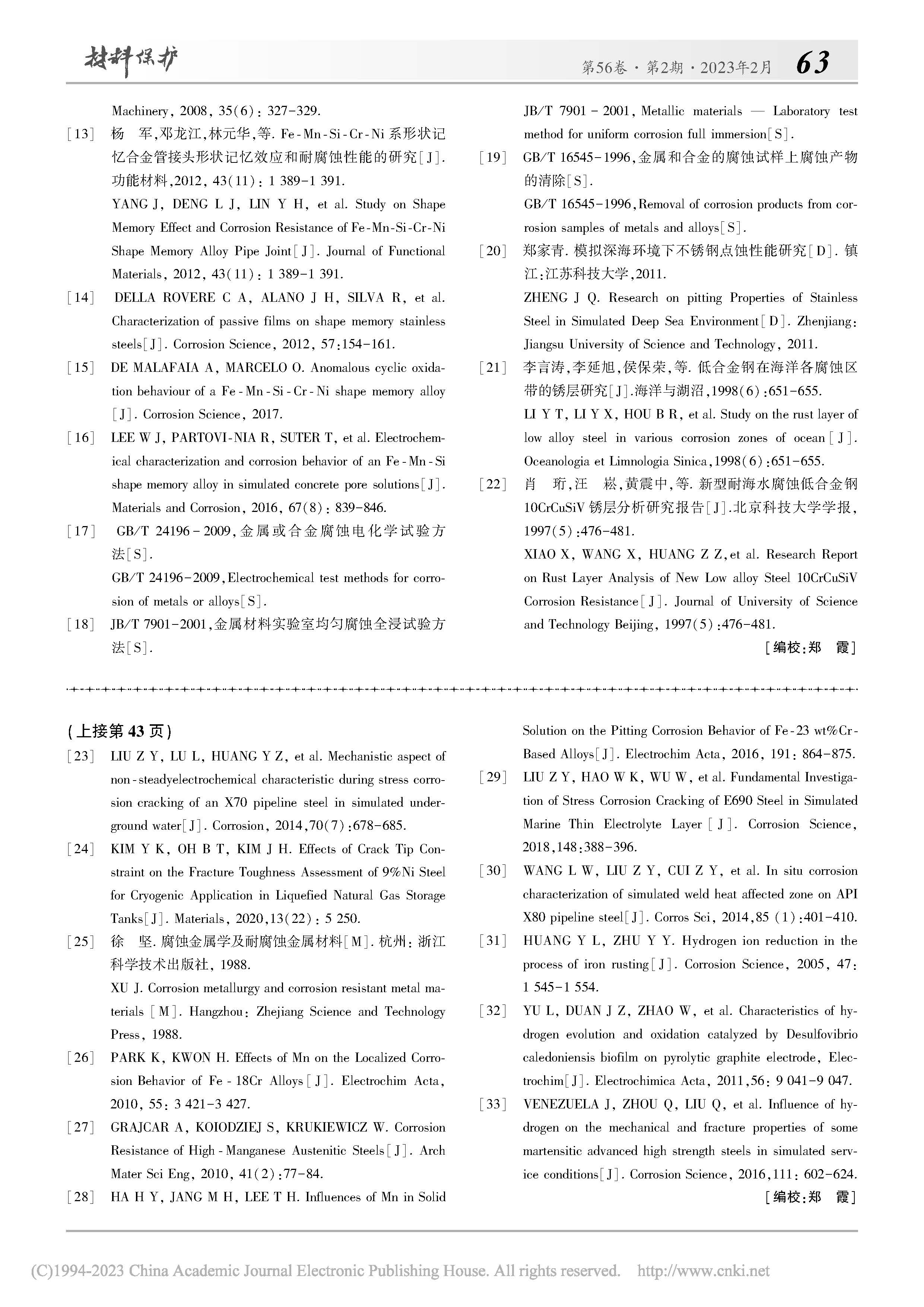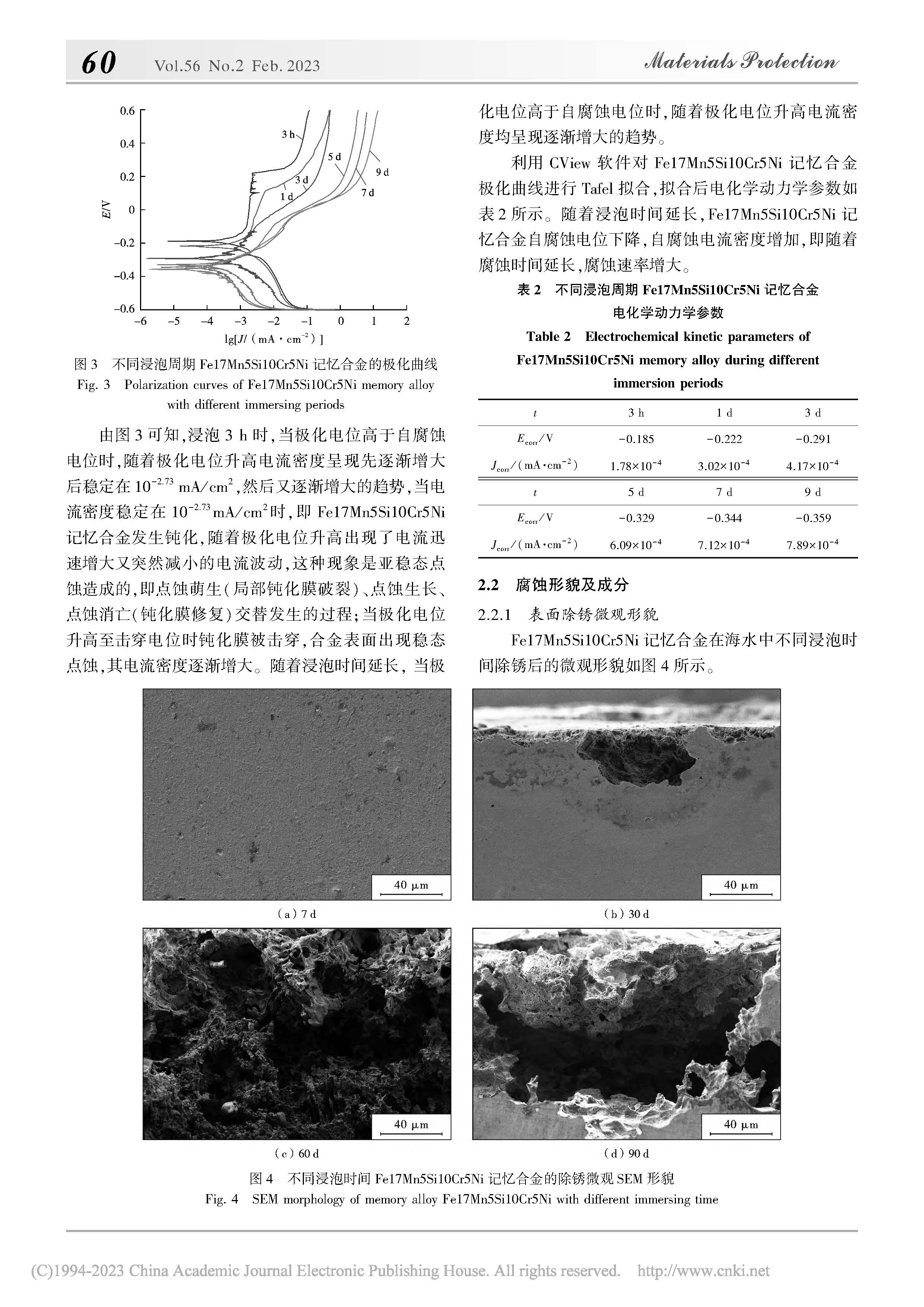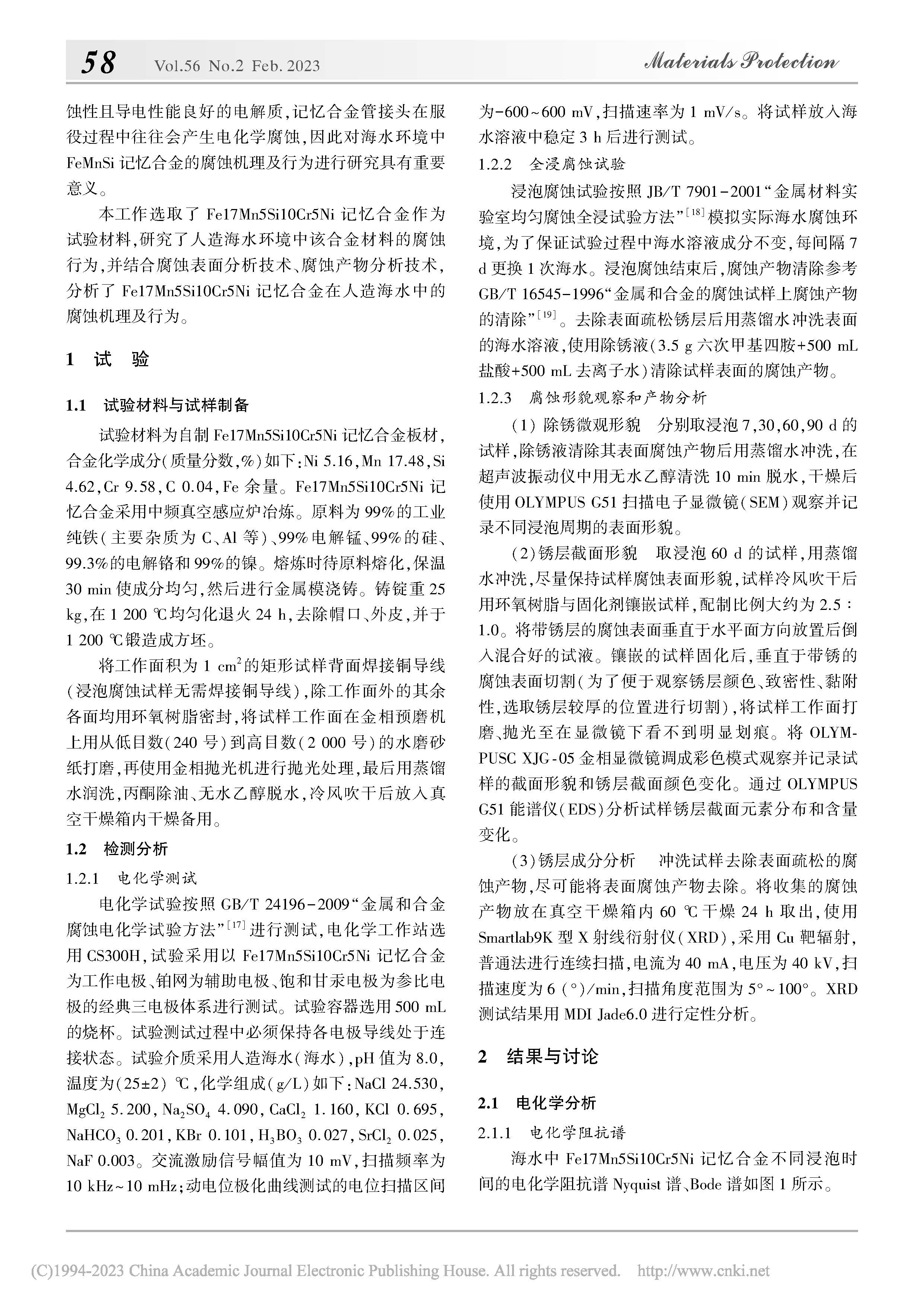 Fe17Mn5Si10Cr5Ni记忆合金在人造海水中的腐蚀行为研究