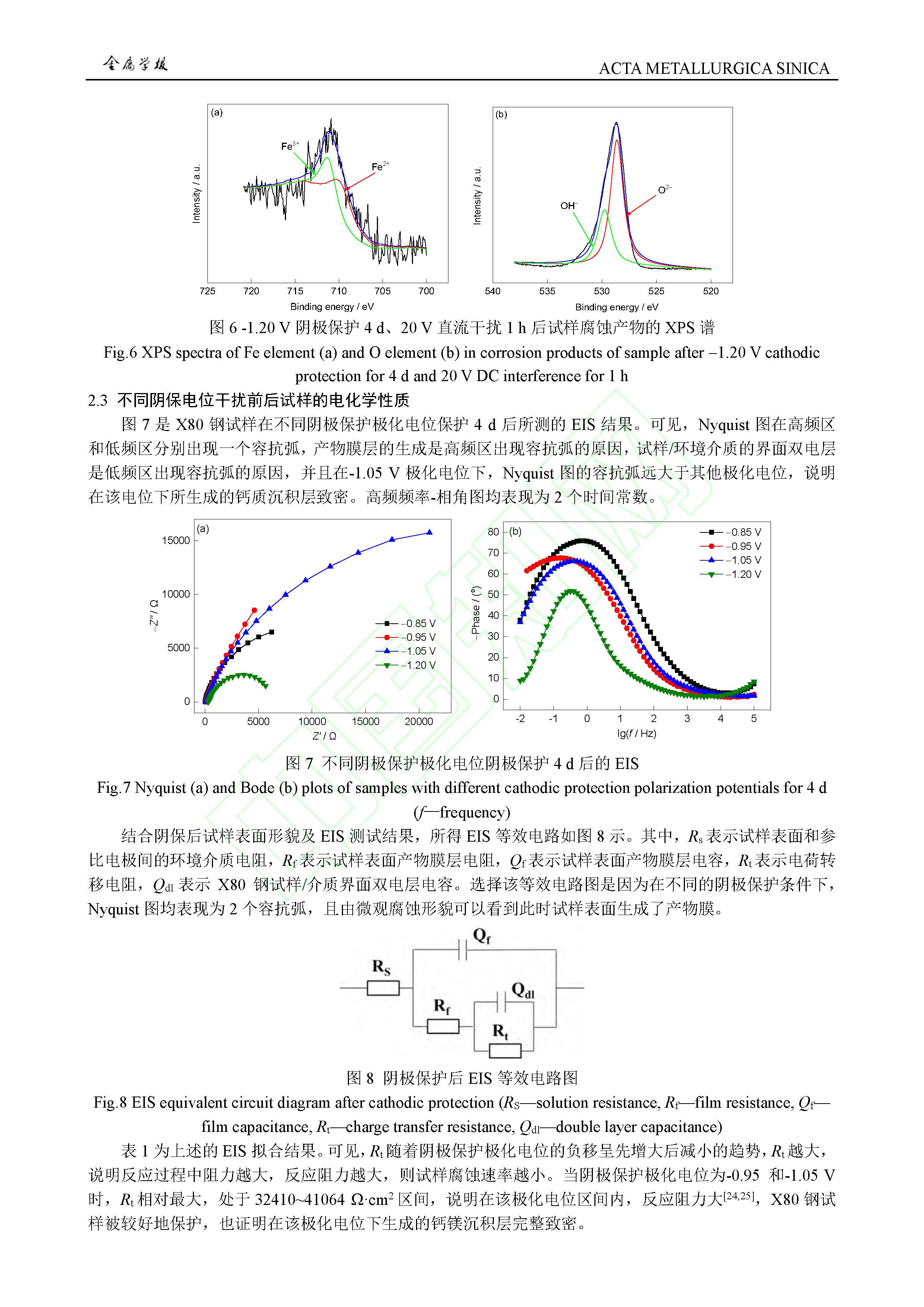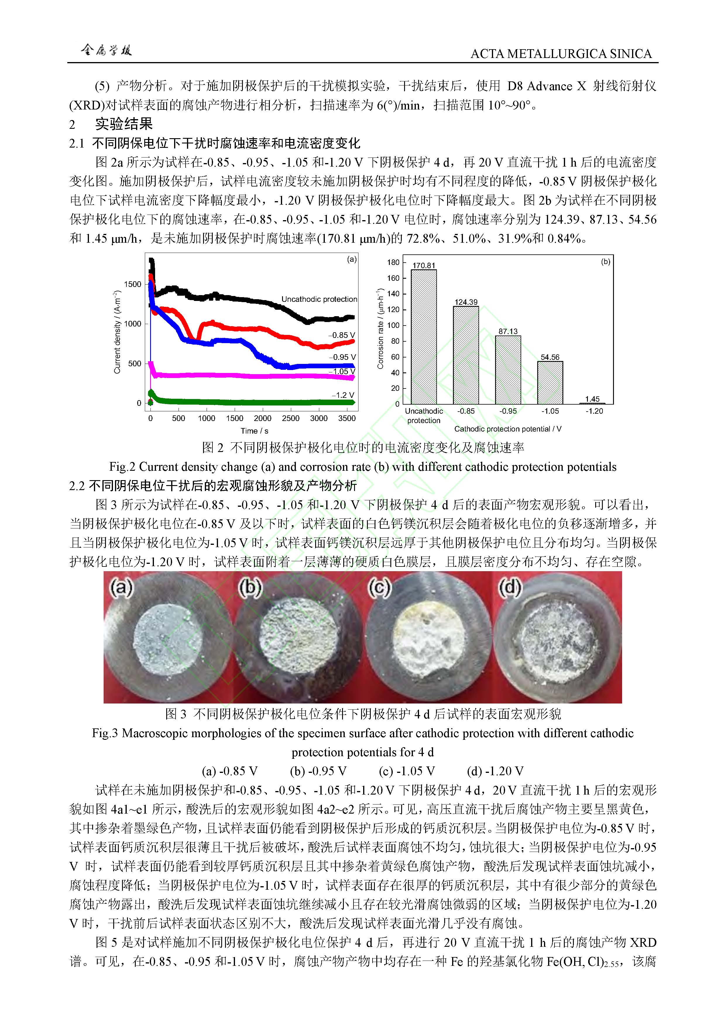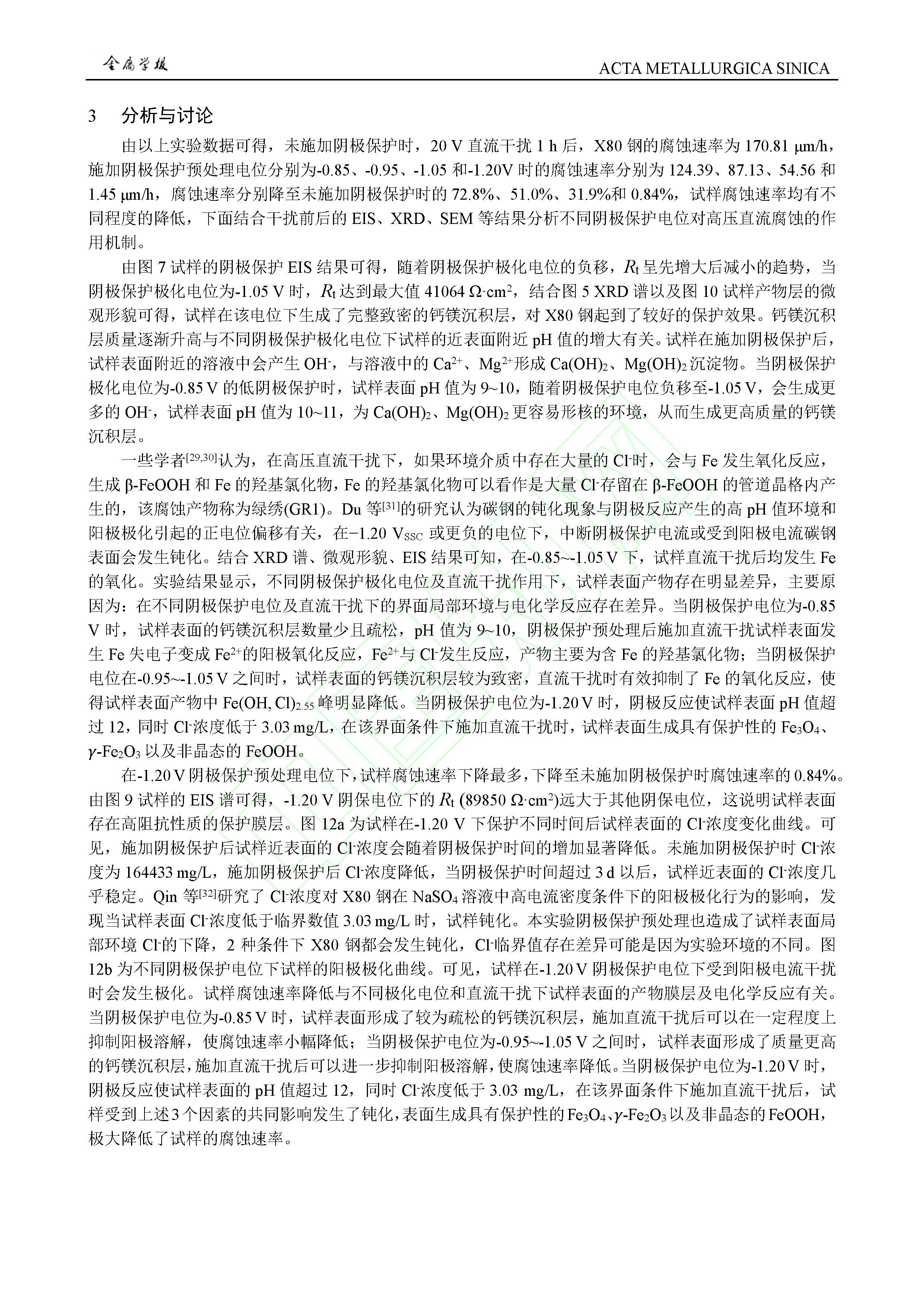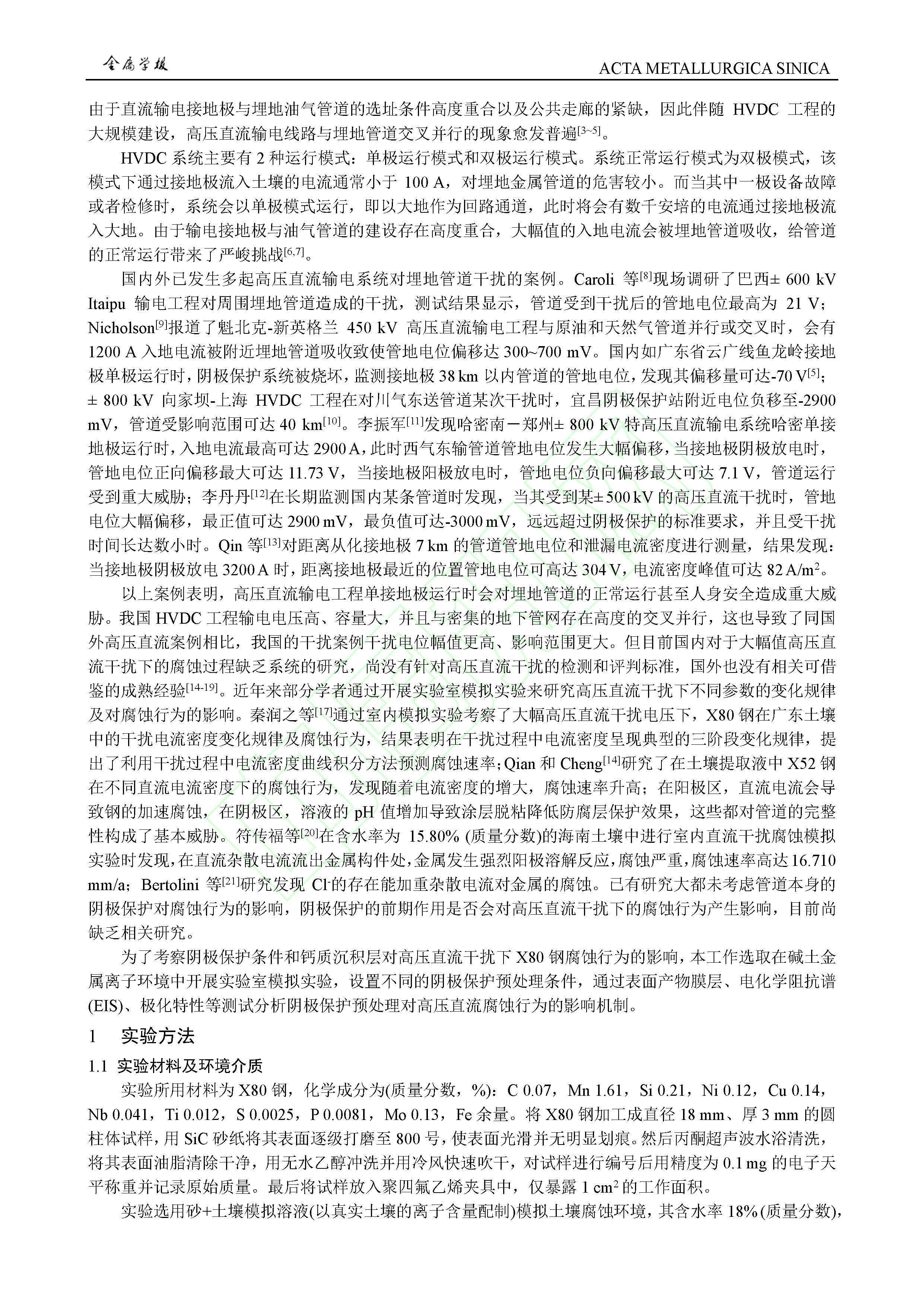 阴极保护条件对高压直流干扰下 X80 钢腐蚀行为影响规律及作用机制