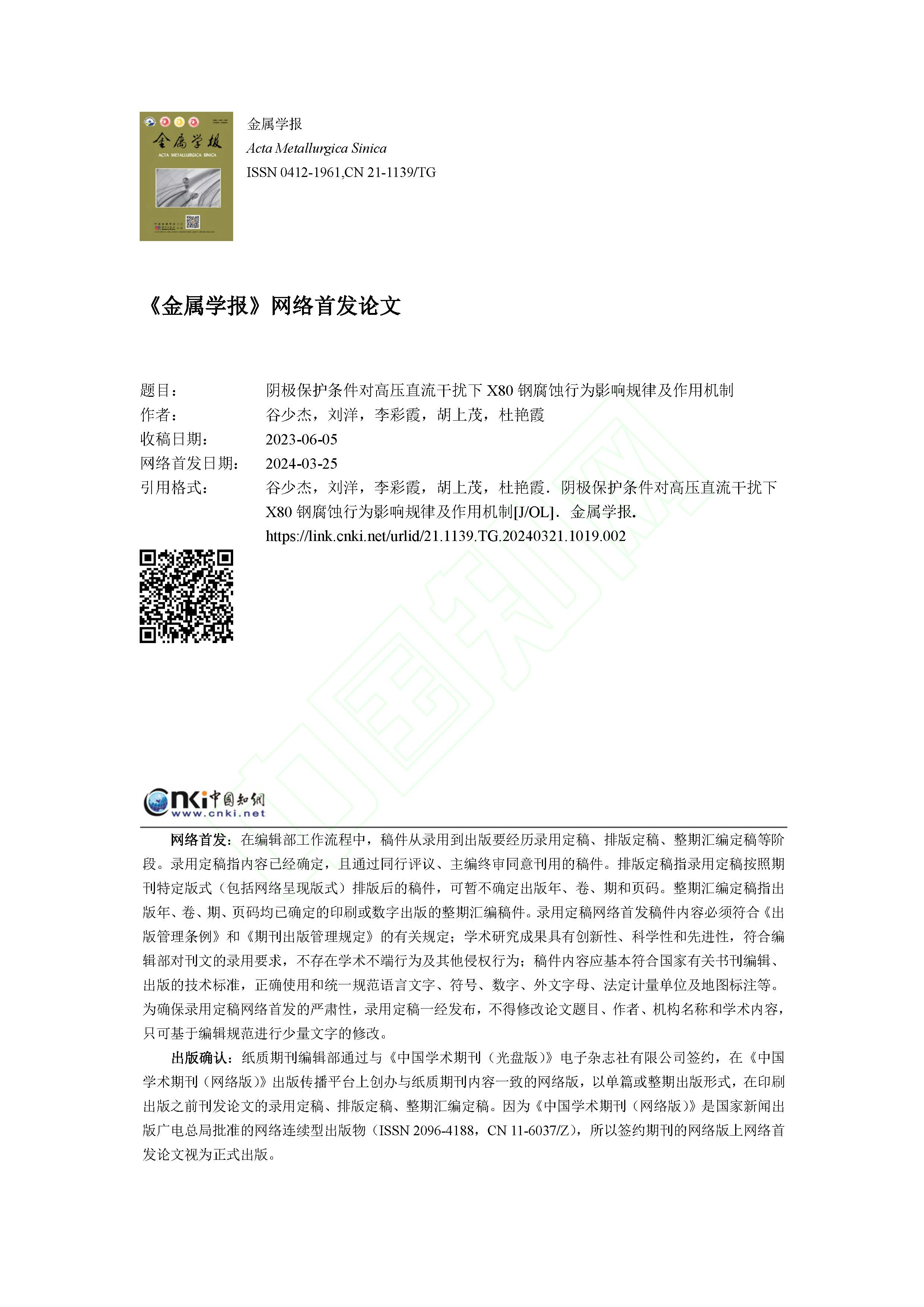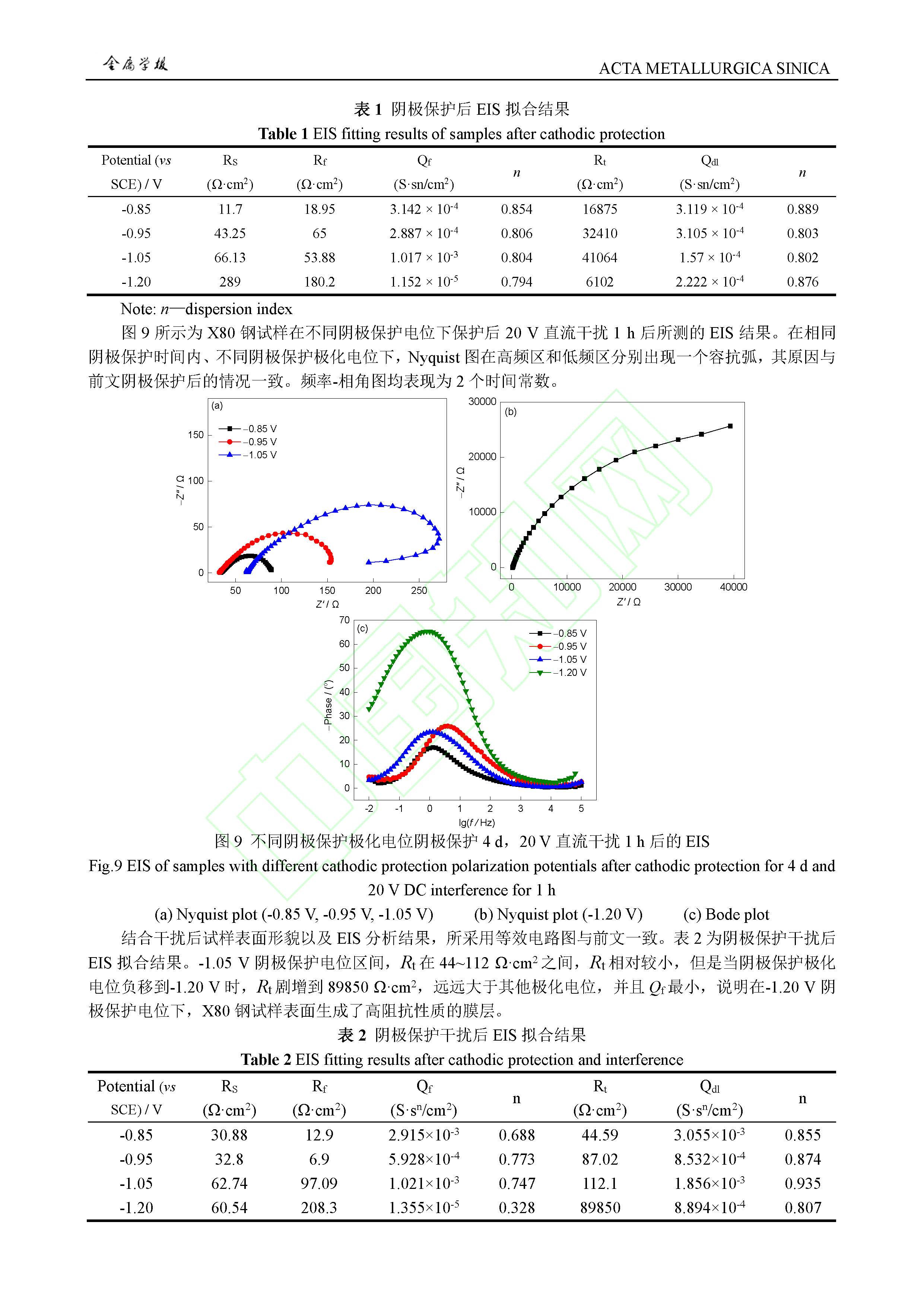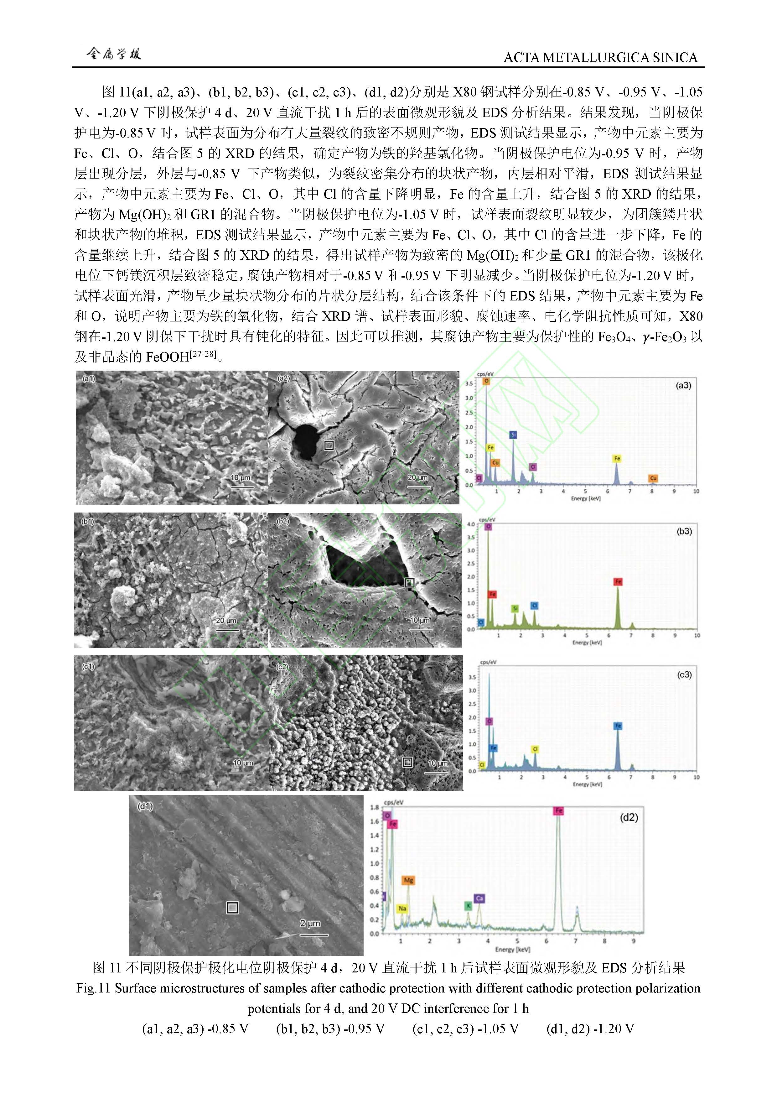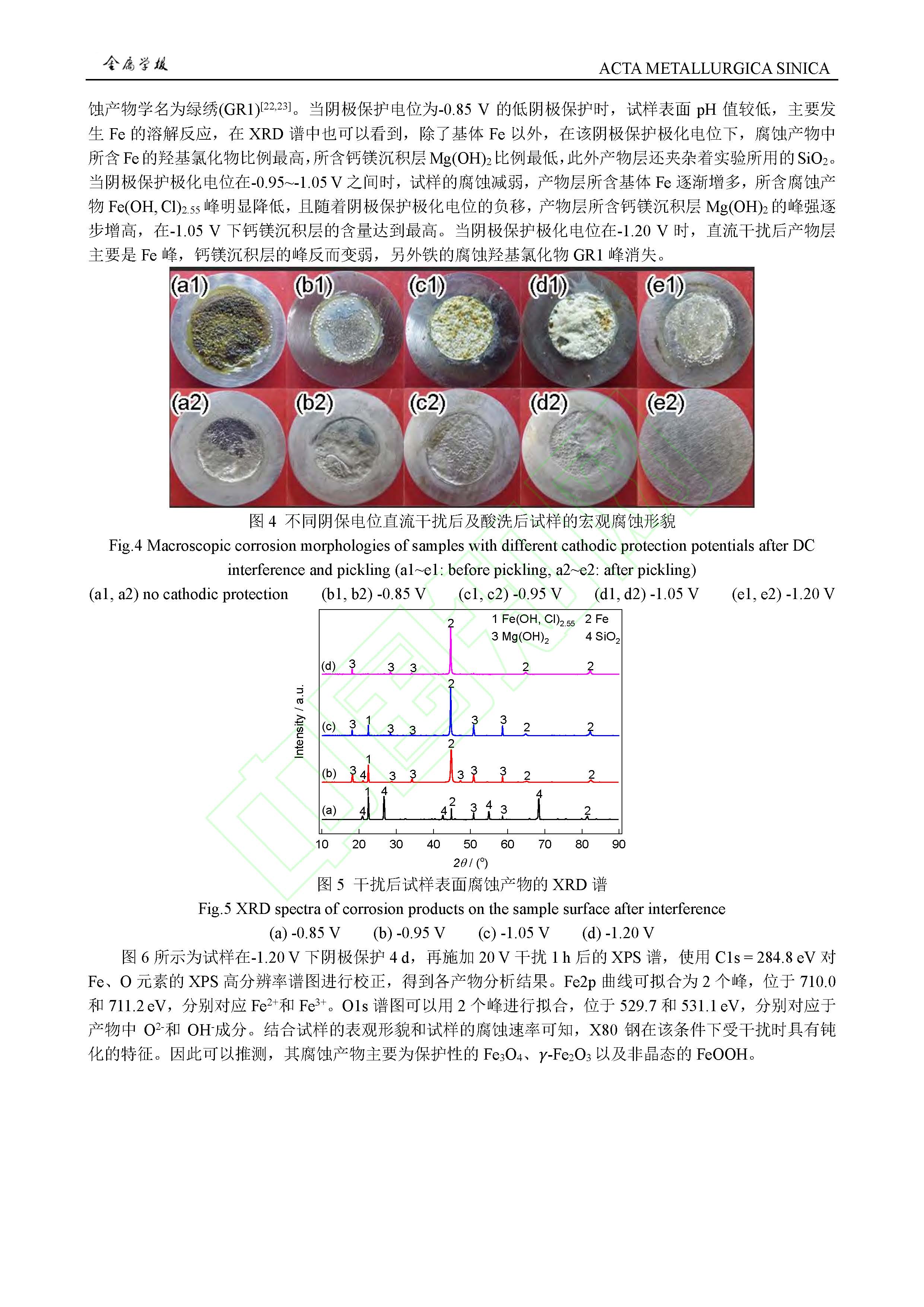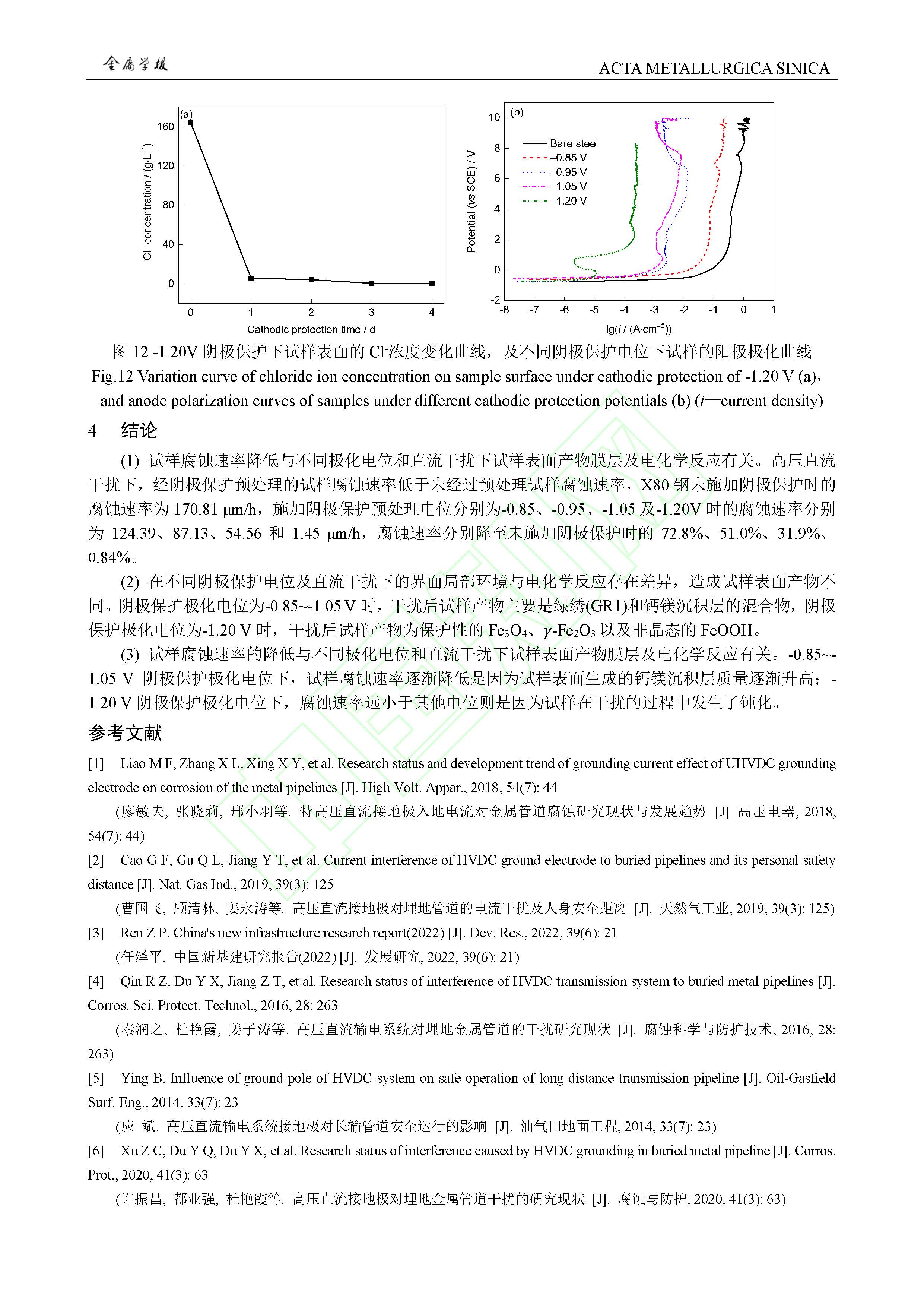 阴极保护条件对高压直流干扰下 X80 钢腐蚀行为影响规律及作用机制