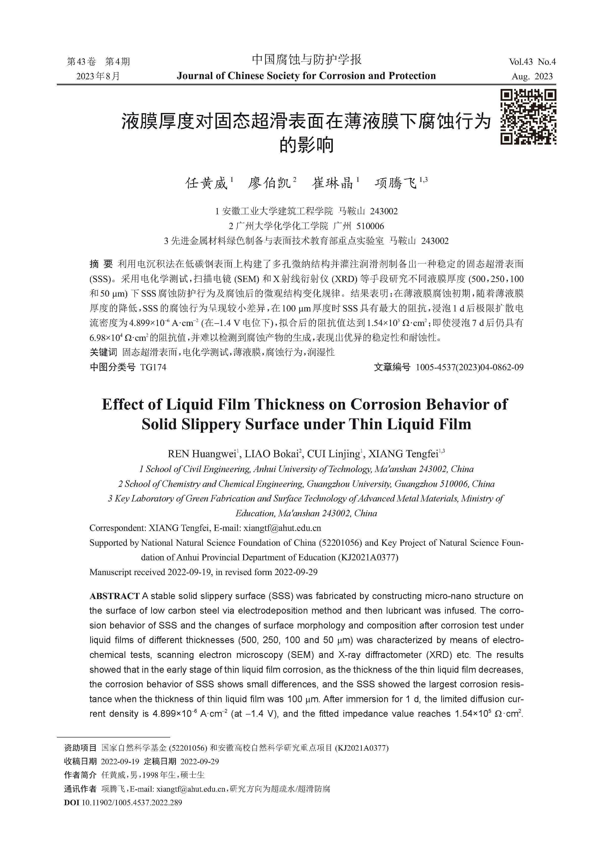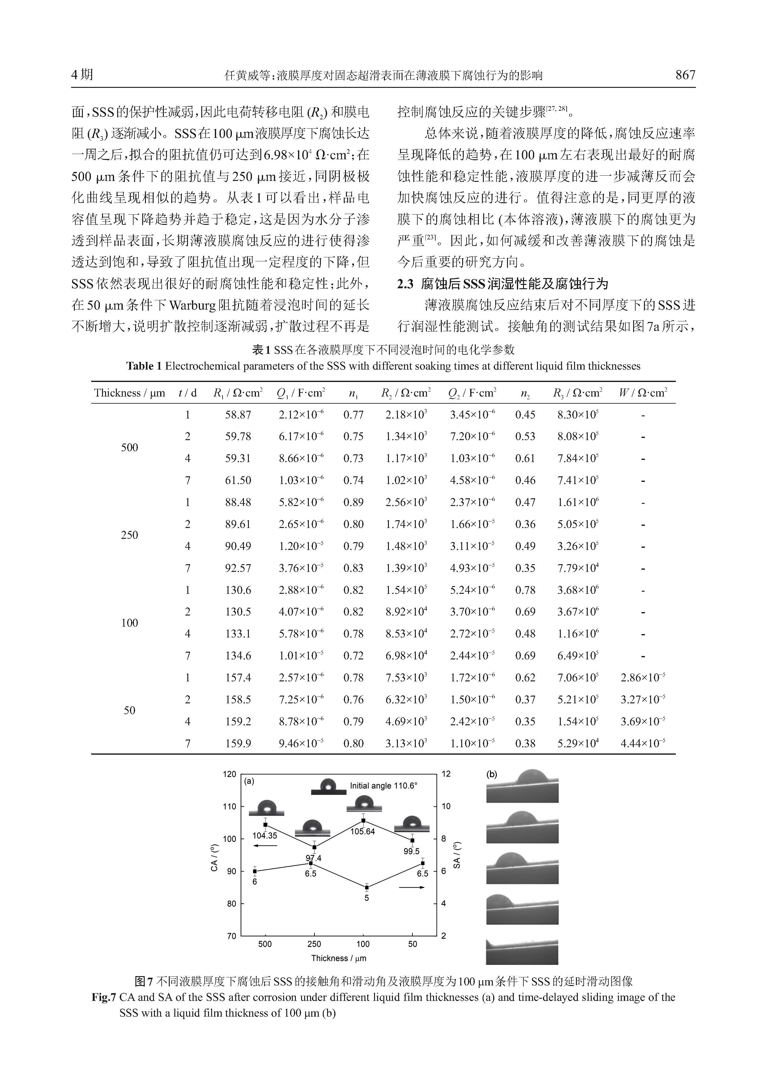 液膜厚度对固态超滑表面在薄液膜下腐蚀行为的影响