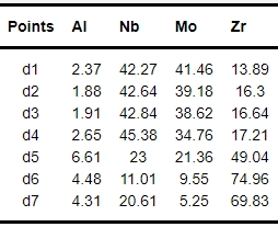 表4 AlNbMoZrB合金在300℃辐照的点扫描结果