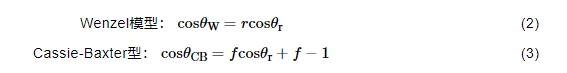 Young方程只适用于表面成分均匀且完全光滑的理想表面,而实际中的任何固体表面总是存在有一定的粗糙度,因此在Young方程基础上,Wenzel模型[38]与Cassie-Baxter模型[39]引入粗糙度因子r,进一步对接触角与表面粗糙度的关系进行阐述: