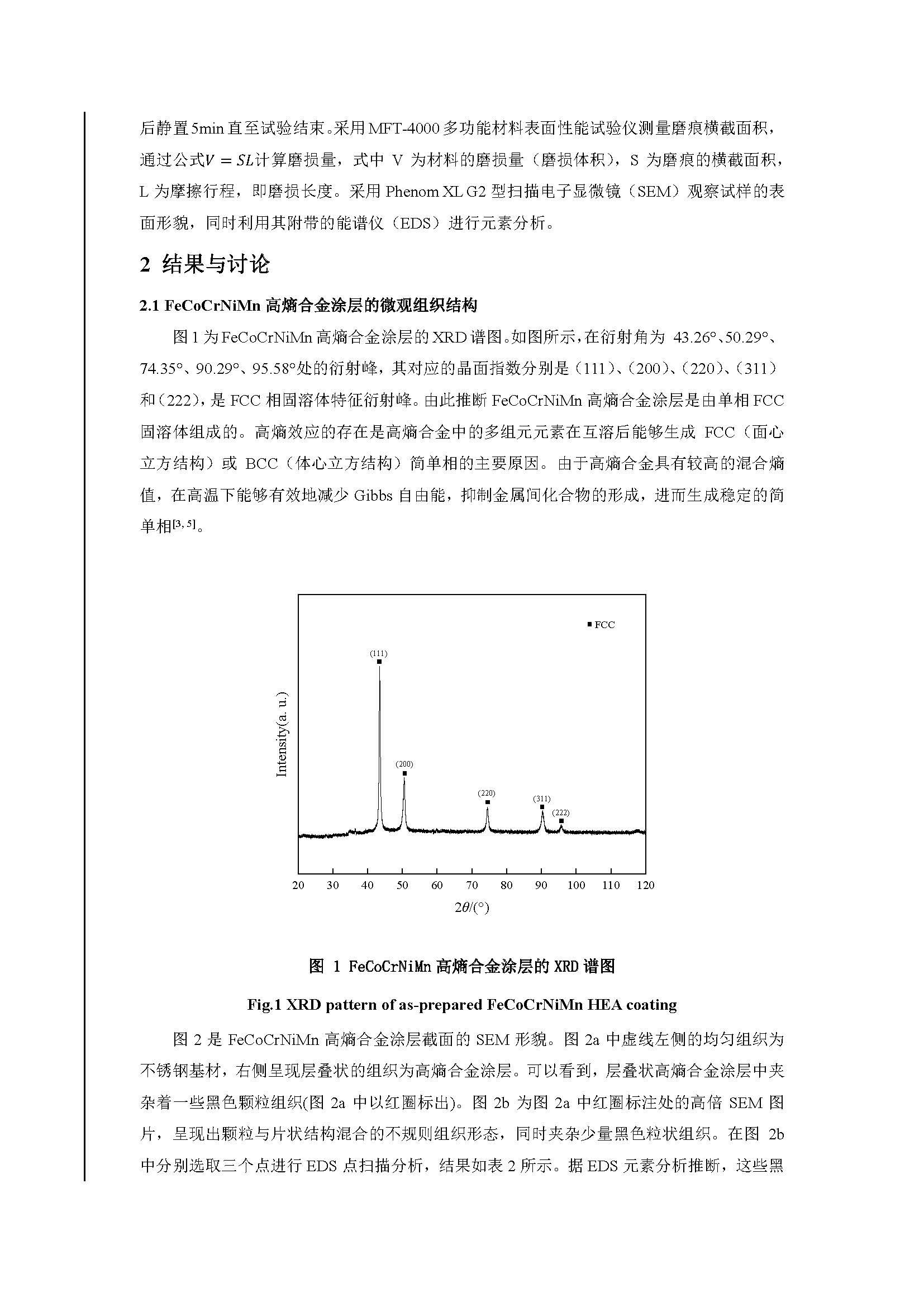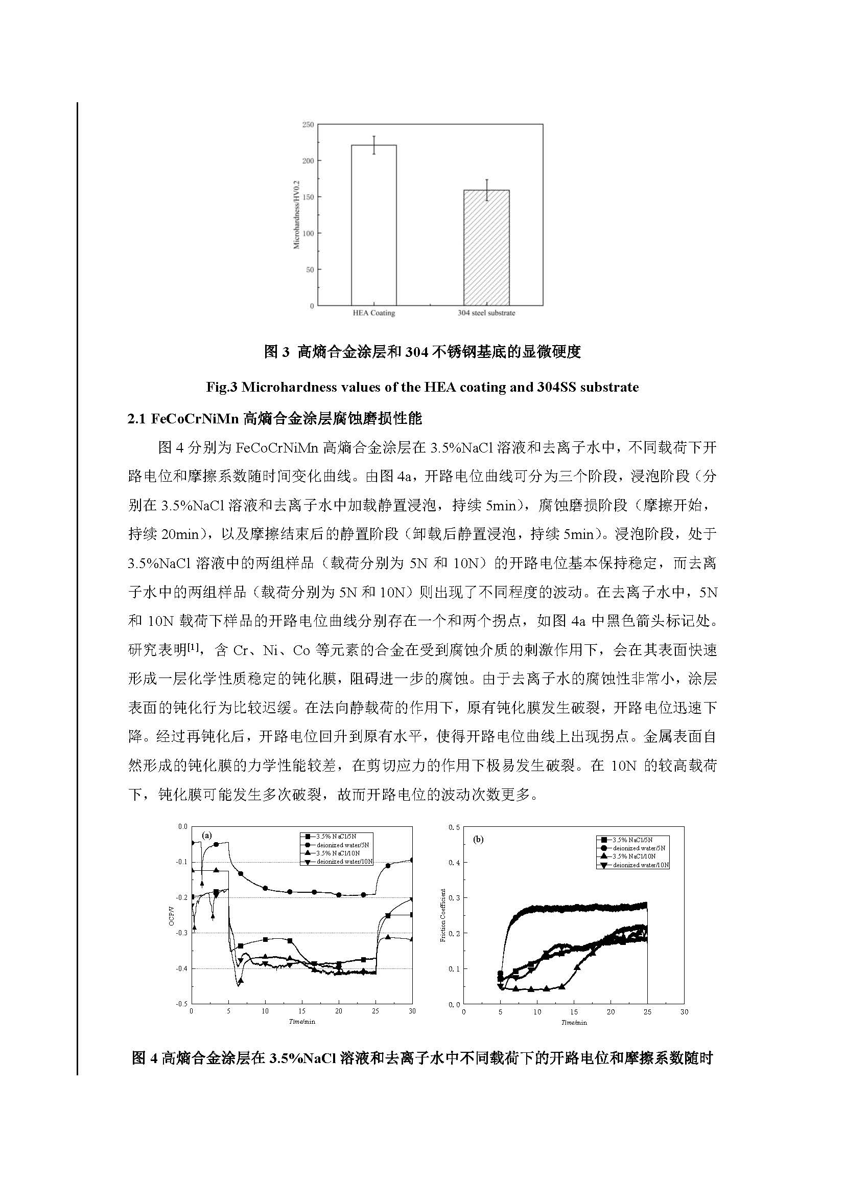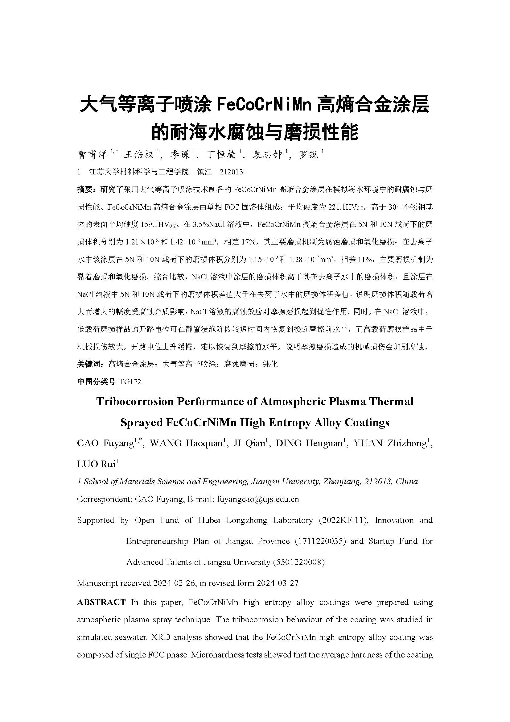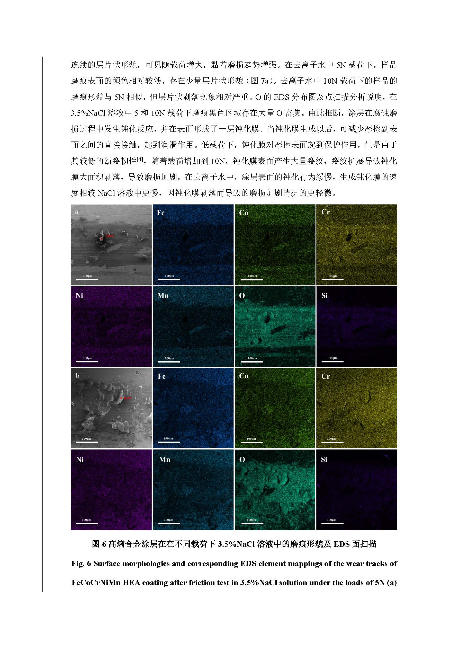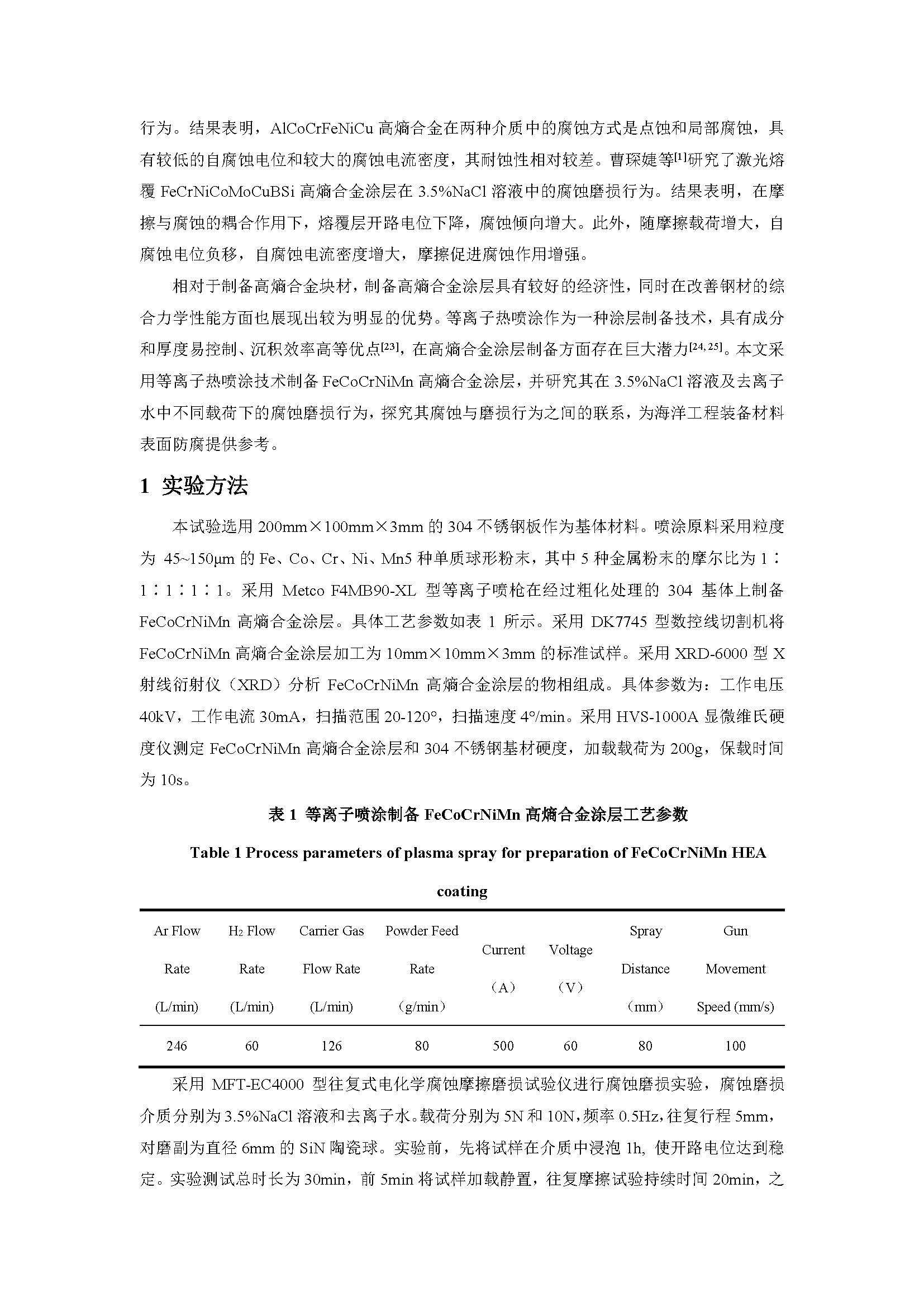 等离子热喷涂FeCoCrNiMn高熵合金涂层的腐蚀磨损性能
