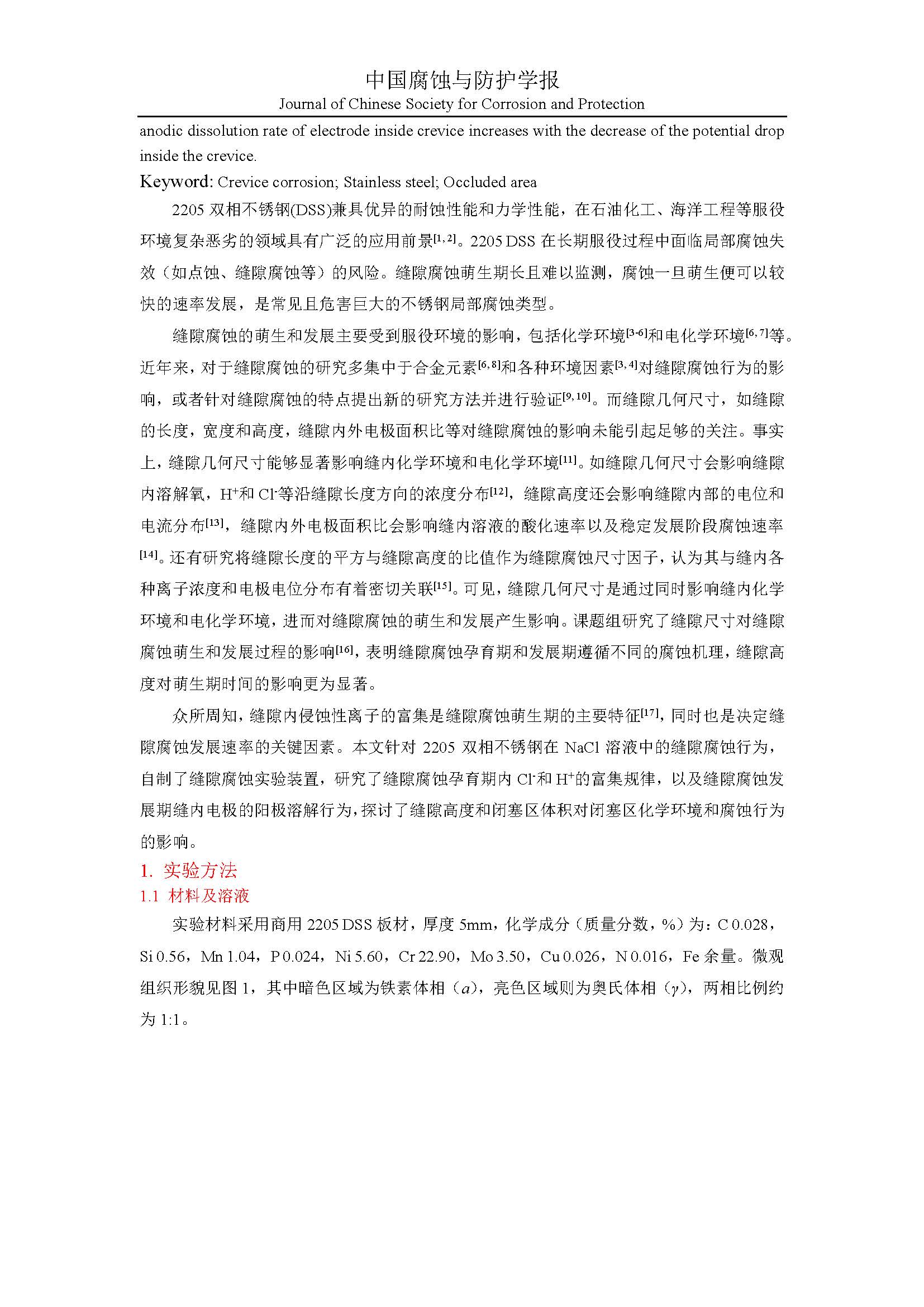 来源:中国腐蚀与防护学报
