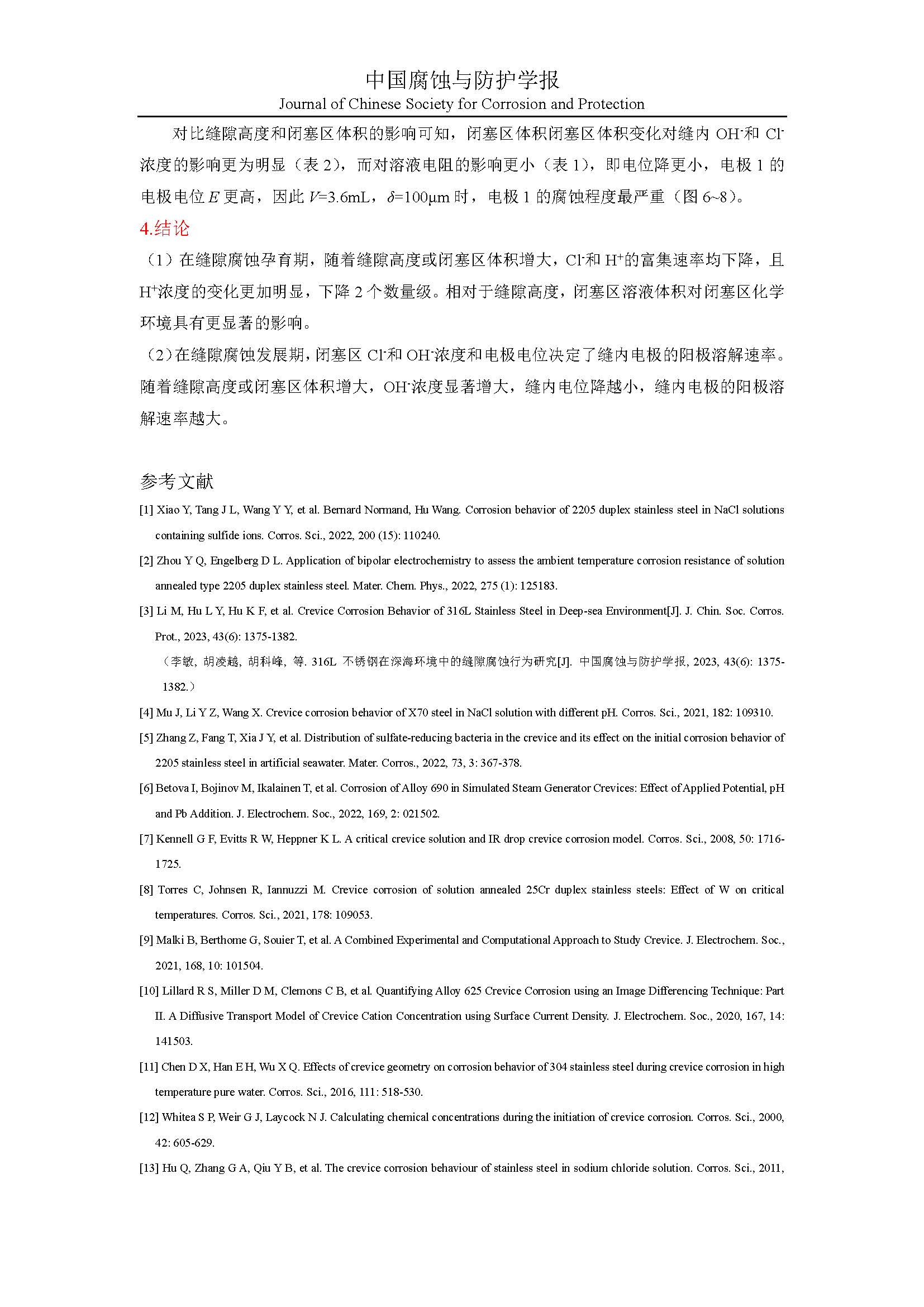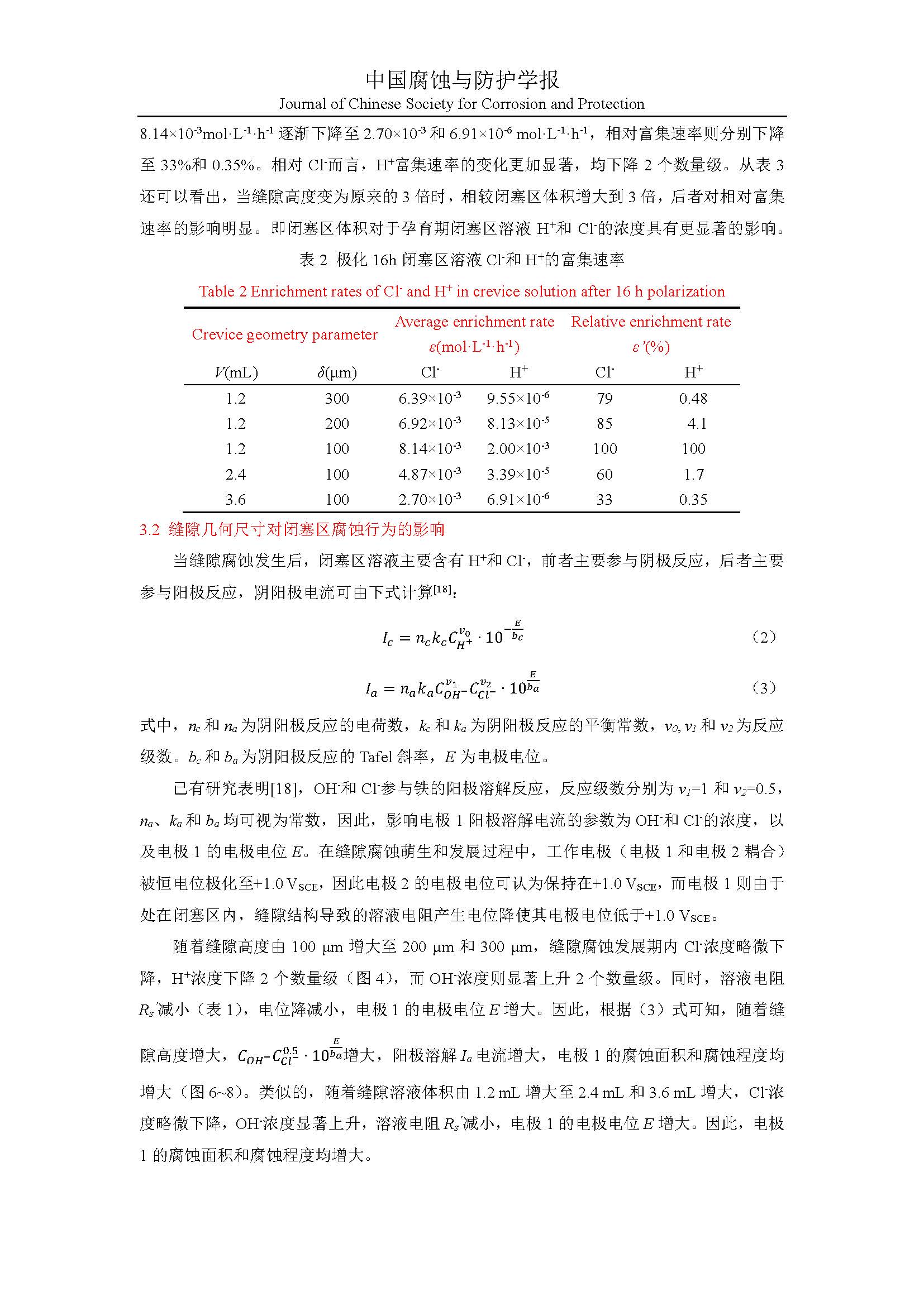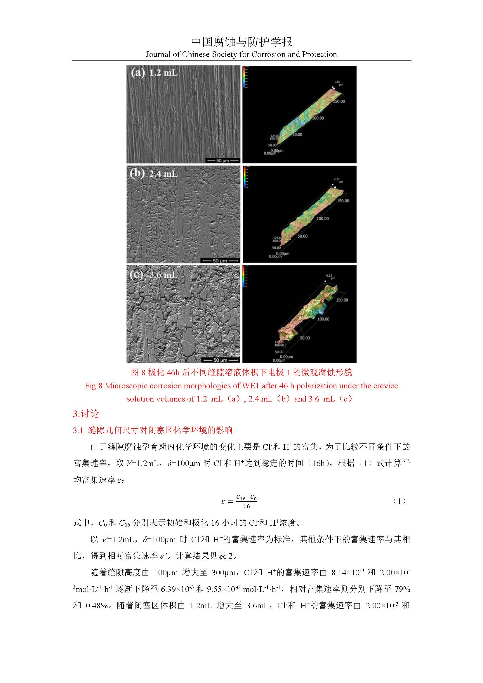 缝隙几何尺寸对闭塞区化学环境及腐蚀行为的影响