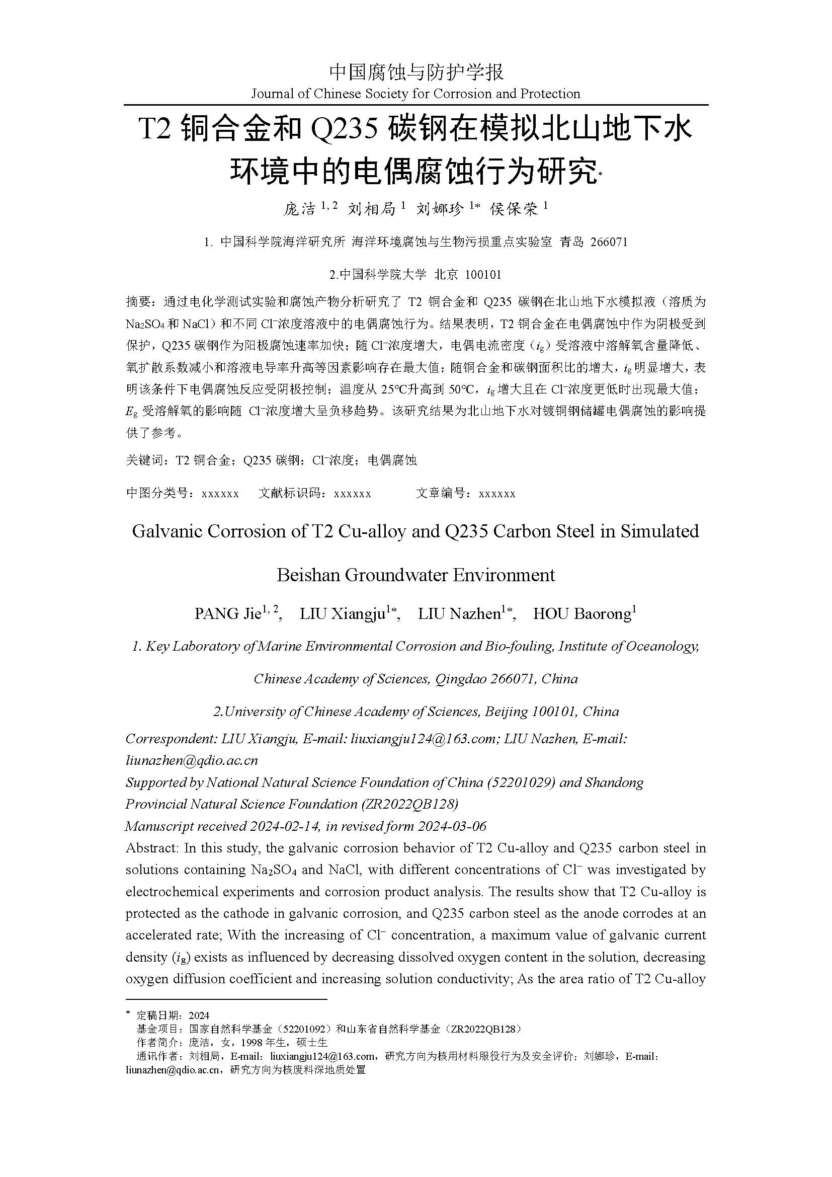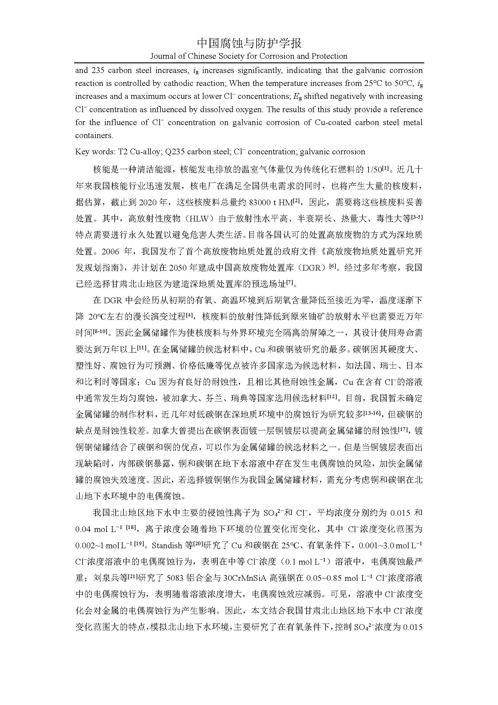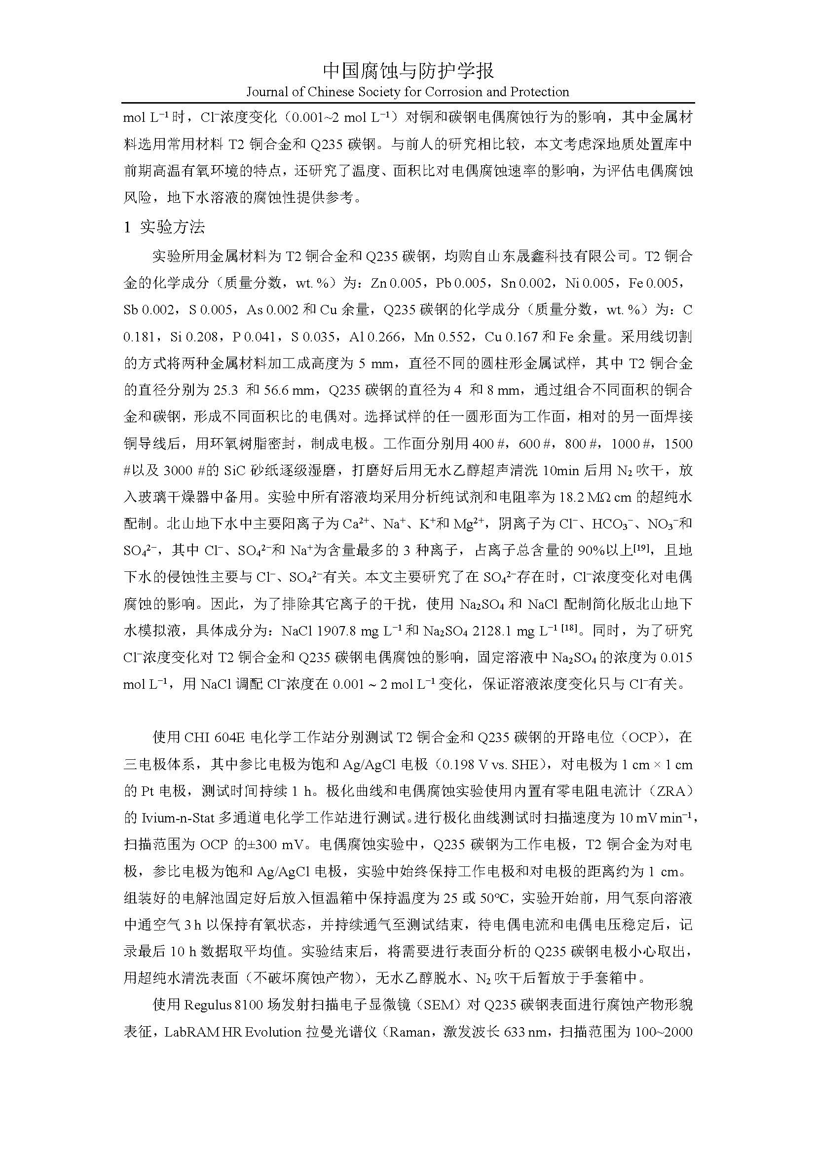 T2铜合金和Q235碳钢在模拟北山地下水环境中的电偶腐蚀行为研究