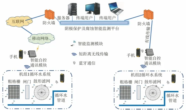 图1 核电冷源设备阴极保护及腐蚀智能监测系统示意