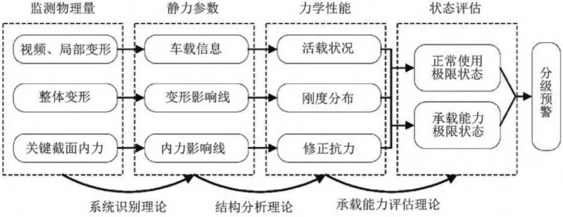 以往的监测系统主要采用人工检测,但随着大数据、物联网、深度学习等新技术的快速发展,新一代的桥梁耐久性监测方案正在逐步采用更为先进、智能的方式进行,使得桥梁耐久性的评估和维护工作进入了一个全新的阶段。为保障跨海通道工程的安全运营及维护,毛幸全等以深中通道为例,结合深中通道的海洋环境相关参数,选择腐蚀最为严重的浪溅区作为耐久性监测的重点区域,同时以大气区的监测数据作为对比,在深中通道的锚碇、箱梁、桥墩的浪溅区及大气区总共安装了36套耐久性监测传感器,并搭建了5套耐久性监测系统。通过现场的监测数据可知,虽然数据存在一定的波动,但根据各监测点的阳极梯数据和半电池电位,可以看出未监测到腐蚀发生,桥梁结构的耐久性健康状态良好。与大跨径桥梁相比,中小跨径的桥梁数量极其庞大并且设计和建造技术比较成熟,针对大跨径桥梁的健康监测系统并不适用于中小跨径桥梁,伊延华等首次提出了中小跨径桥梁健康监测系统轻量化设计理念,构建了由输入、输出及标定三者组成的监测系统轻量化设计方法,给出了中小跨径桥梁健康监测系统轻量化所需的支撑理论(图8),主要包括系统识别理论、结构分析理论和承载能力评估理论,为中小跨径桥梁的健康监测提供了一种新的思路,推进了桥梁智慧管养实用化进程。