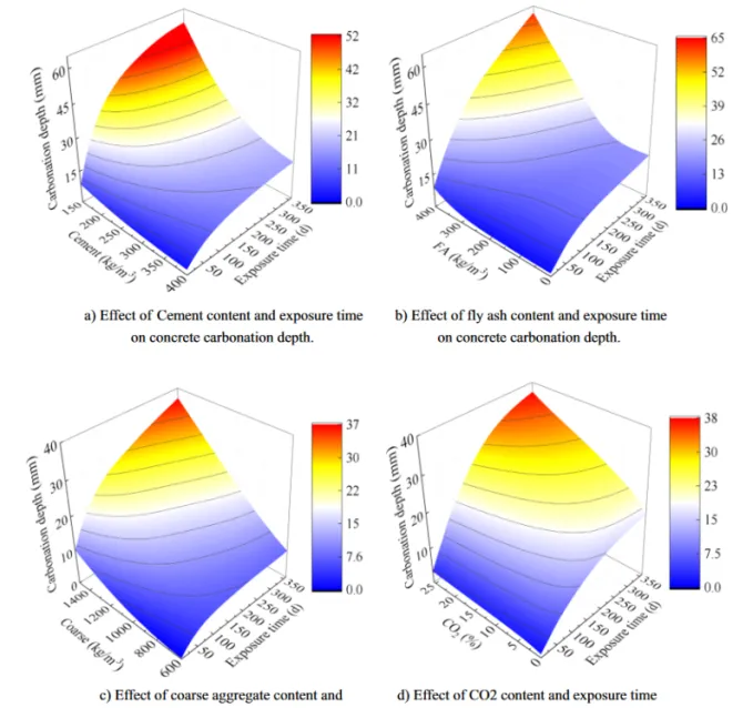Wei等建立了一种基于机器学习的反向传播人工神经网络模型用于含矿物外加剂混凝土碳化深度预测。该研究通过矿物掺合料混凝土碳化试验数据库中不同碳化深度因素的影响,对智能算法和现有的3种经验预测模型进行了分析和比较。评价结果表明,反向传播神经网络模型的预测精度高于其他模型,且比现有的三种经验模型的预测结果更加集中。