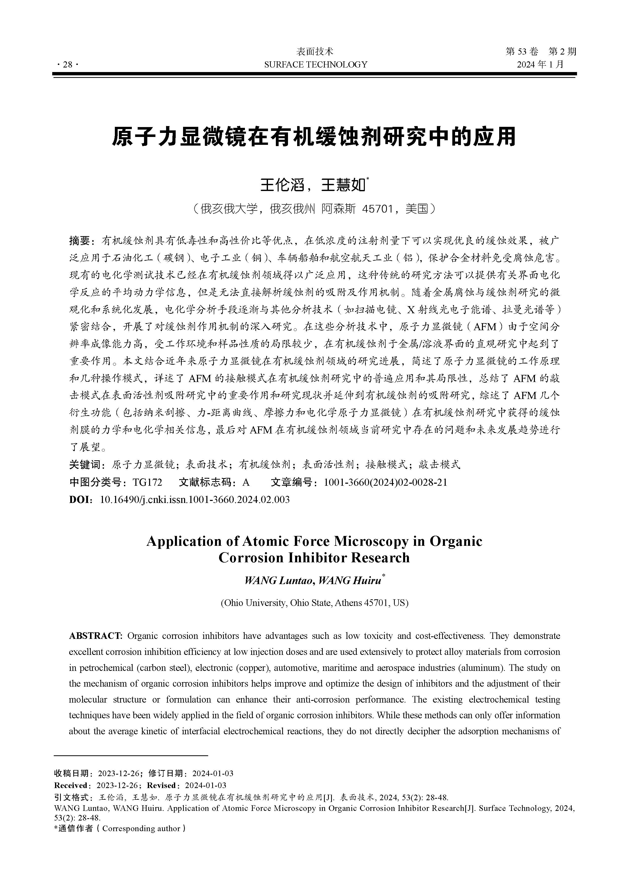 原子力显微镜在有机缓蚀剂研究中的应用