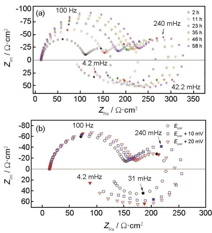 图3 纯镁在0.1 mol/L Na2SO4溶液中不同时间和不同阳极极化条件下的阻抗图[1]