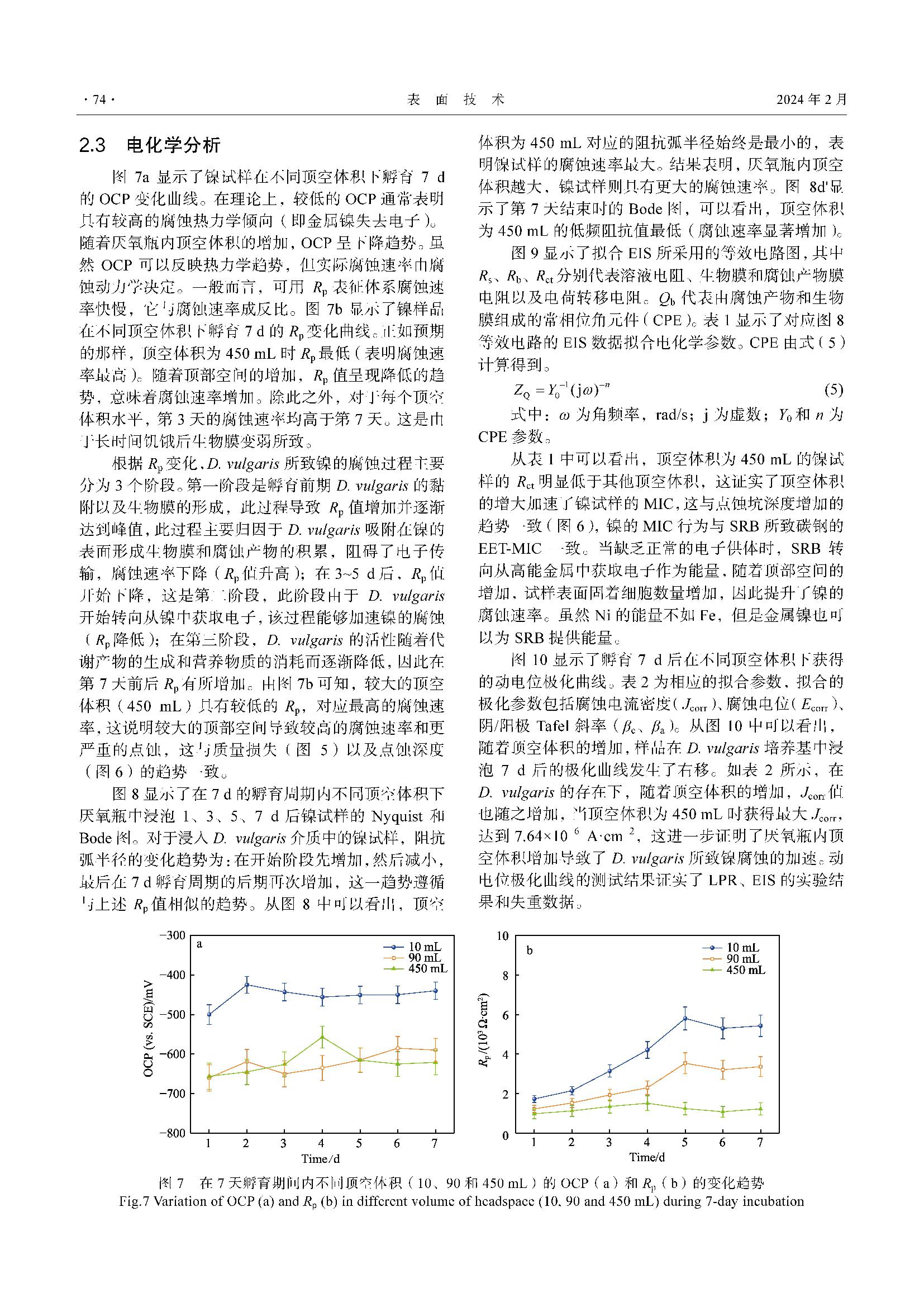 硫酸盐还原菌在顶空体积变化条件下所致镍的微生物腐蚀研究