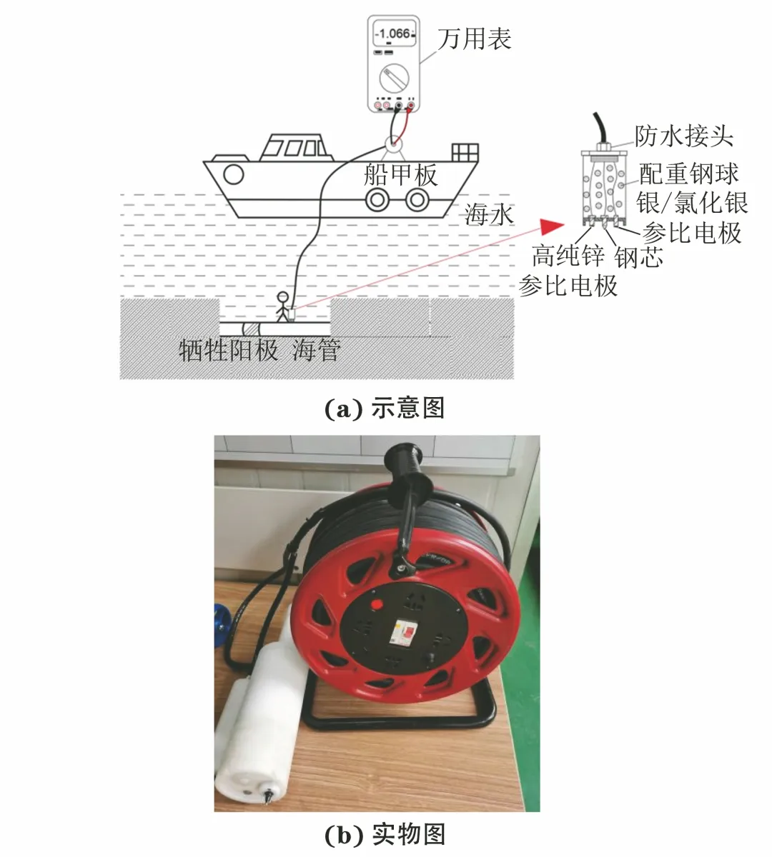 图2 海底管道电位测试示意及实物图