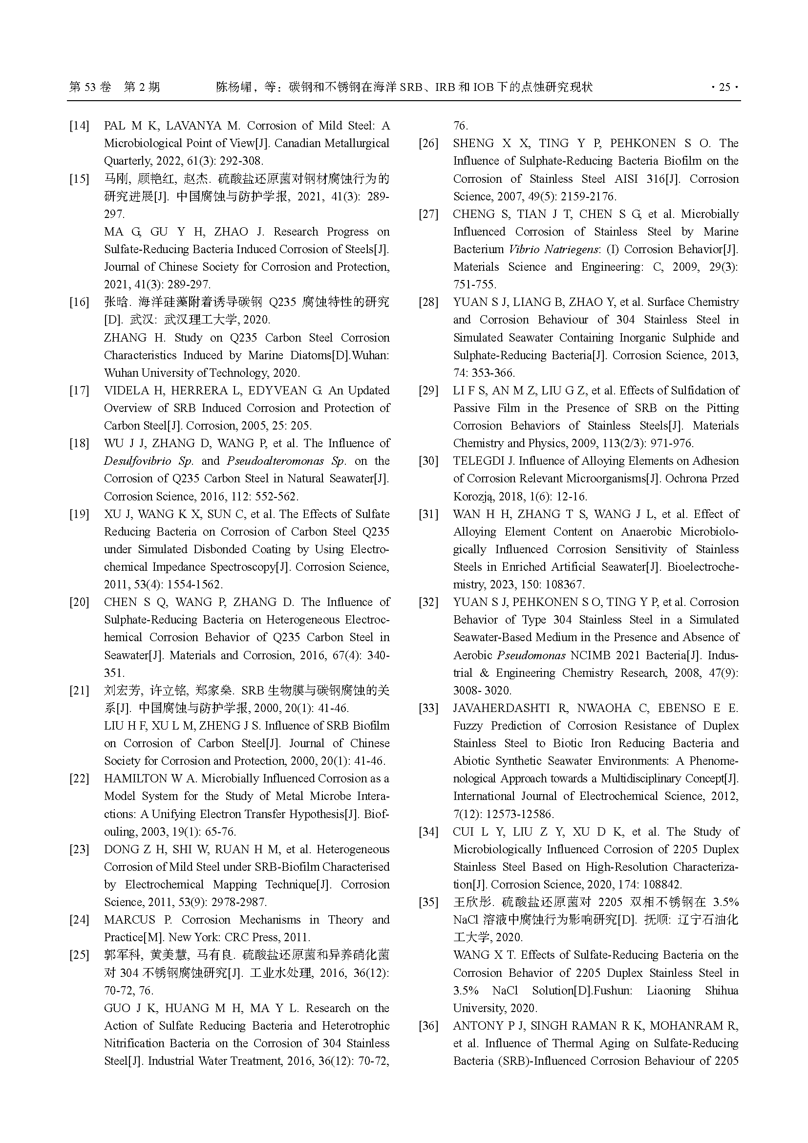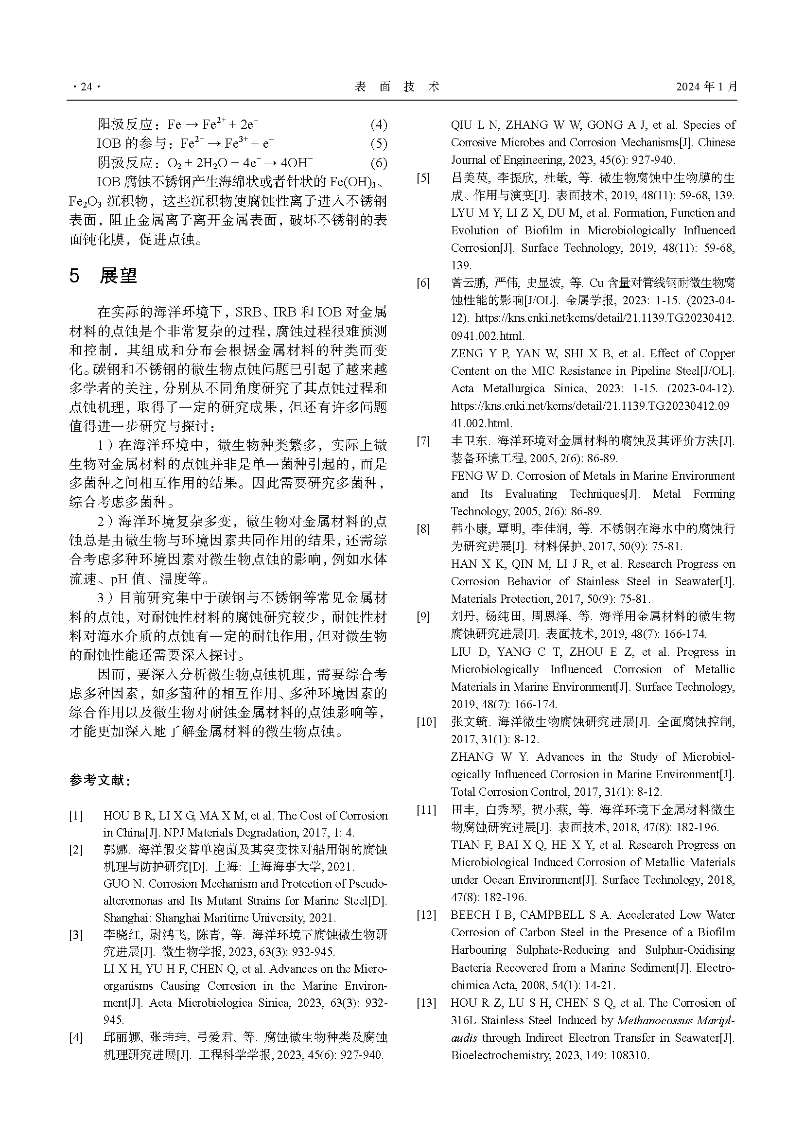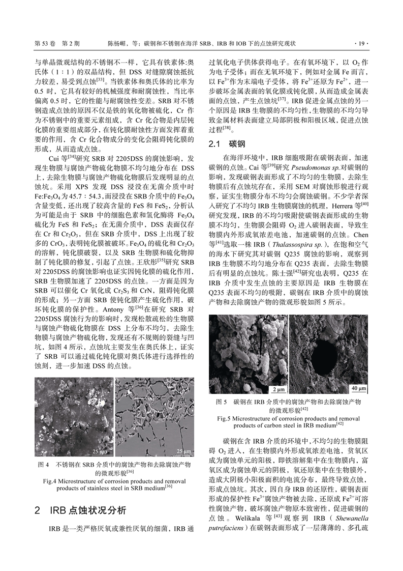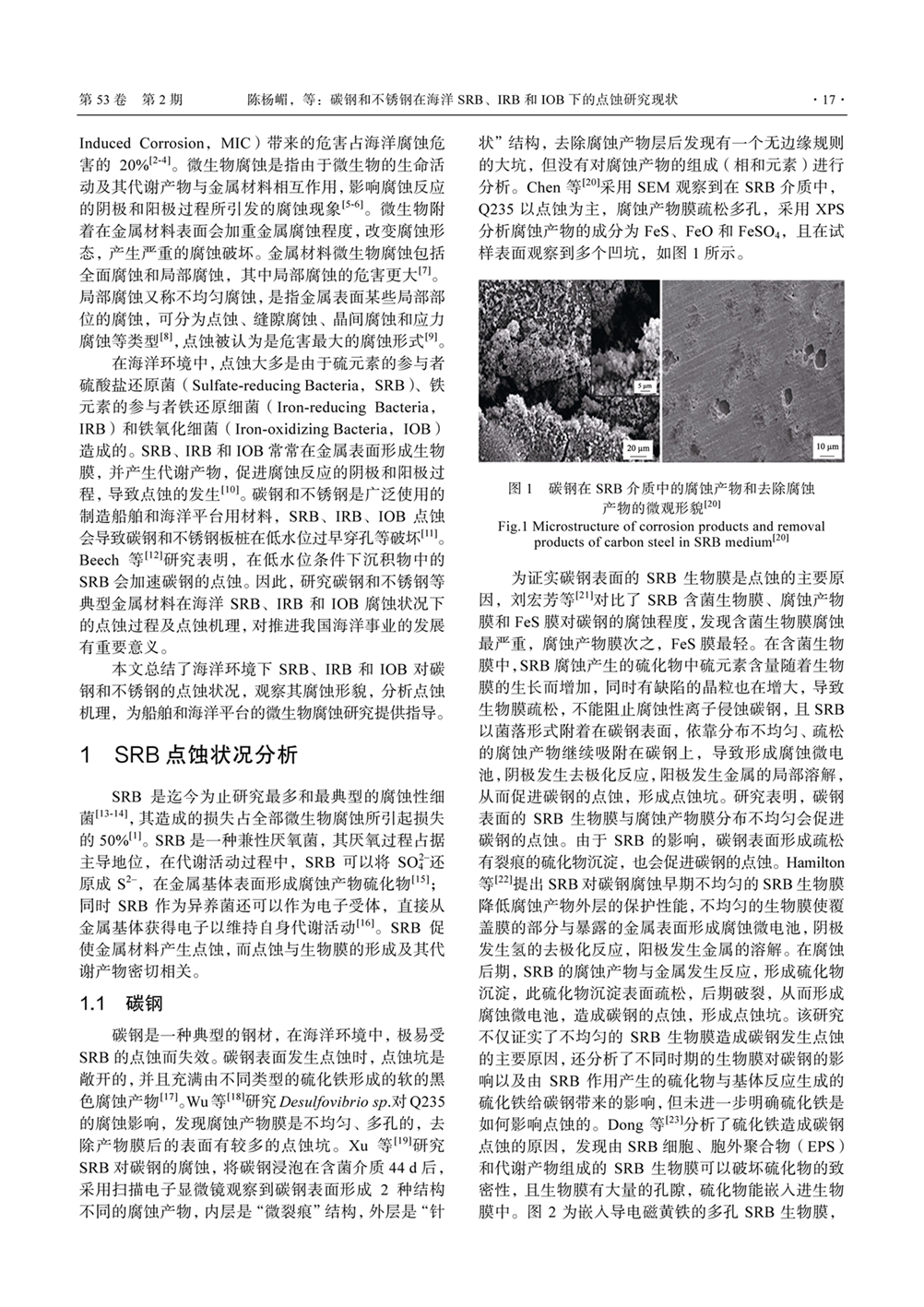 碳钢和不锈钢在海洋SRB、IRB和IOB下的点蚀研究现状