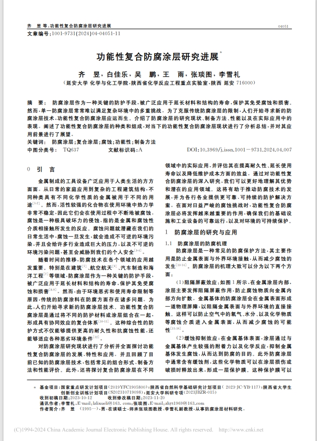 功能性复合防腐涂层研究进展