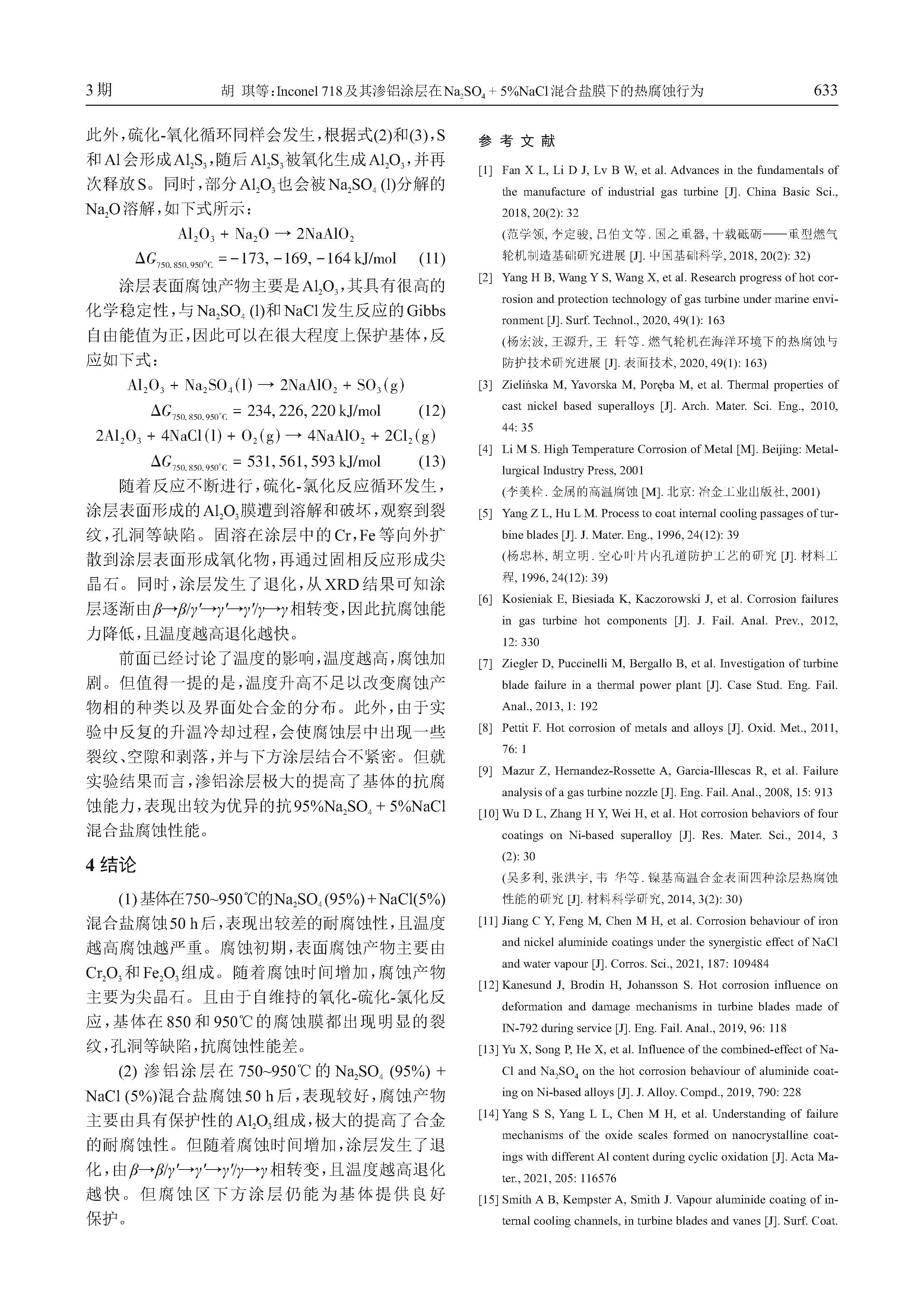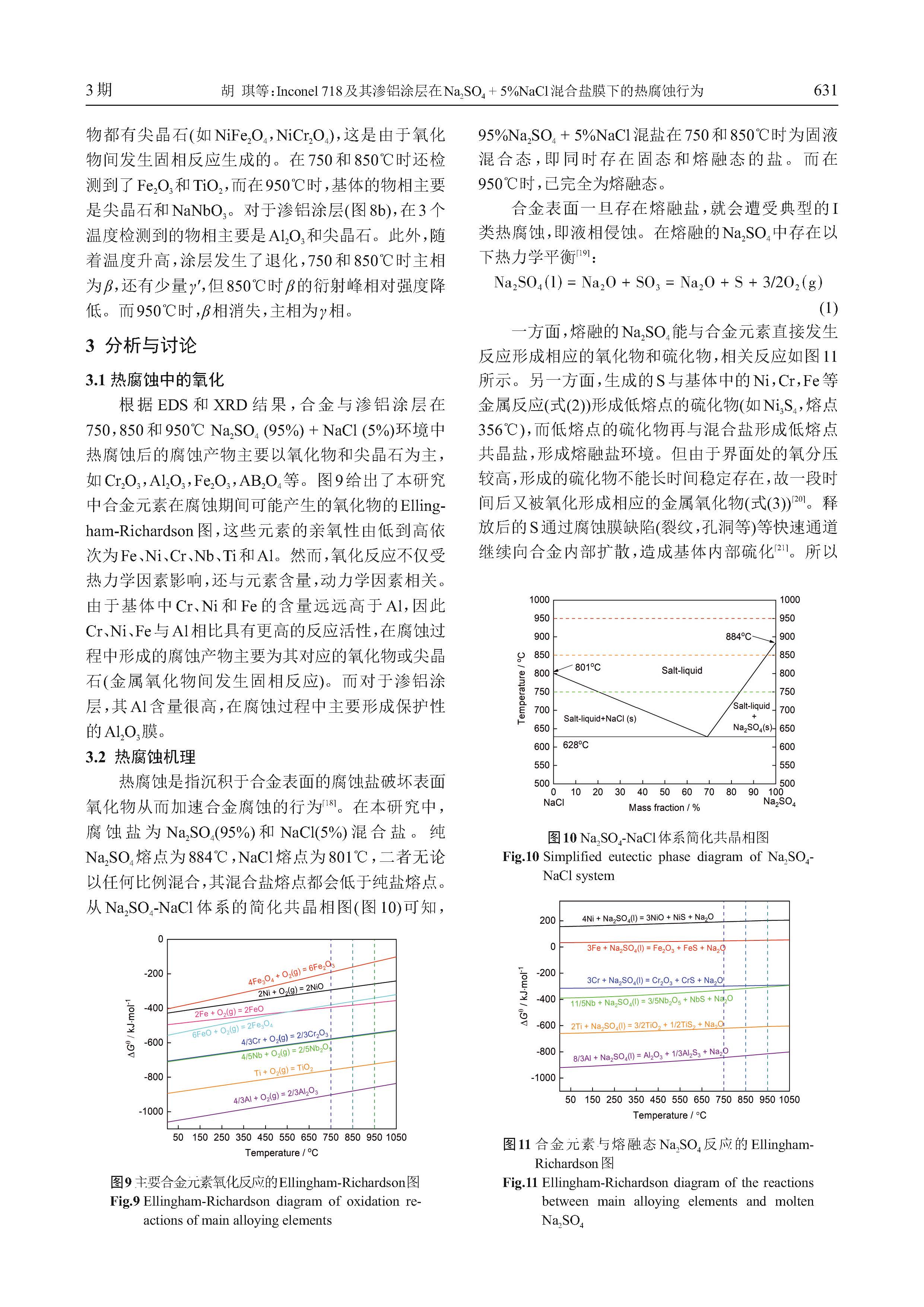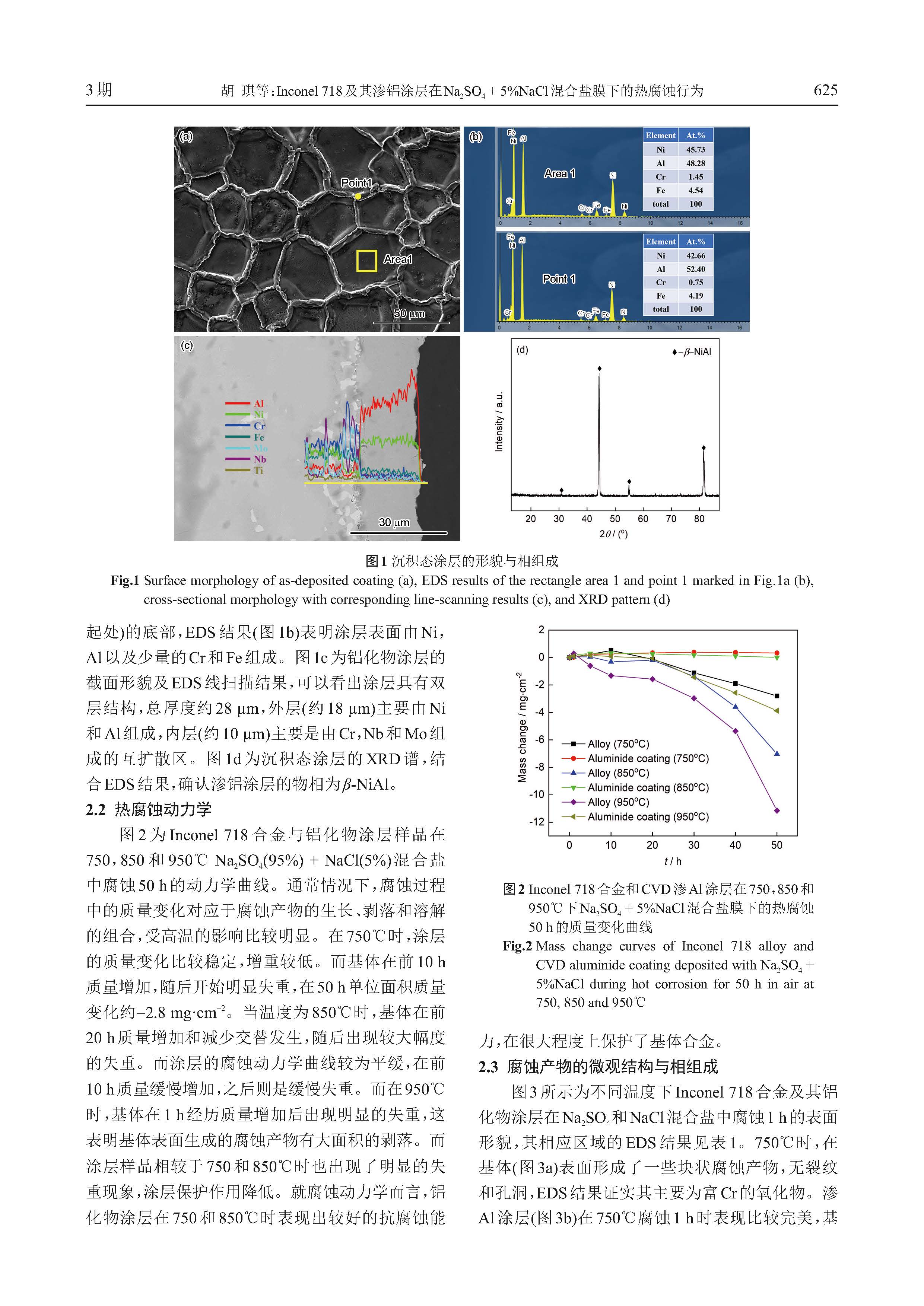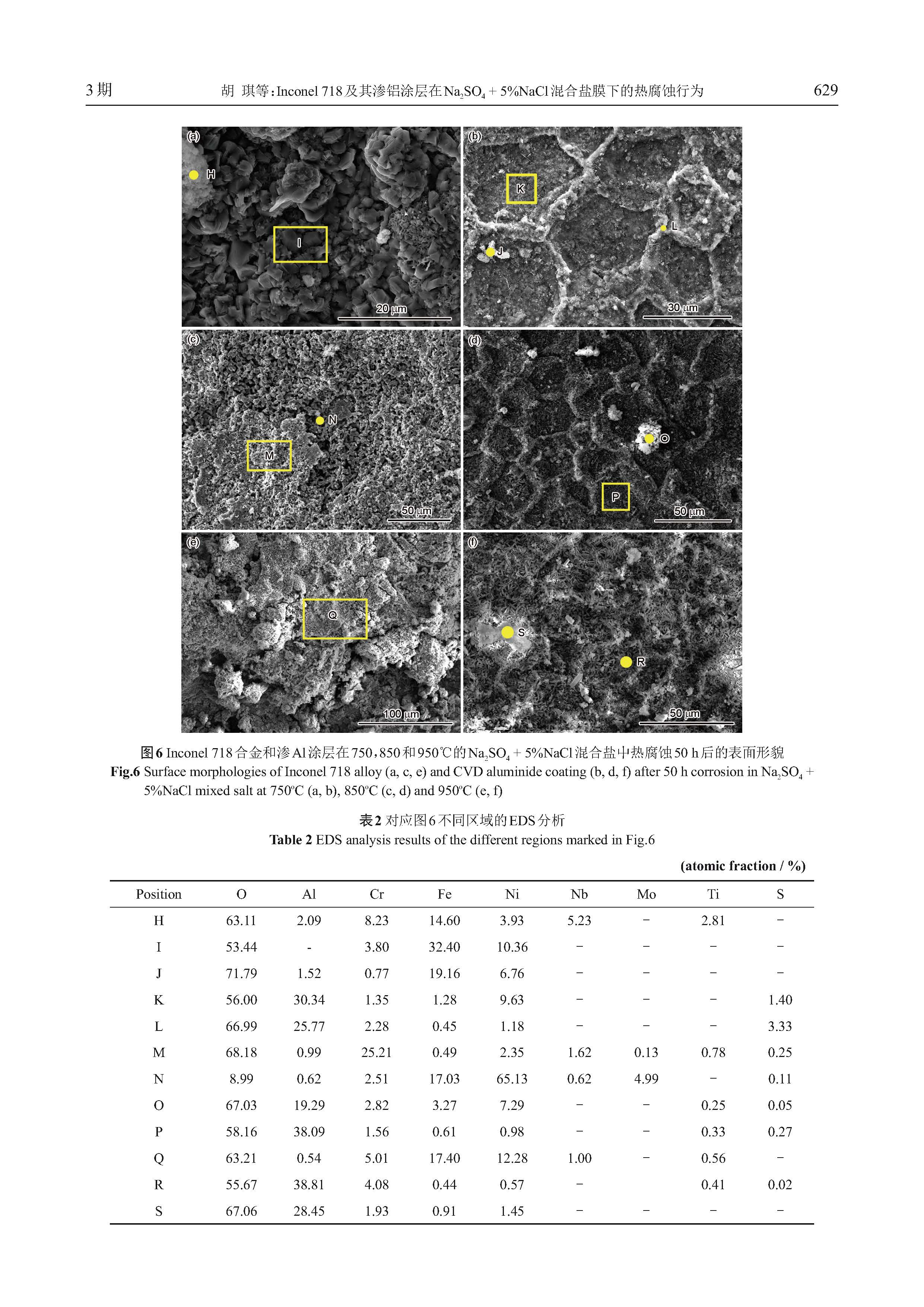 Inconel 718及其渗铝涂层在Na2SO4 + 5%NaCl混合盐膜下的热腐蚀行为