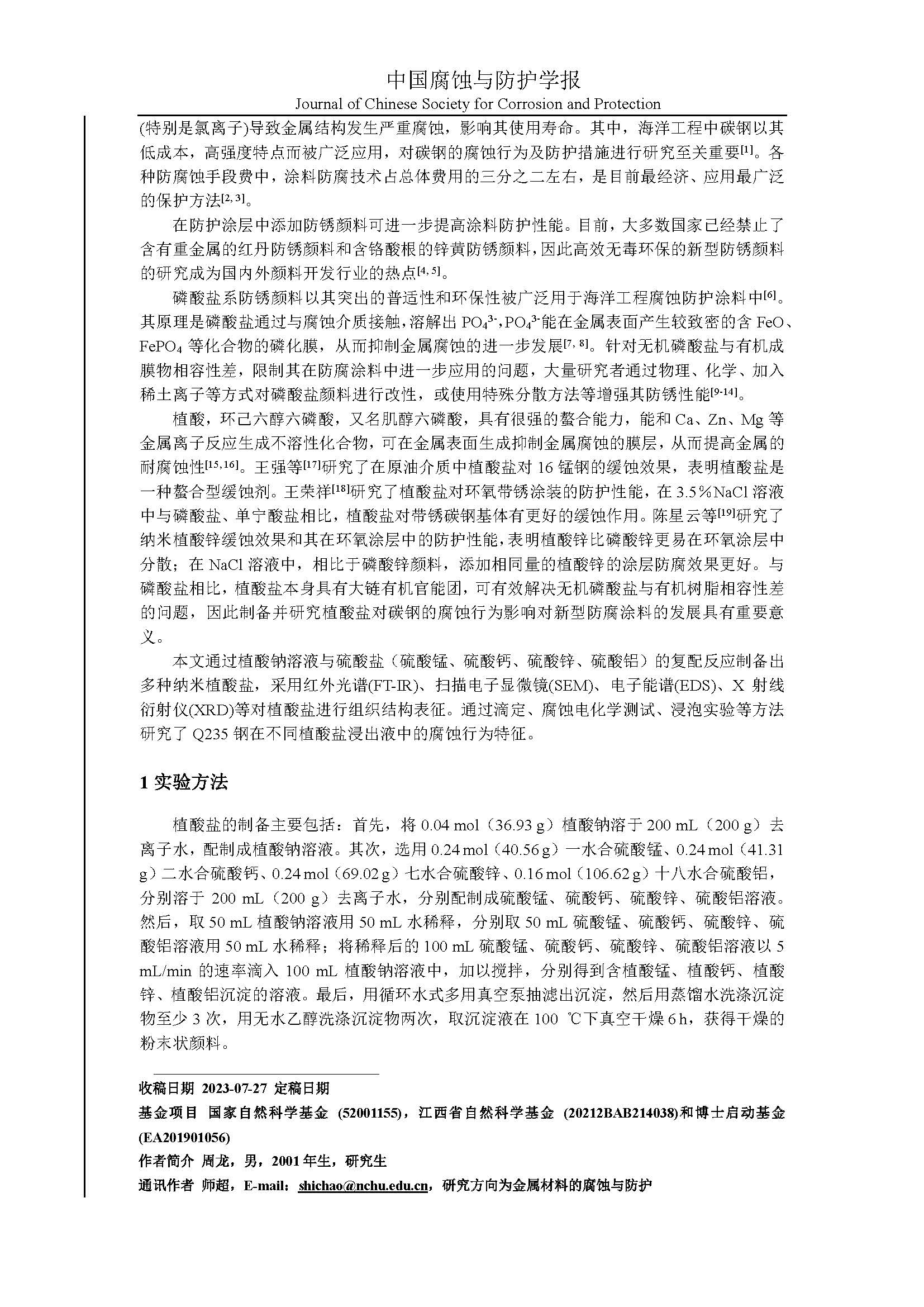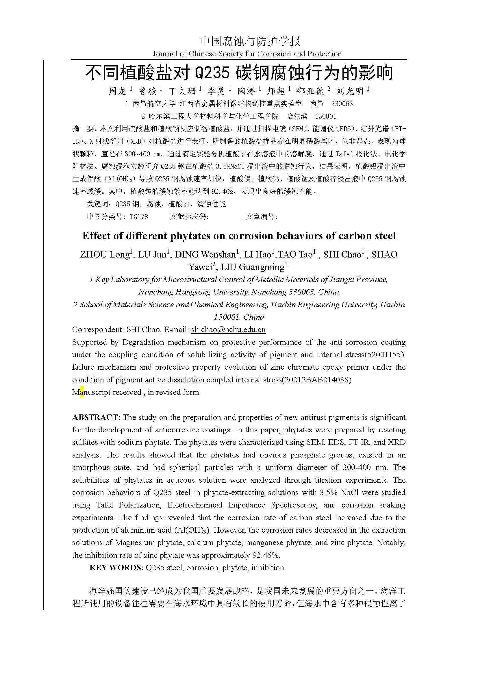 来源:中国腐蚀与防护学报
