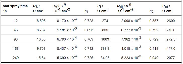 Table 4 Equivalent circuit fitting results of PT-HMS after salt spray corrosion with different corrosion time