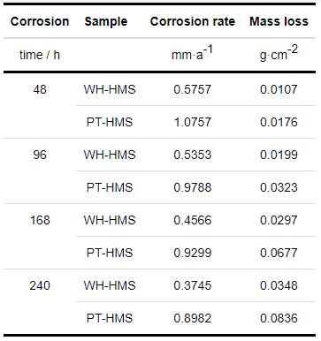 Table 6 Average corrosion rate and mass loss of two experimental steel