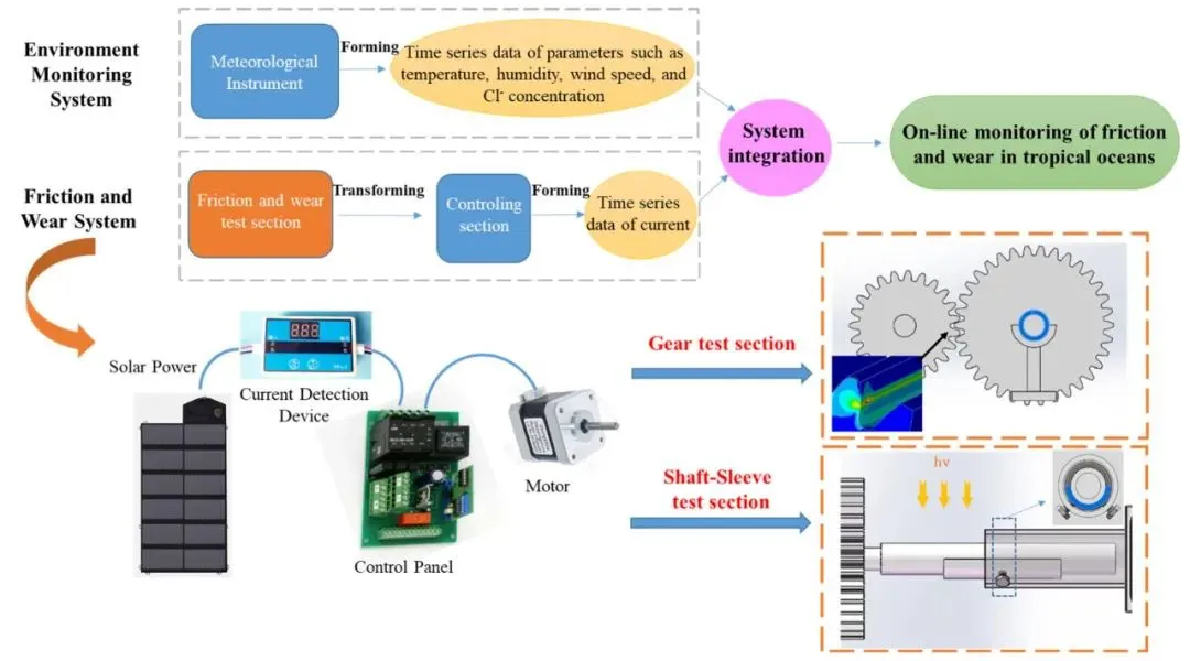 随着国家“南海海洋纵深开发”战略规划实施,国家海洋战略使命由近海扩展到远海及大洋,由我国自主研制的高技术装备已陆续列装南海,进入大批量服役阶段。海洋钻井平台、海上风电/核电、舰船和港口机械等国防与海工装备的机械运动系统部件直接暴露服役于海洋大气氛围中,受海洋气氛的化学/电化学引起的腐蚀以及力学因素引起的摩擦磨损交互作用,急剧加速了金属材料的损伤失效。 热带海洋气氛摩擦腐蚀挑战 ▷ 我国四大海域环境条件 我国大陆边缘的渤海(内海)、黄海、东海和南海互相连成一片,其海洋大气具有动态性和地域性等特点,受地球经纬度和海岸地理条件影响,温度、湿度、辐照度、氯离子浓度和盐度等主要环境因子及其耦合作用对材料服役行为的影响差异很大。 渤海(盘锦-唐山-天津-东营)为近封闭的内海,常年平均气温10.7 ℃,夏季水温24~25 ℃,冬季水温0 ℃左右,普遍有结冰现象,河口及滩涂区多堆积冰(高度可达2~3米),冰期1~3个月不等。3月初融冰时还常有大量流冰发生,流速为50 cm/s左右。渤海海水盐度仅为3‰,海面风浪较小。 整体来说,渤海区域舰船及武器装备面临的腐蚀工况较弱(低温、低湿、低盐、低紫外和弱台风),但在严酷的冬季,海洋工程装备外暴露部件及其防护涂层是否能经受高低温交变及极限低温冰冻(-20 ℃),钻井平台结构物及船用钢表面能否耐冰层冲击/刮擦,是渤海区域海洋环境适应性的关键难点。 黄海海域(青岛-日照-连云港-盐城)温度季节变化较为明显,1月最低(-2~6 ℃),8月最高(25~27 ℃)。其水温年变化小于渤海(15~24 ℃),海水盐度也比较低(32‰),且流入黄海的各河携带泥沙过多。黄海易受台风侵袭,水中含氧量为四大海域最高(达5.9 ml/L)。通过分析以上数据,黄海腐蚀工况较渤海苛刻,主要是温度、盐度及水含氧量有所提高,风力增强且伴随泥沙冲刷。 此海域服役的海洋装备需选用具有一定防腐蚀效果的表面防护手段,比如海洋钻井平台生活舱室常出现结露/凝水情况而引起金属腐蚀与电气绝缘降低,需采用有机涂层等具有绝缘耐蚀的防护手段;钻井平台的桩腿、海管和动力定位系统还应具备一定抗颗粒物冲刷性能,需考虑并选用“底+中+面漆”3层体系防护技术。 东海(舟山-宁波-福州-厦门)是中国、日本和韩国等国的海洋战略要地,属于亚热带和温带气候,有较高水温(年平均水温20~24 ℃)和较大的盐度(34‰左右),水中氧含量也较高(5.2~5.6 ml/L),且海中浮游生物的生长茂盛。 相比渤海与黄海海域,东海海域腐蚀条件明显增强(中温、中湿、中盐、较强紫外和较强台风),海洋装备部件需根据自身不同服役工况,针对性选择适宜的防腐蚀方案,比如海洋钻井平台结构件(静止暴露)受盐雾腐蚀、紫外照射和台风/海浪水雾冲刷等影响,其使用寿命大大降低;而升降滑轨、传动齿轮和桩腿/导管接头中的连接螺栓及系泊链(运动暴露)则同时面临磨损与腐蚀的双重考验,须重点研究其磨损腐蚀失效行为机理,并用耐磨防腐涂层材料进行表面防护。 南海海域(广东-湛江-三亚-西/南沙群岛)接近赤道,接受太阳辐射的热量较多,南海的年日照辐射总量接近7000 MJ/m2,约是其它海域的1.5~1.7倍;年平均温度高达27.5 ℃,约是其它海域的1.7~2.7倍;一年中气温大于30 ℃的天数高达160天,约是其它海域的3.0~25.5倍;年平均降雨量约是其它海域的1.3~2.4倍。南海是我国最深、最大的半封闭海,相比渤海、黄海及东海具有更为复杂多变的热带海洋性气候特点,湿度常年高达90% RH,海水盐度高达35‰,其气氛环境具有更高的饱和蒸气压及盐雾浓度(>300 mg/m2d)。在亚热带气候的万宁试验点暴露试验结果表明,传统Q235和Q345碳钢由于高氯离子含量致使锈层结构疏松;海洋平台高湿高盐的盐雾气氛对航空钢表面电镀Cd层穿透性更强,腐蚀更加严重。 南海诸岛在夏秋两季还常受强台风影响,台风狂虐,裹挟暴雨,掀起巨浪,给海工装备的承力结构物、连接紧固件/焊缝和运动滑轨/齿轮传动部件的使用可靠性带来极大挑战。针对南海高温、高湿、高盐及高紫外辐照的热带海洋区域,伴随海浪飞溅、泥沙冲刷及强台风冲击等极端苛刻工况,南海海洋装备需经历比其他海域更为复杂和严酷的贮存、运输和服役环境,南海工程性防护材料的性能数据及规律仍极度匮乏,其热带海洋环境适应性考核体系亟待建立。 ▷ 海洋装备面临严峻摩擦腐蚀挑战 然而,在南海海域服役的海洋装备外暴露关键摩擦副零部件受海洋盐雾气氛的化学/电化学引起的腐蚀以及力学因素引起的摩擦磨损交互作用,将急剧加速其损伤失效。目前的海洋工程用材料(如耐候钢、铜合金、铝合金和钛合金等)还不能完全满足海洋装备外暴露传动系统/部件在热带海洋气氛下高可靠性和长寿命运行的要求。 传统3层防护的防腐涂层技术(涂层厚度>400 μm)与表面处理技术(氧化、磷化、镀铬、镀锌、镀镍、镀镉及盐浴氮化等)可一定程度上提升工程金属材料的耐蚀性及服役寿命,但仍难以满足海洋高技术装备高冲击和高承载运动/传动系统的实际工程需求。 目前,涉及摩擦磨损与腐蚀交互作用的海洋装备部件失效难题亟待解决,比如,内陆用高技术装备于南海海域首次试用,仅静置72小时后,其焊缝和螺栓紧固件等部位(传统防腐漆防护)即出现锈蚀现象,运动传动系统的滑轨、弹簧及键/销等关键运动部件于200小时后出现润滑油降解及