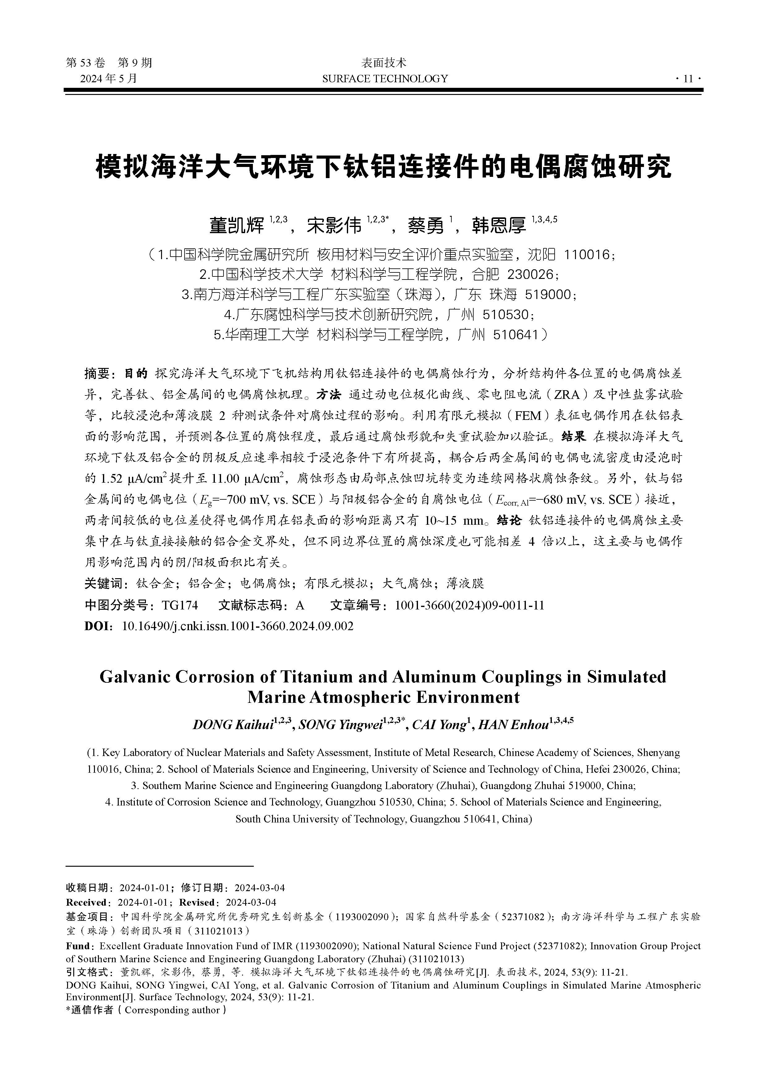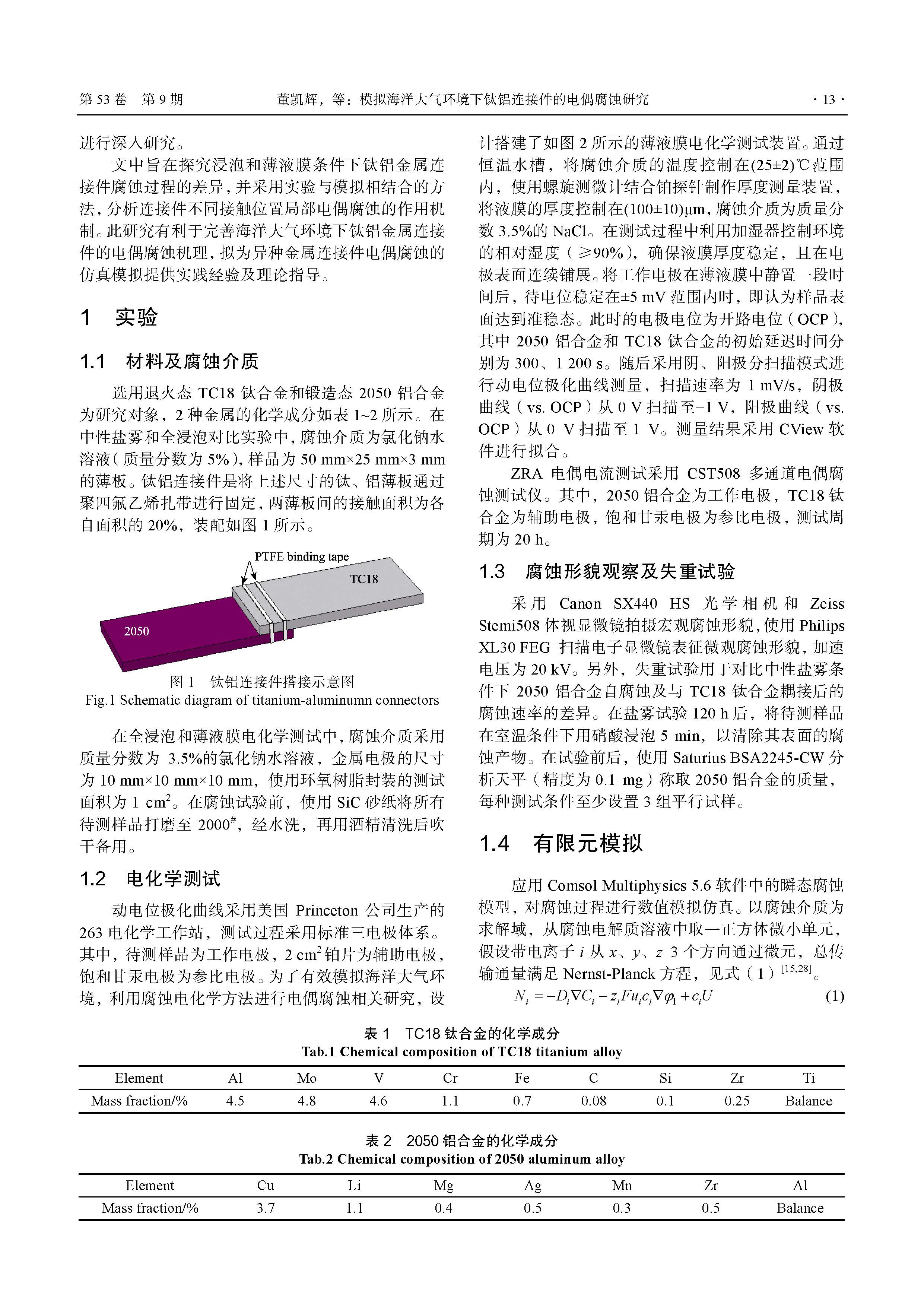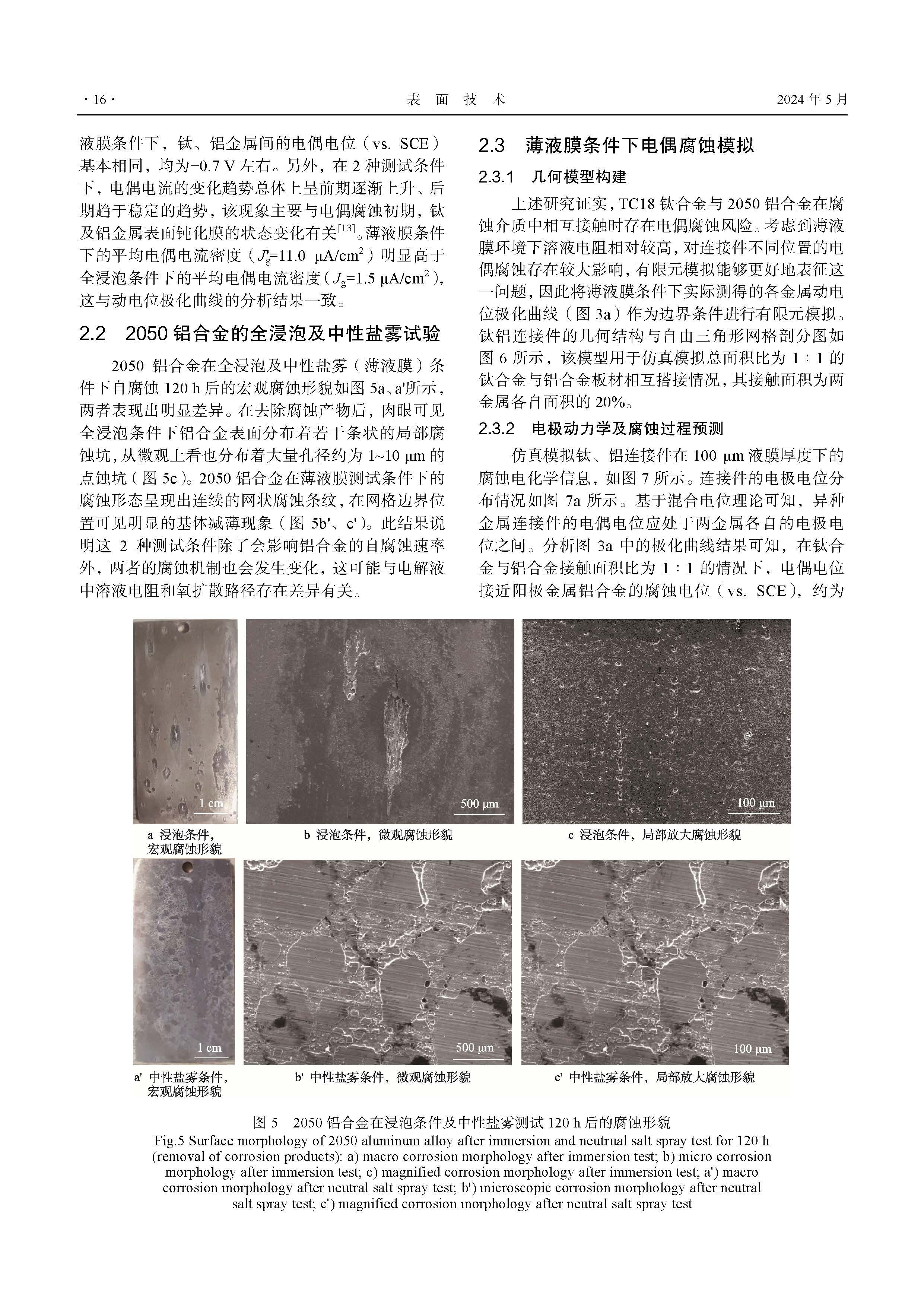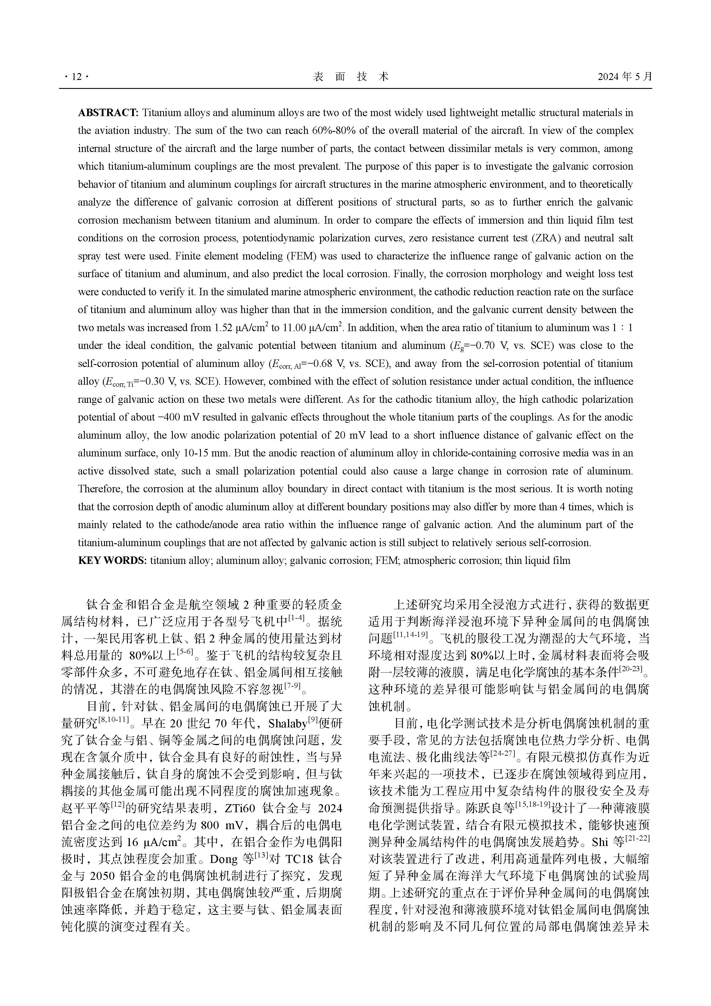 模拟海洋大气环境下钛铝连接件的电偶腐蚀研究
