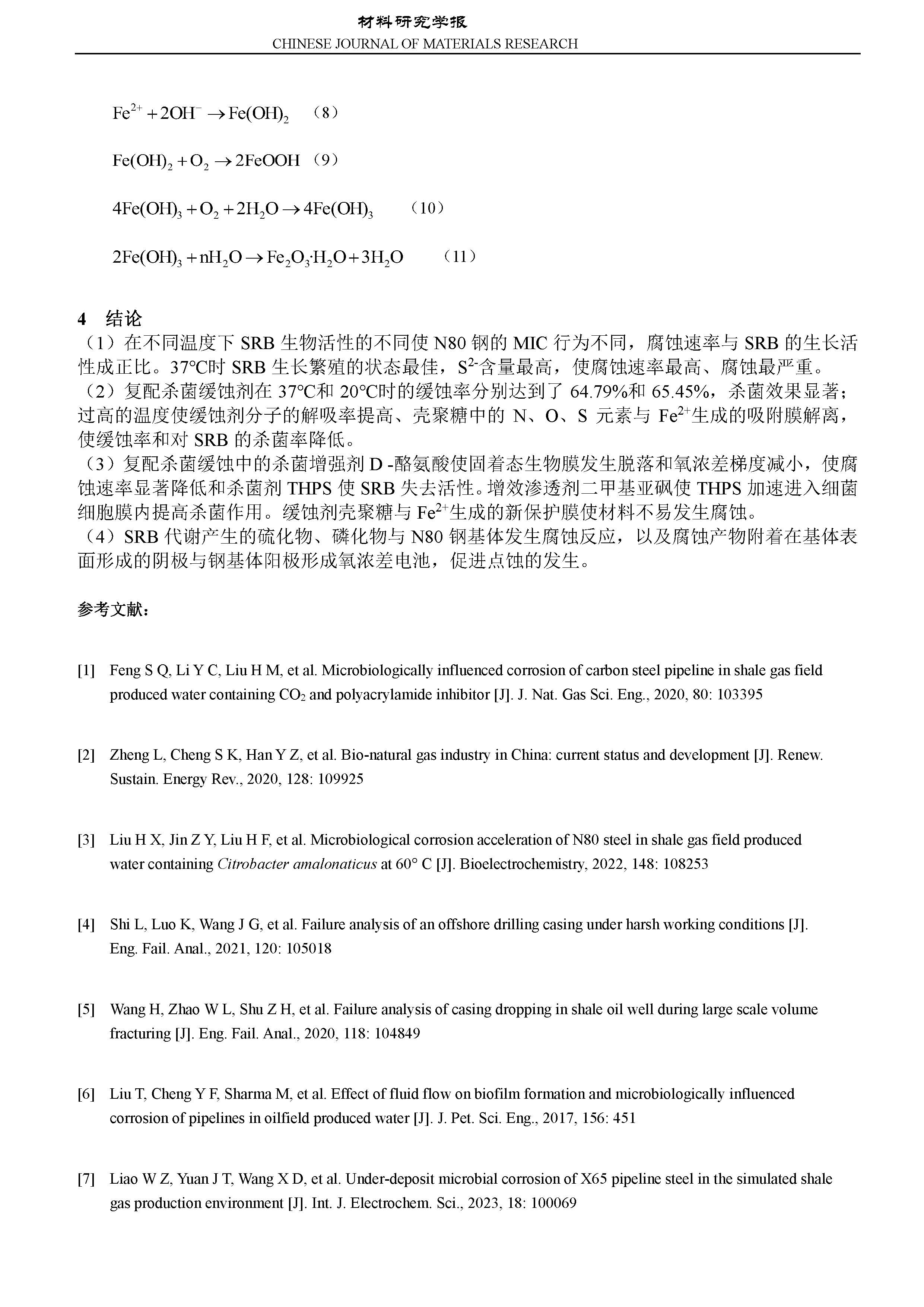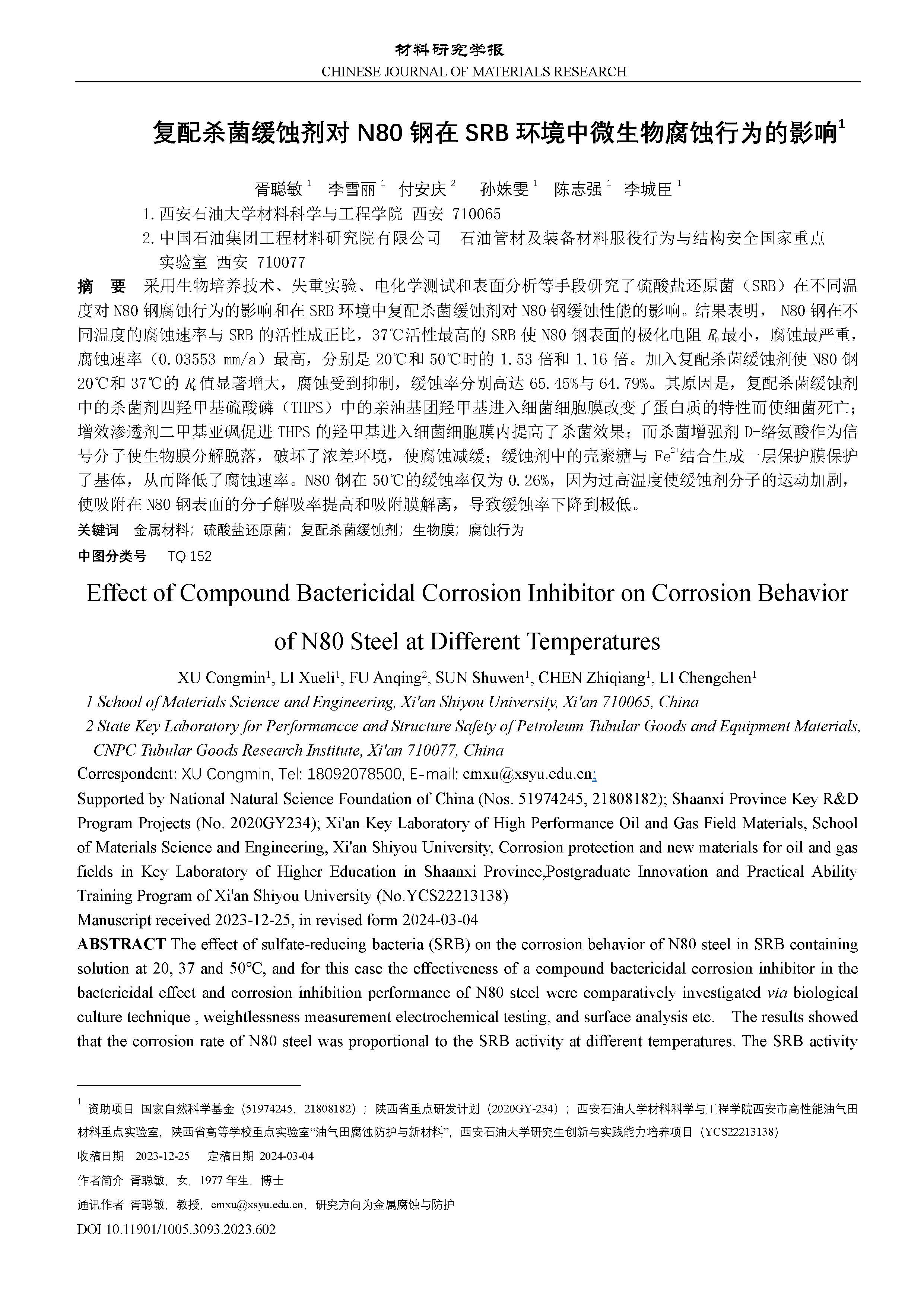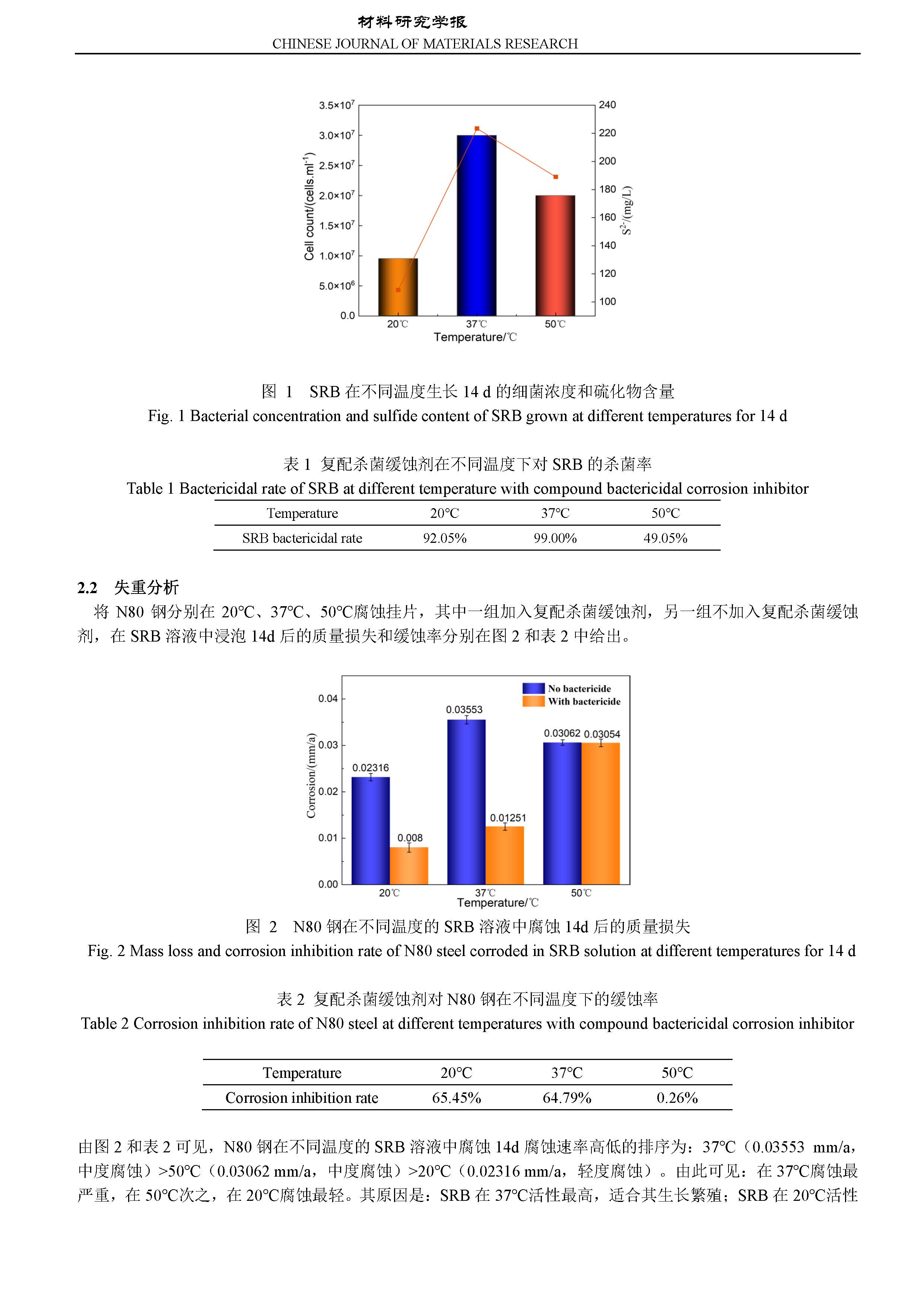 复配杀菌缓蚀剂对 N80 钢在 SRB 环境中微生物腐蚀行为的影响
