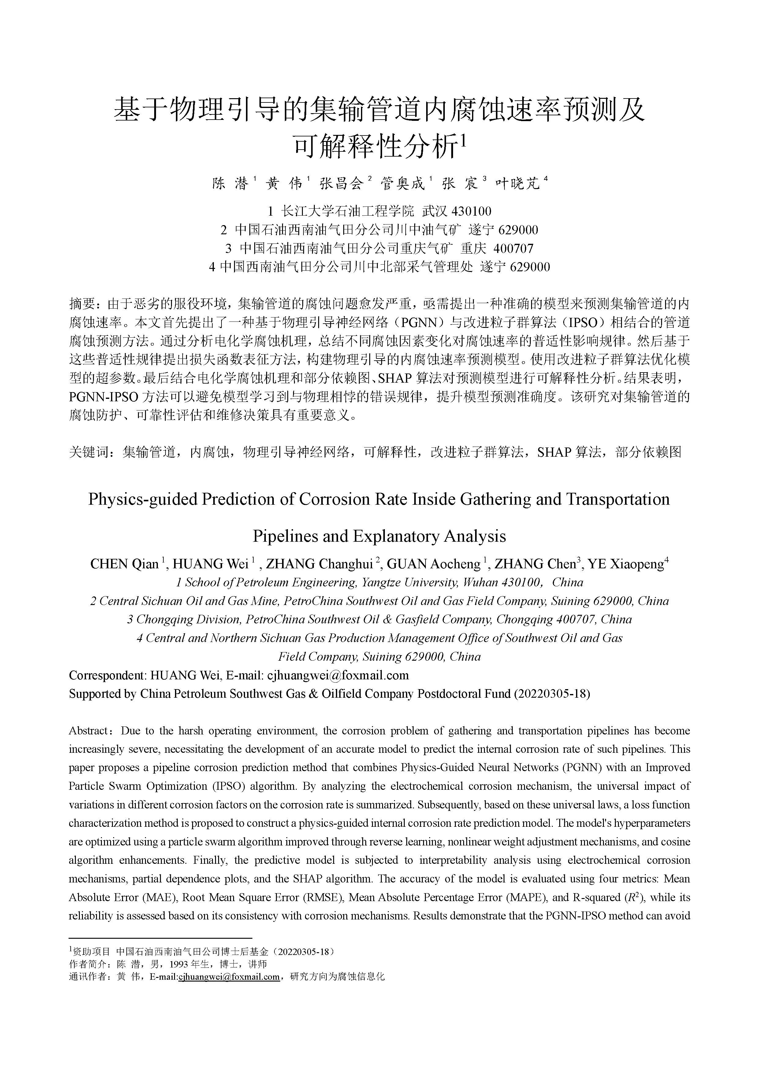 基于物理引导的集输管道内腐蚀速率预测及可解释性分析