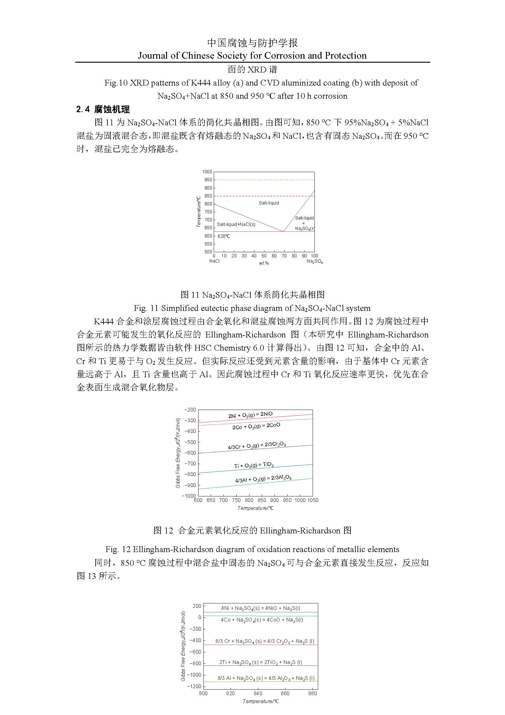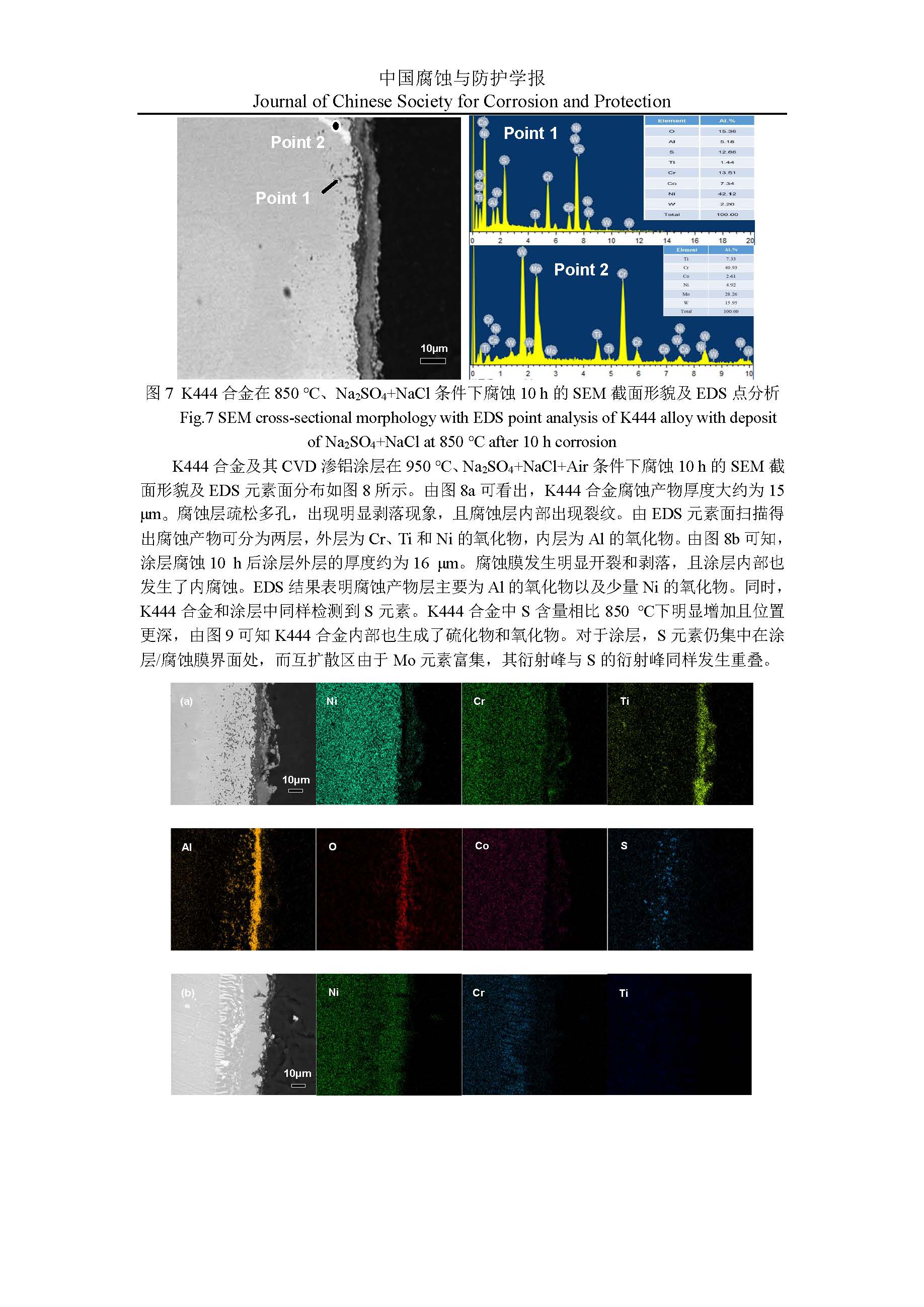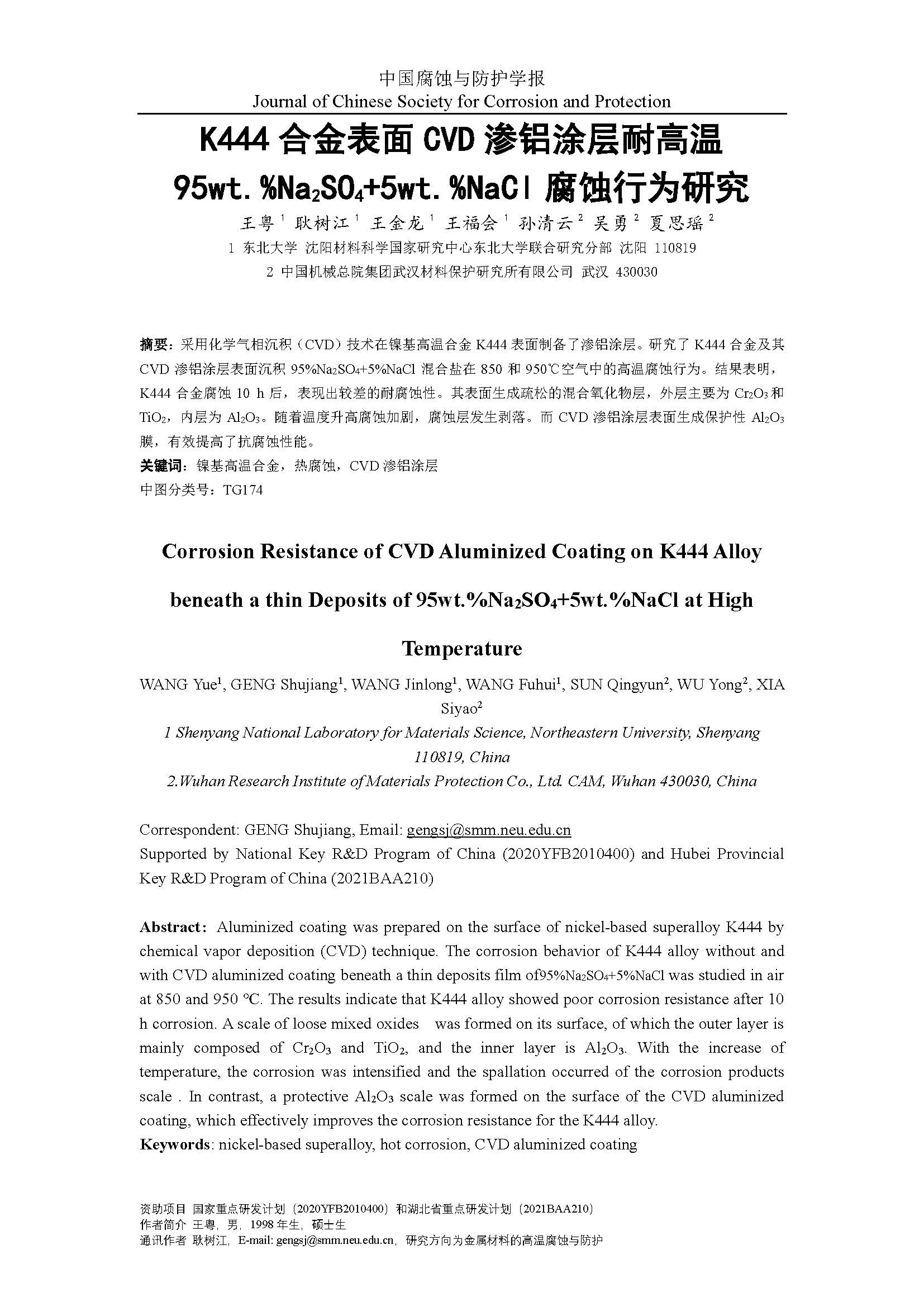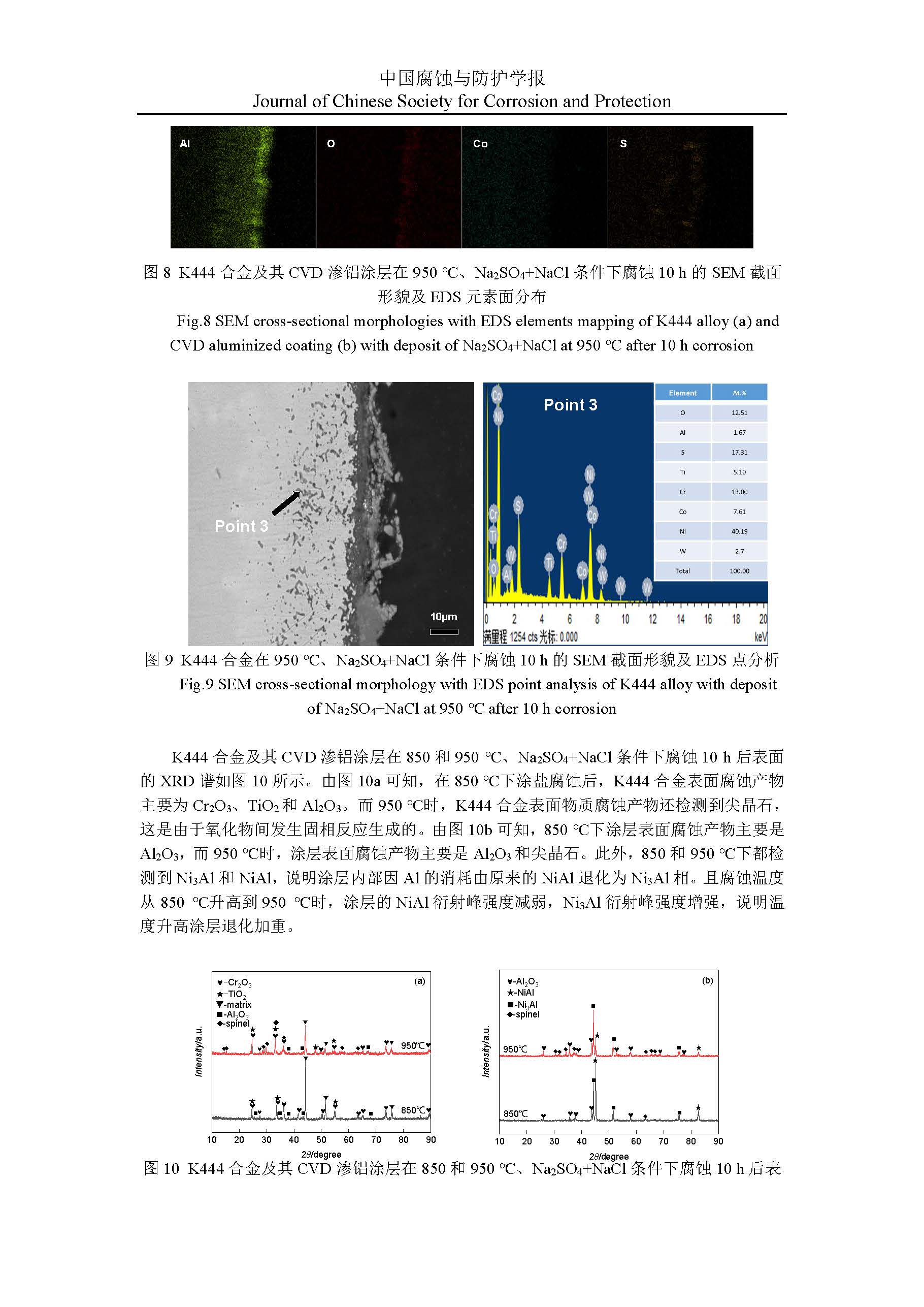 K444合金表面CVD渗铝涂层高温耐95 wt.%Na2SO4+5 wt.%NaCl腐蚀行为研究