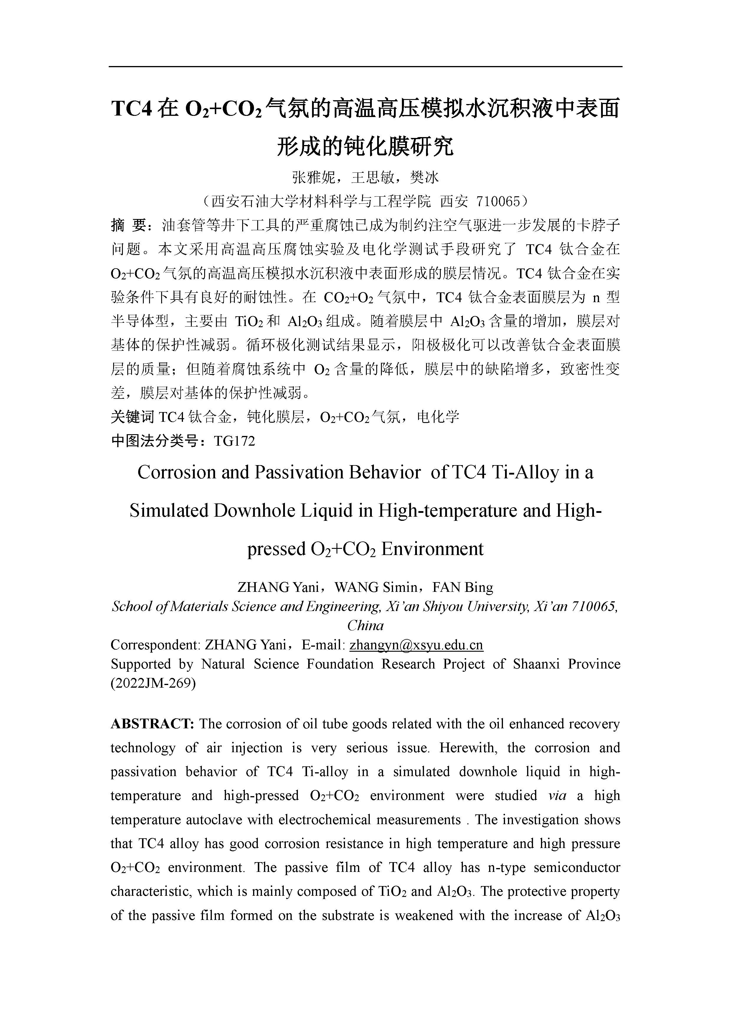 TC4在O2+CO2气氛中的钝化膜层研究