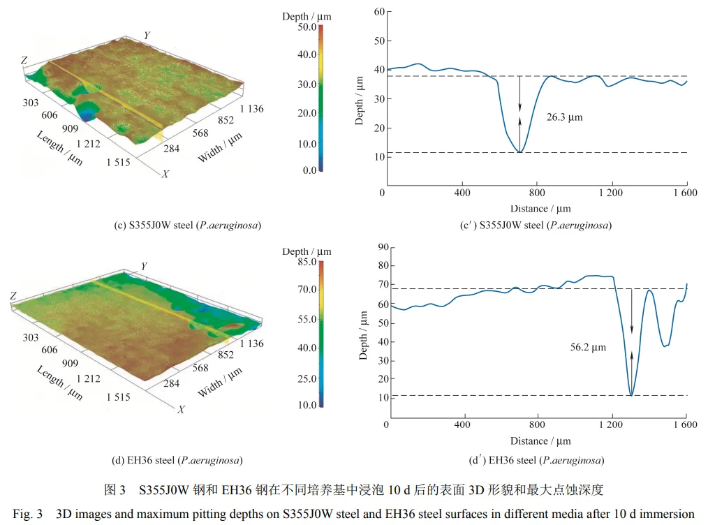 02 相较于 EH36 钢,S355J0W 钢含有 Cr、Ni、 Nb 元素和更多的 Cu 元素。合金元素的共同作用促使 S355J0W 钢表面形成了更具有保护性的产物膜。