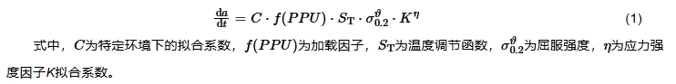 当前研究认为,辐照剂量、屈服强度、应力强度因子K、温度、加载类型是压水堆(低ECP环境)内IASCC裂纹扩展速率(CGR)的关键影响因素,其关系模型如 式1所示[15]: