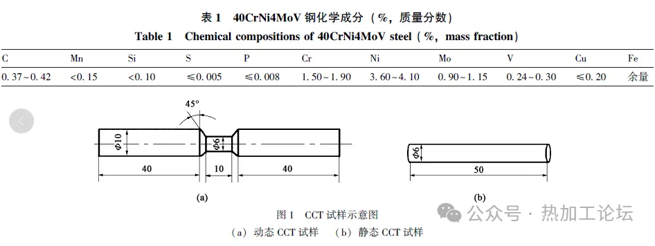 近年来随着现代工业的发展,以及深海资源勘探的需求和新型武器装备的升级,对材料的性能要求越来越高,Cr-Ni-Mo-V系钢凭借其高强度高韧性和耐腐蚀等优异性能而得到广泛关注,本文研究对象40CrNi4MoV钢便是Cr-Ni-Mo-V系钢中的一种。为了提升40CrNi4MoV钢的耐磨性、耐腐蚀性和疲劳性能,往往需要通过优化成形与热处理工艺调整其组织结构,实现性能的提升。 奥氏体连续冷却转变( Continuous CoolingTransformation,CCT) 行为的研究对调控Cr-Ni-Mo-V系钢起关键作用,其中奥氏体晶粒度、变形条件及合金元素含量是影响其CCT的主要因素。张灿林研究发现,40CrNiMo钢在860℃奥氏体化保温10min后以不同冷却速度进行冷却,冷却至室温后得到贝氏体和马氏体的混合组织,随着冷却速度的降低,贝氏体含量增加。姚春霞等发现40CrNiMo钢在冷却速度0.1~1℃·s-1之间冷却时转变为贝氏体组织,其中在冷却速度0.1~0.2℃·s-1之间冷却时转变获得粒状贝体组织,在冷却速度2~10℃·s-1间冷却时转变为马氏体。邱木生等通过研究冷却速度发现冷却速度从10℃·h-1上升至30℃·h-1,Cr-Ni-Mo-V系钢的组织硬度随着冷却速度的升高呈V形变化,碳化物球化率随着冷却速度的变化正好与前者相反。张芳等对40Cr钢等温转变曲线与非等温冷却过程进行了数值分析,通过建立连续冷却过程多相转变模型,采用传统叠加模型和Cahn微分模型分别对40Cr钢连续冷却过程中组织分布进行了模拟计算,发现考虑动力学参数n随温度变化的相变动力学微分方程计算结果与实际结果更为接近。蒋波等研究了42CrMo中碳合金钢的变形状态和Mn元素对CCT的影响。结果表明,再结晶区变形有助于贝氏体和马氏体相变, 显著细化组织;Mn元素在静态CCT中促进低冷速下珠光体的形成,并显著扩大贝氏体和马氏体相变区间。Zhang M等研究了用于大型结构件的新型Cr-Ni-Mo-V钢,当加热速率小于0.2 ℃·s-1时,原始组织中的碳化物在连续加热转变过程中可以完全溶解,发现该钢的贝氏体形核位点主要位于原奥氏体晶界,贝氏体晶粒长大主要遵循二维模式。 通过前人的研究发现,Cr-Ni-Mo-V 系钢的奥氏体连续冷却转变过程与化学成分、初始组织及加工参数密切相关,针对40CrNi4MoV钢的相关研究仍显不足。为有效控制其组织性能,深入探究其奥氏体连续冷却转变规律及影响因素具有重要意义。本研究以40CrNi4MoV钢为实验材料,对比分析了变形与未变形状态下的CCT特性,考察了变形对相变过程的作用机制,为后续冷却及热处理工艺的优化提供了理论依据。 1 实验材料与方法 实验材料采用国内某钢厂生产的40CrNi4MoV棒材,其化学成分如表1所示。按照CCT制样要求,动态CCT和静态CCT的试样尺寸和形状如图1所示。采用Gleeble-1500热模拟试验机,通过热膨胀法和组织分析,测定40CrNi4MoV钢的连续冷却转变曲线,研究CCT过程中40CrNi4MoV钢的相变规律和组织演变特征。 动态CCT曲线的实验方案为:以15 ℃·s-1的速度将试样加热至900℃后保温15min以确保试样完全奥氏体化。完成奥氏体化后设定变形量为50%,应变速率为1s-1进行加工。随后分别以不同的冷却速度将试样冷却至室温,具体流程与参数如图2a所示。为对比未变形条件下试样钢的CCT行为,设计静态CCT曲线的实验方案为:以15·s-1的速度将试样加热至900℃后保温15min完成完全奥氏体化,之后分别以不同的冷却速度冷却到室温,具体流程与参数如图2b所示。将热模拟试验后的试样沿纵向剖开,分别利用光学显微镜(Optical Microscope,OM) 和扫描电子显微镜(Scanning ElectronMicroscope,SEM) 对试样的组织进行观察同时测定不同冷速下试样中各相组织的显微硬度,维氏硬度计加载载荷为500g,加载时间为15s。 2 实验结果与讨论 2.1 连续冷却转变后显微组织分析 对不同工艺下的组织进行观察,动态连续奥氏体冷却试样组织如图3所示,静态连续奥氏体冷却试样组织如图4所示。可以得出动态CCT试样和静态CCT试样在不同冷速下组织均以马氏体为主,低冷速下存在贝氏体组织。图3的OM和SEM结果显示,不同冷速下的实验钢奥氏体动态转变产物主要为马氏体组织,在0.05~0.3 ℃·s-1冷却速度区间内显微组织为马氏体和贝氏体的混合组织,但随着冷却速度的增大,贝氏体含量逐渐减少,在冷却速度增加至0.5℃·s-1时,显微组织中已经变成全马氏体,且随着冷却速度的增加,马氏体含量逐渐增加且马氏体变得越来越细小,冷却速度由0.5℃·s-1增加至10 ℃·s-1,马氏体束尺寸由10μm细小至3μm。 由图4可以看出, 不同冷却速度下的实验钢奥氏体静态连续转变组织也主要为马氏体和贝氏体,在0.05~0.5℃·s-1的冷却速度区间内试样的显微组织为马氏体和贝氏体的混合组织,与动态连续冷却相比, 其贝氏体相变冷却速度区间更大;当冷却速度增加至1℃·s-1时,显微组织变为全马氏体,而后随着冷却速度的继续增加, 全马氏体变得更加致密更加细小, 冷却速度由1℃·s-1增加至10℃·s-1,马氏体束尺寸由10μm减小至4μm。同时对比相同冷却速度下的动态连续冷却试样而言,静态连续冷却试样的马氏体粗1~2μm。 2.2 连续冷却转变后硬度分析 利用显微硬度计测量不同冷却速度下的静态CCT试样和动态CCT试样的硬度值, 通过在试样的心部取3个不同的位置进行硬度测试,统计其平均硬度值,运用式(1) 计算得到相应冷却速度下试样的显微硬度: 式中:A为试样整体的显微硬度,HV;Ai为某一单相组织i的显微硬度,HV;fi为某一单相组织i的体积分数