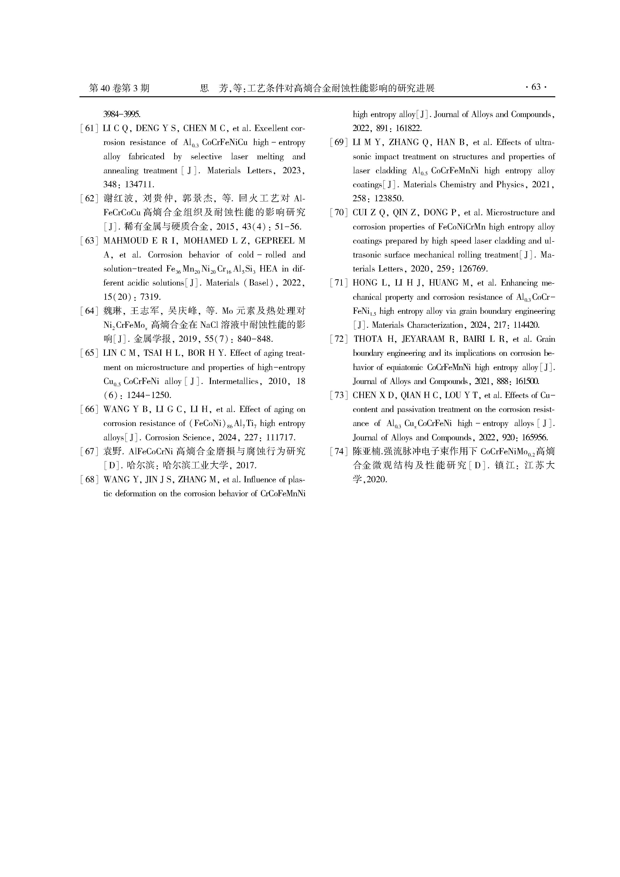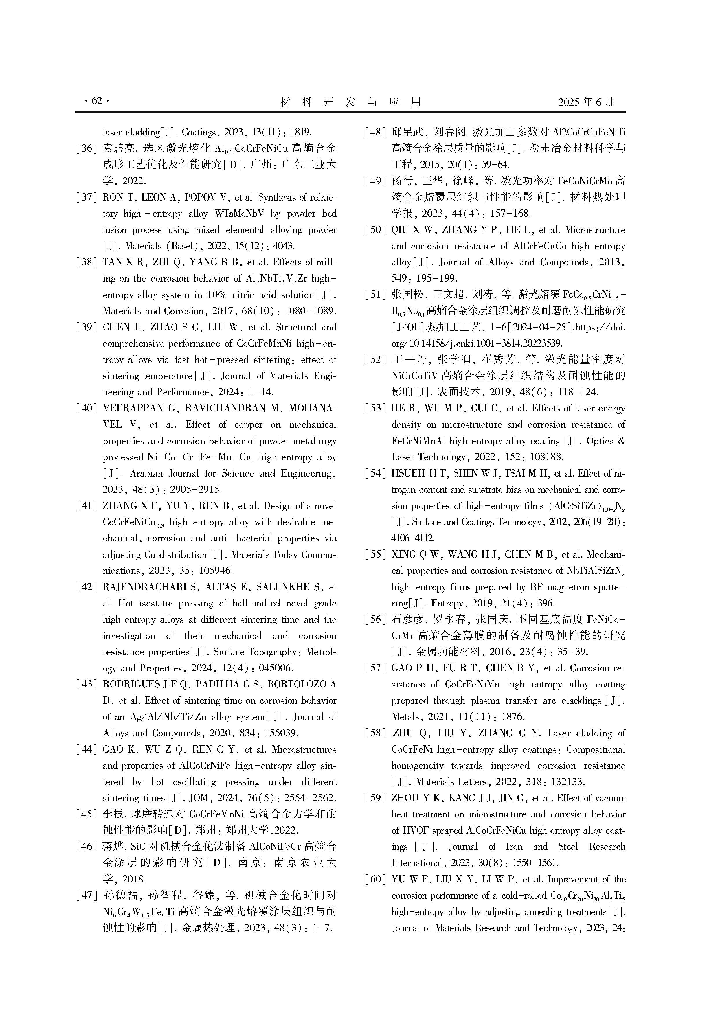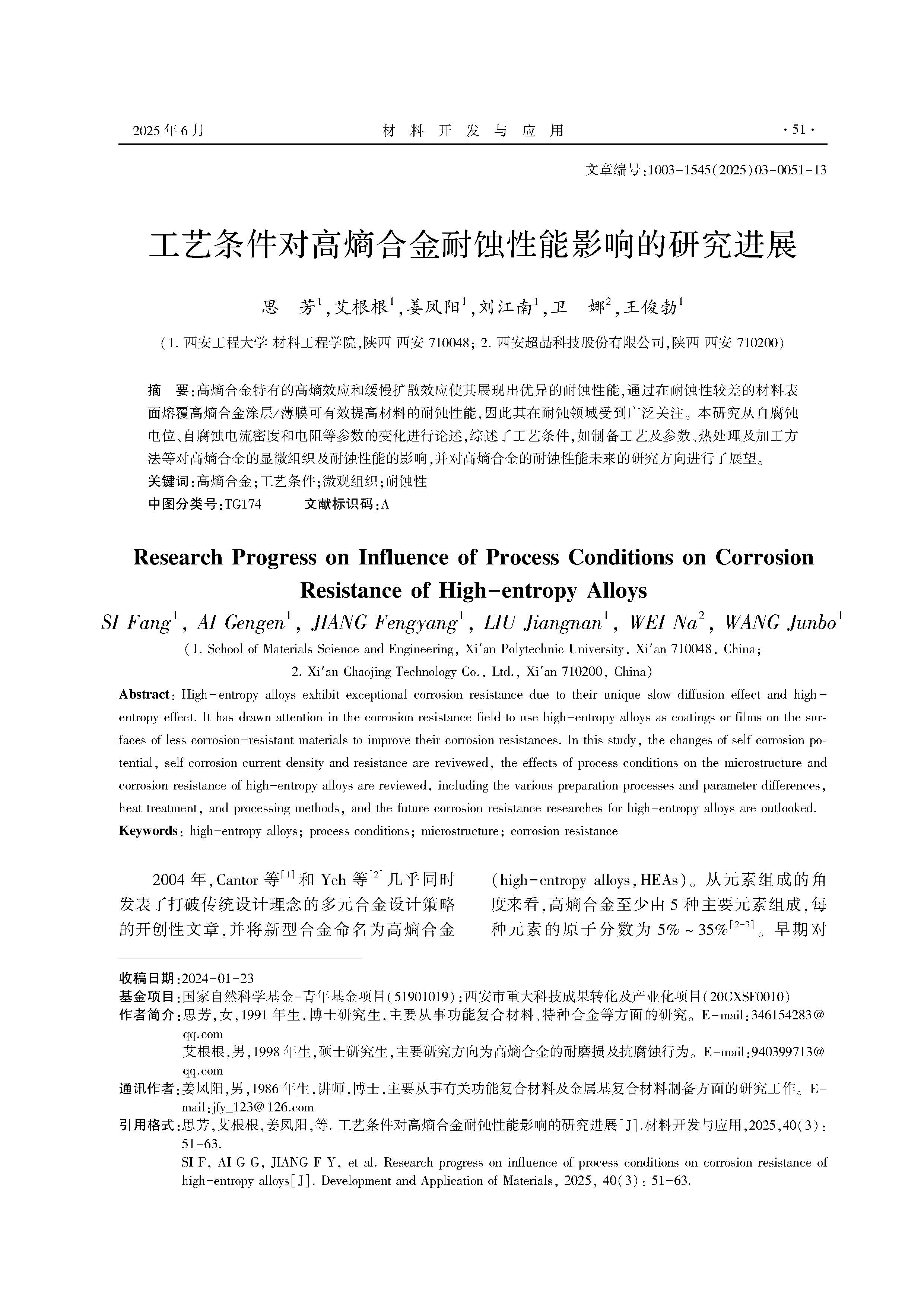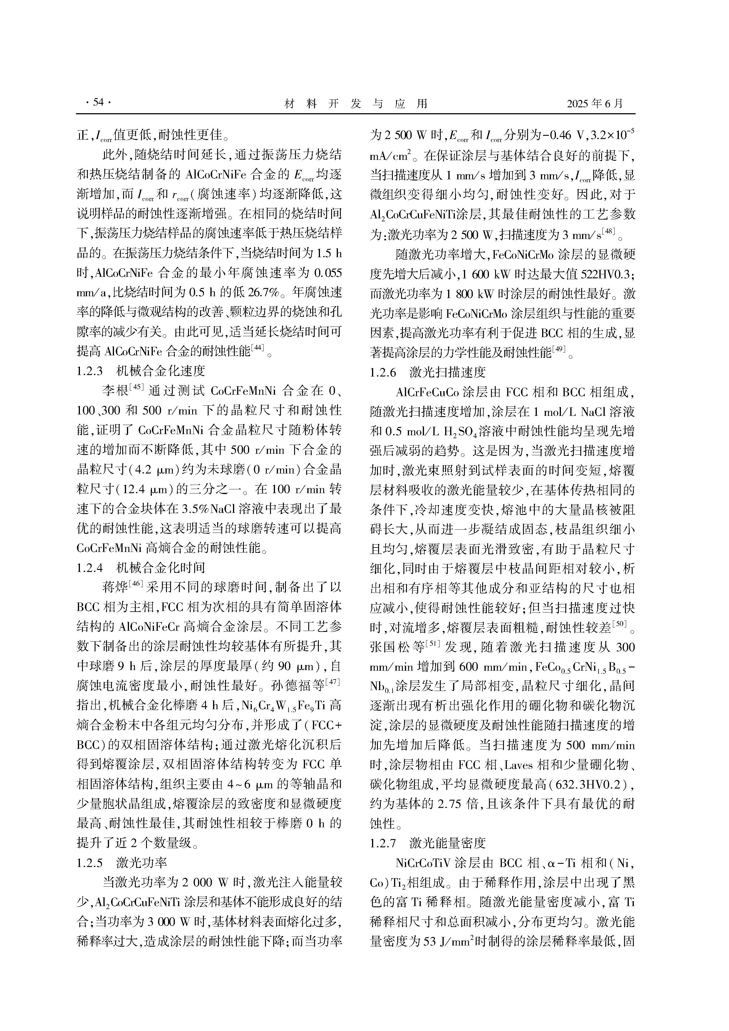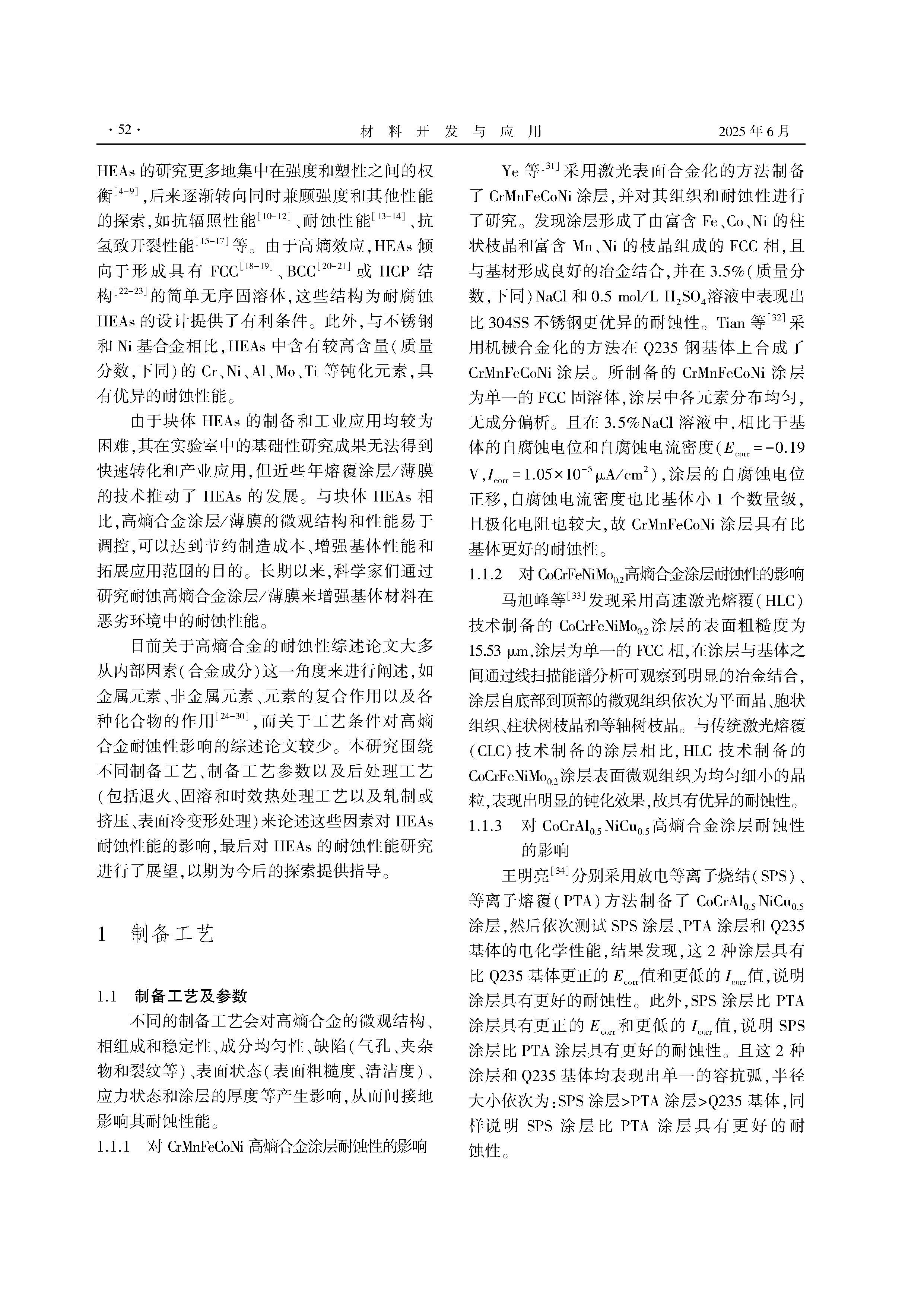 工艺条件对高熵合金耐蚀性能影响的研究进展