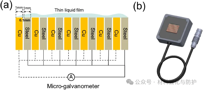 腐蚀监测传感器原理图及实物示意图