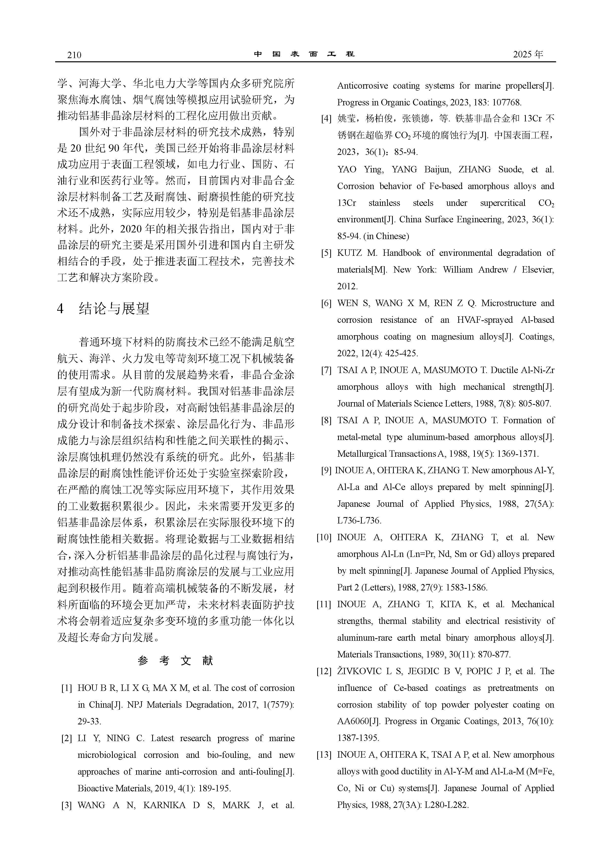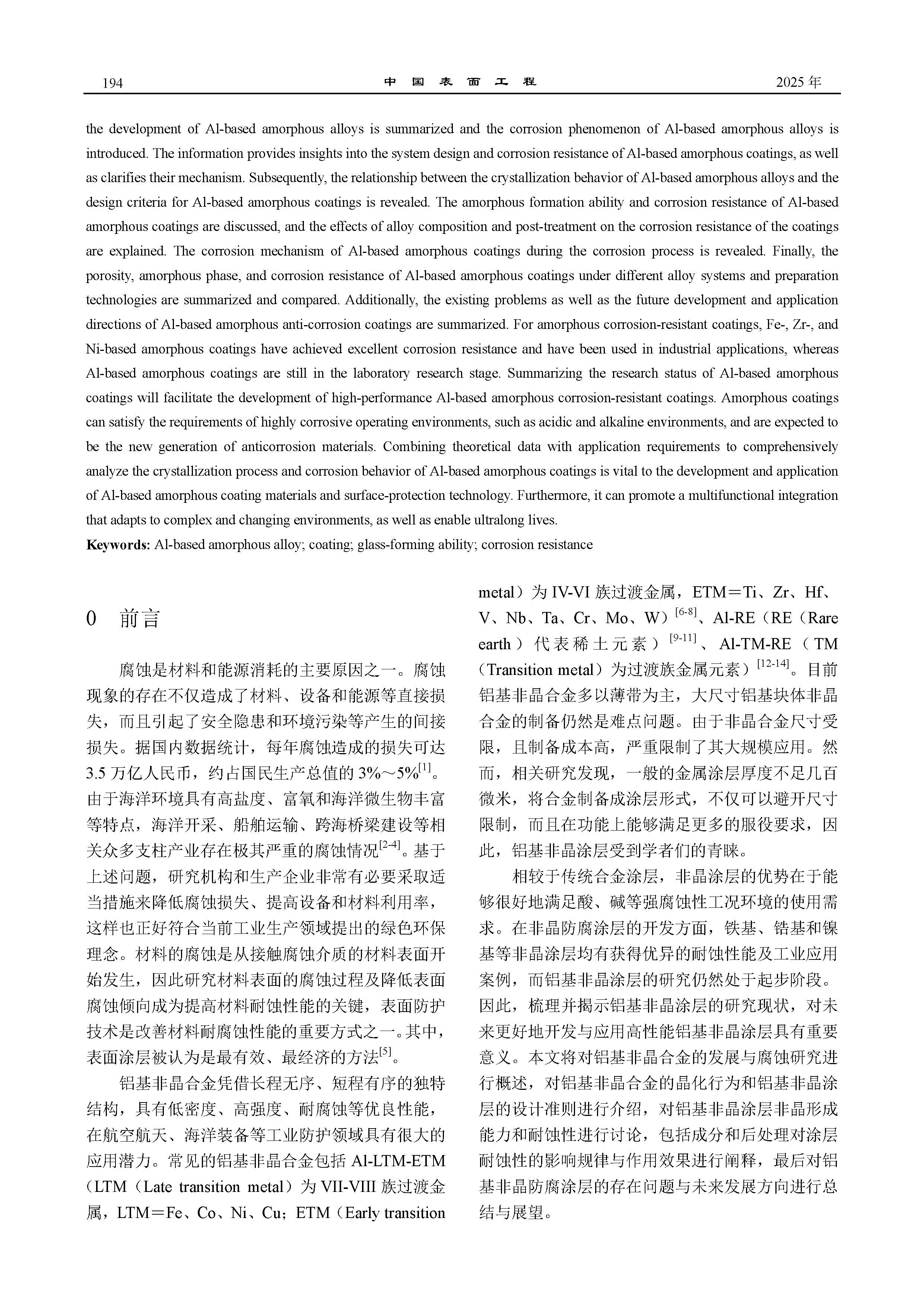 铝基非晶防腐涂层研究进展