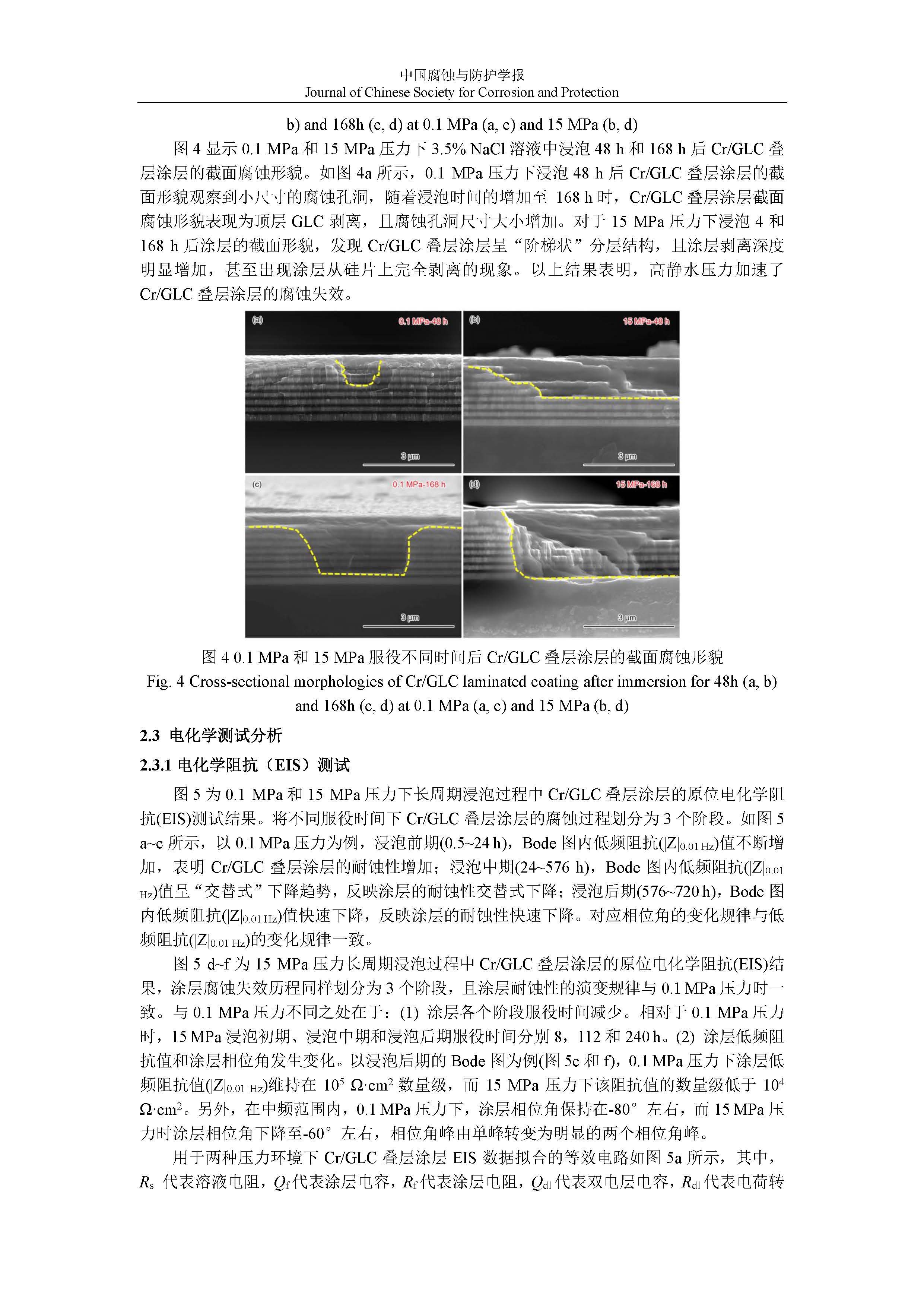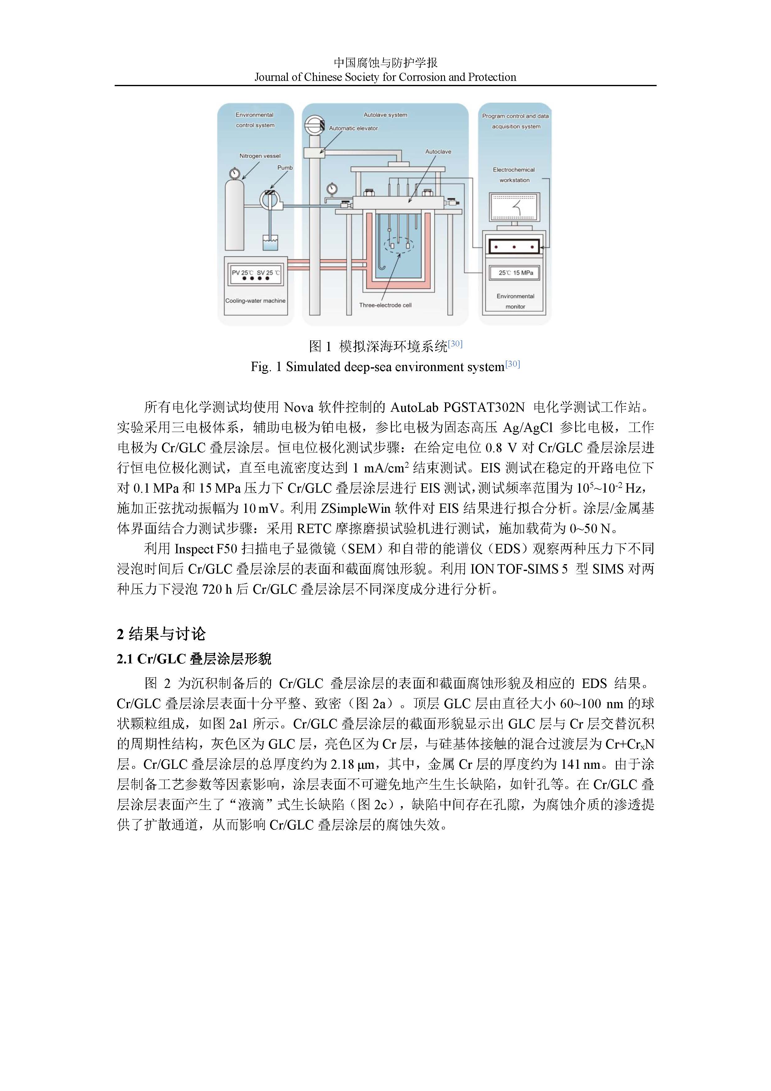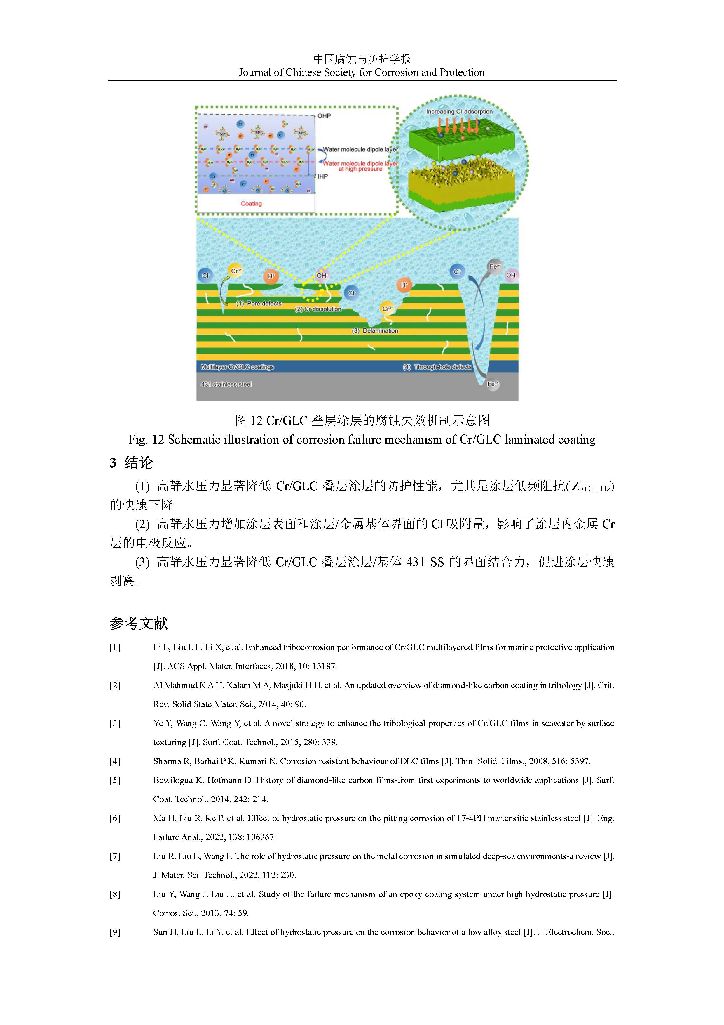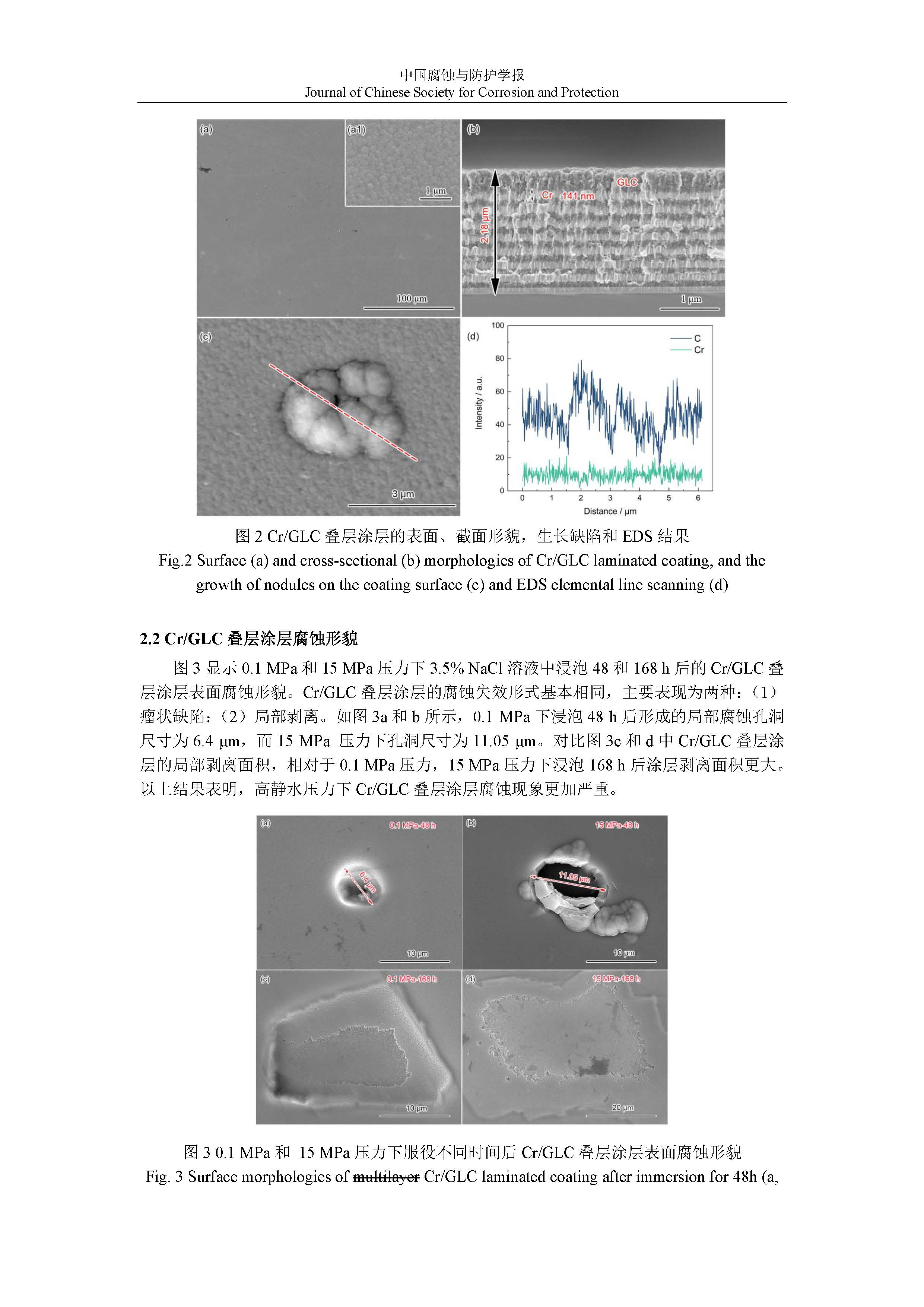 静水压力对Cr/GLC叠层涂层腐蚀行为的影响