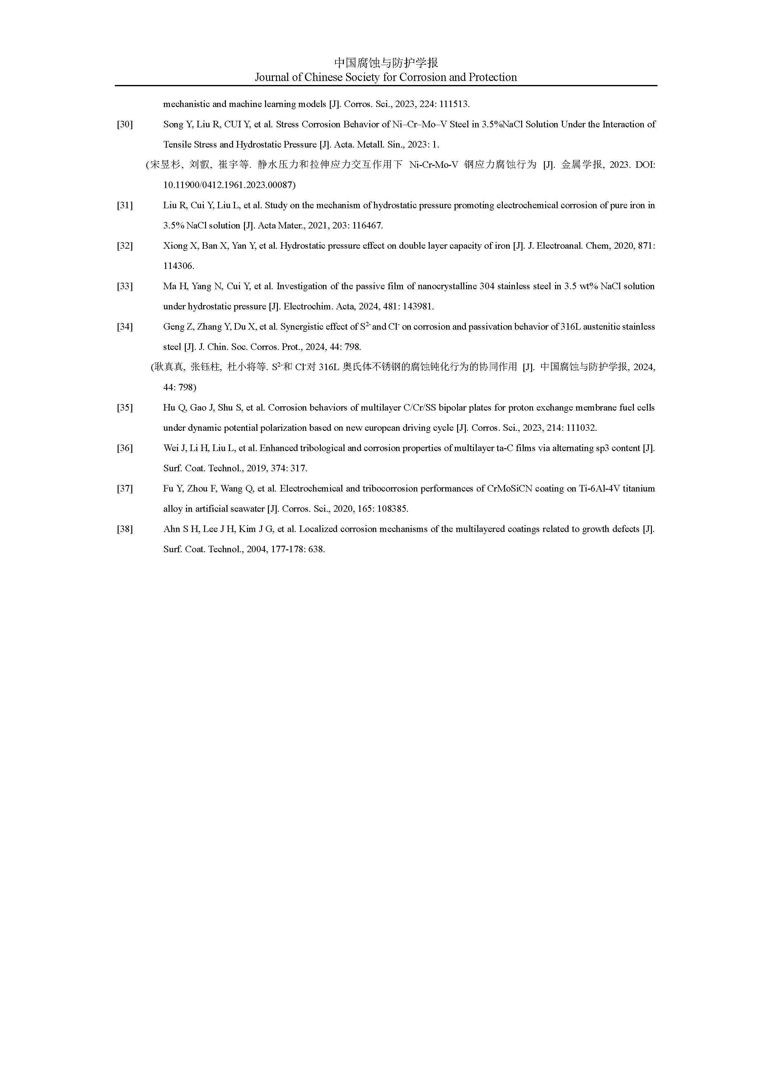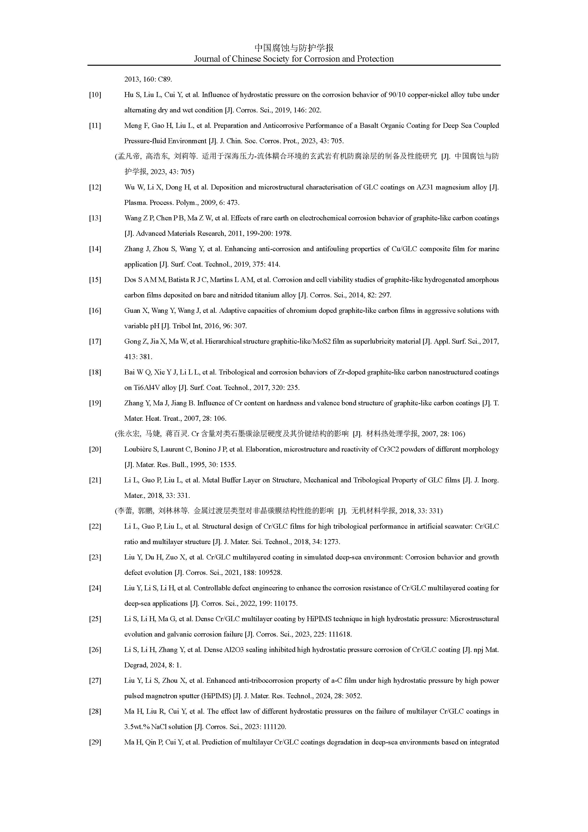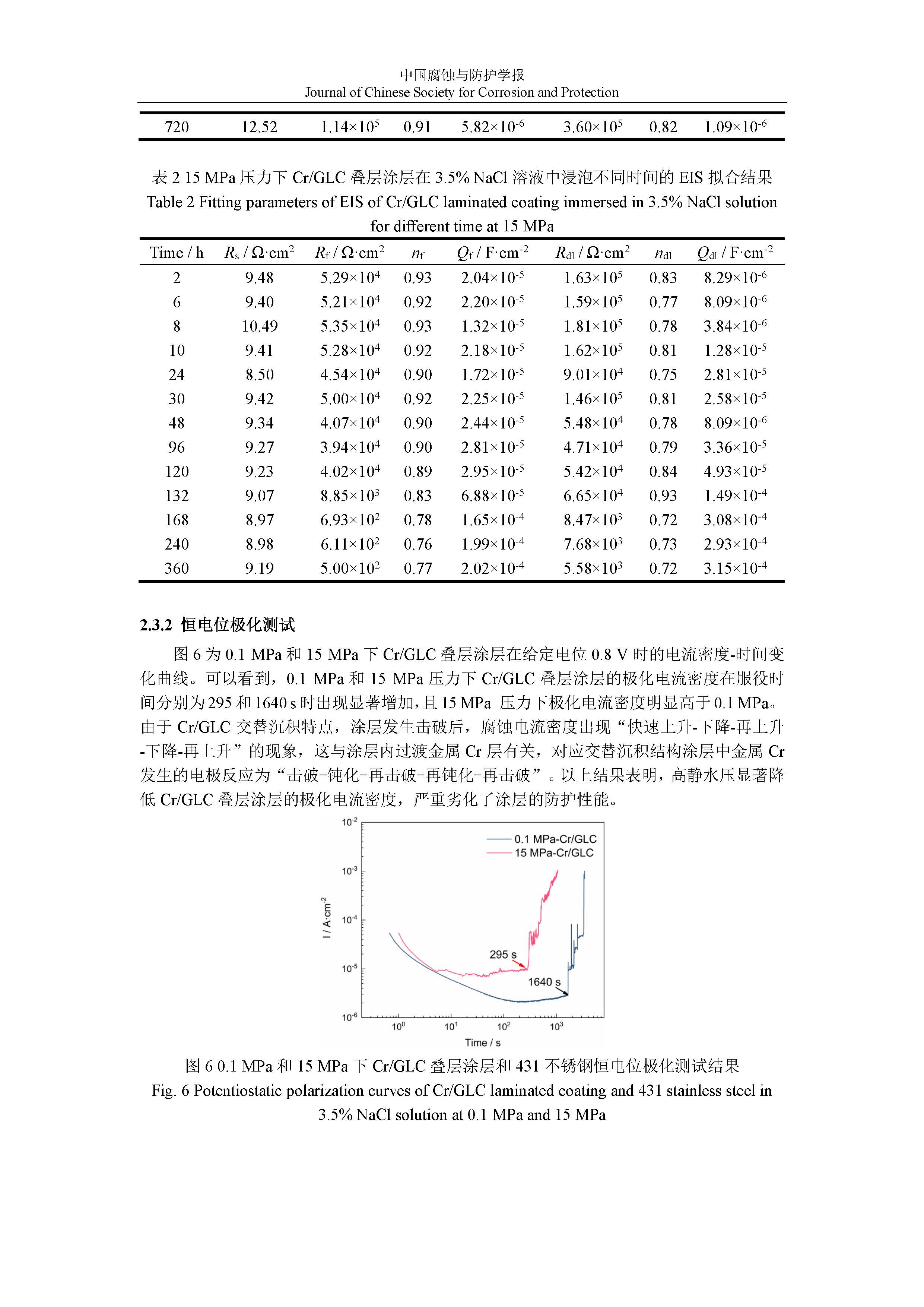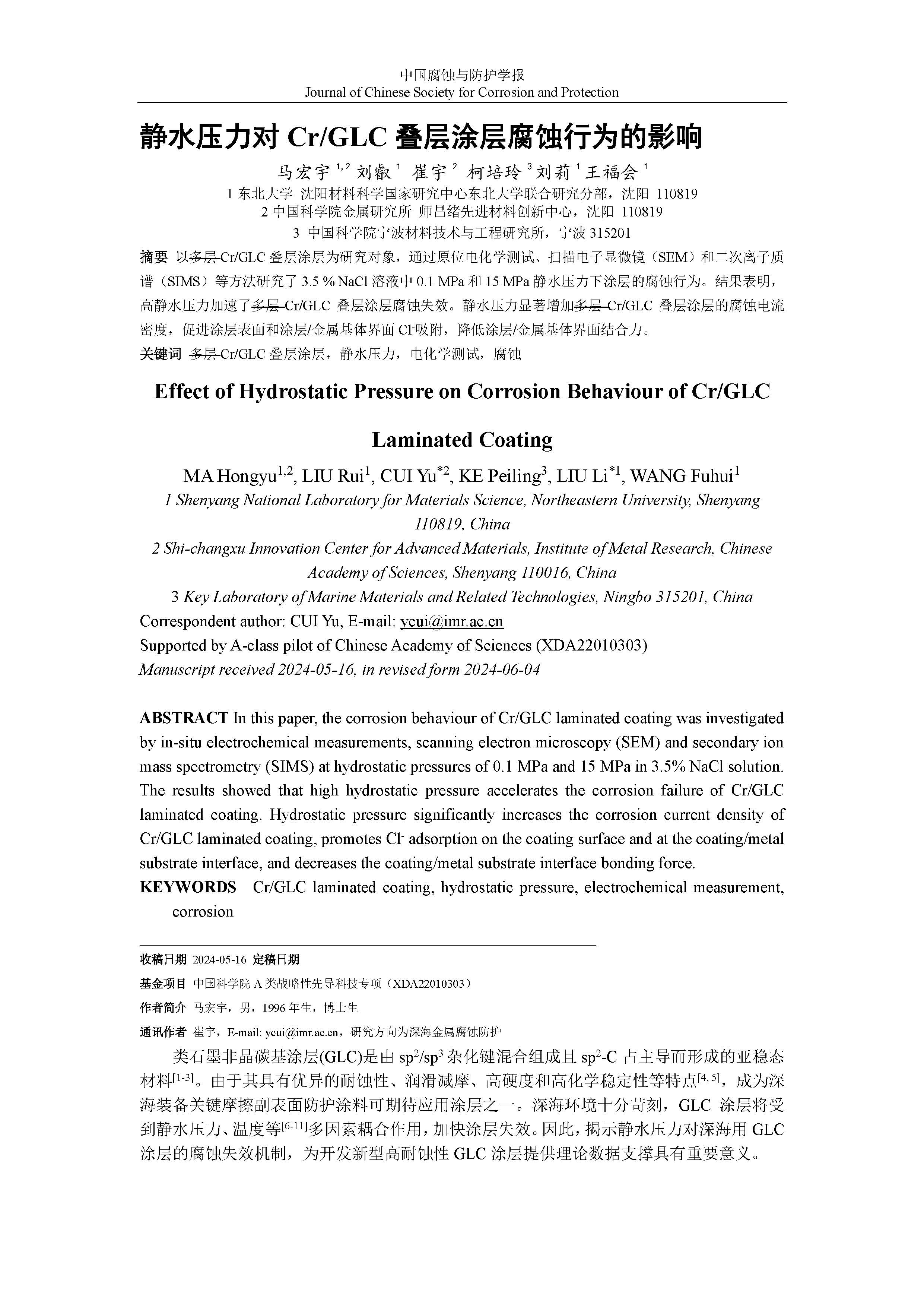 静水压力对Cr/GLC叠层涂层腐蚀行为的影响