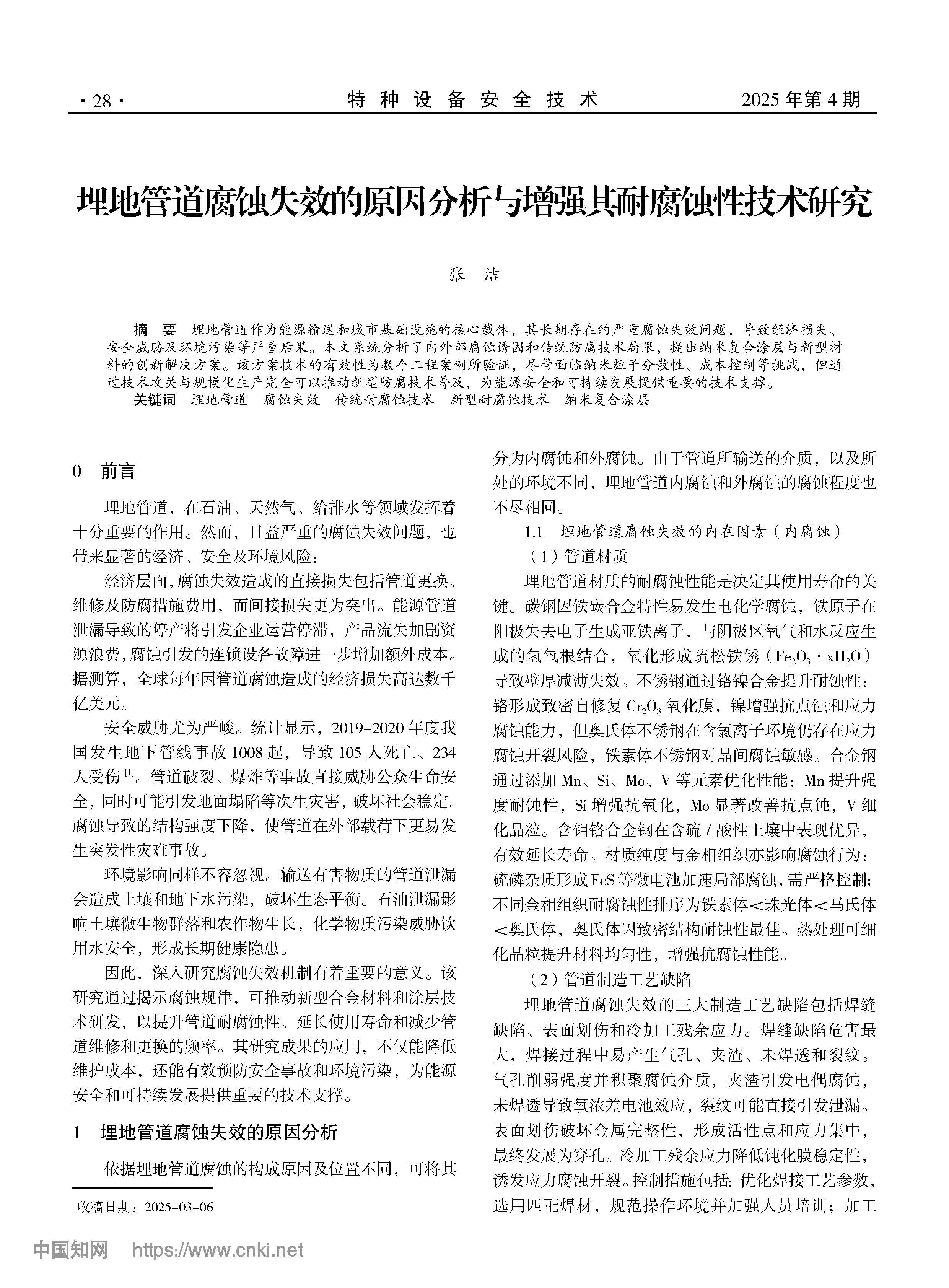 埋地管道腐蚀失效的原因分析与增强其耐腐蚀性技术研究