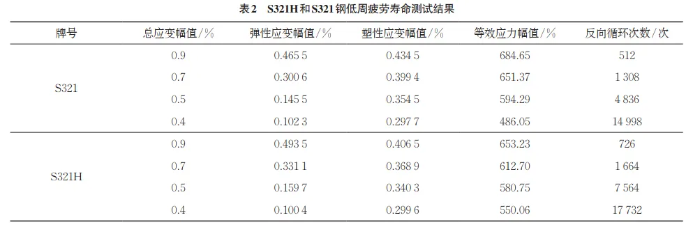 321和321H奥氏体不锈钢低周疲劳寿命的影响因素
