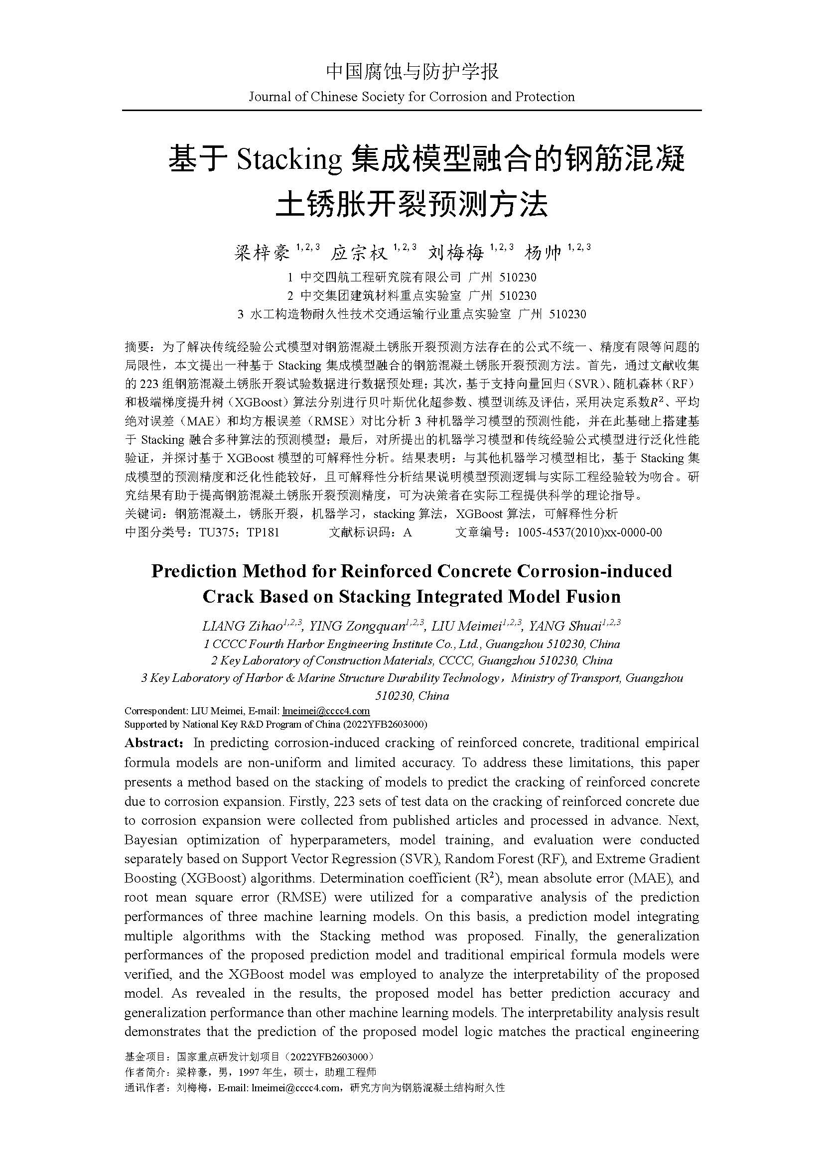 基于Stacking集成模型融合的钢筋混凝土锈胀开裂预测方法