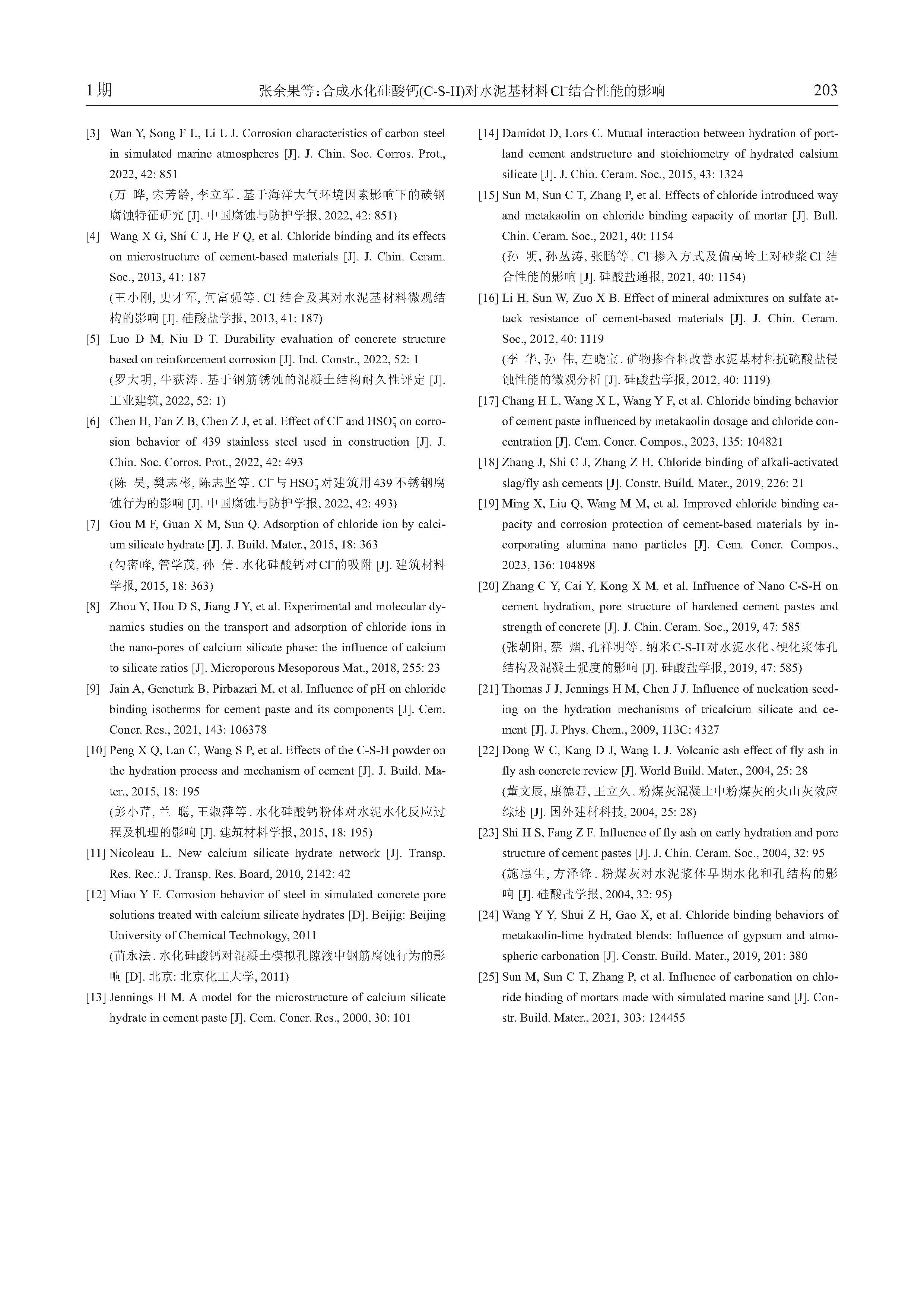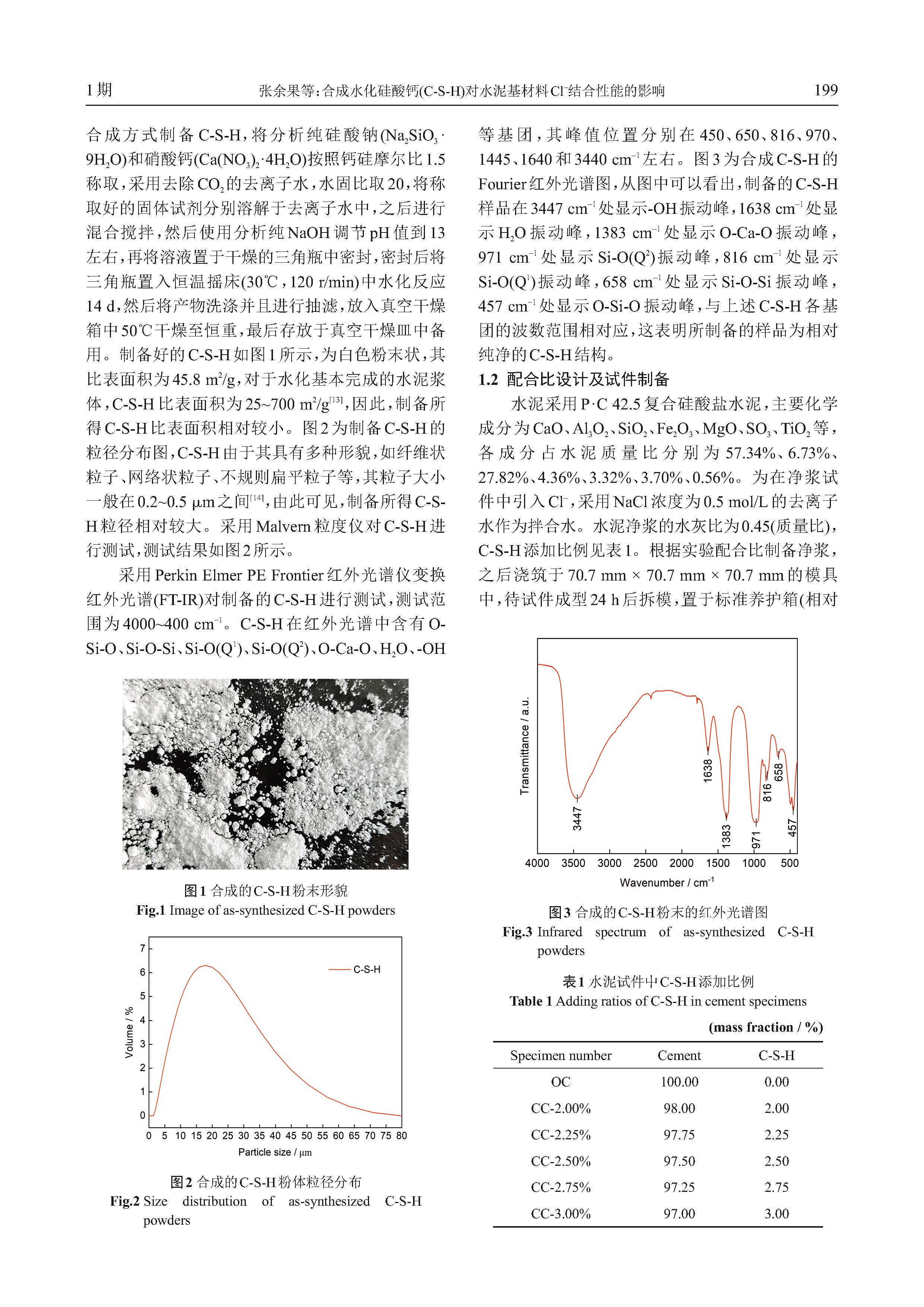 合成水化硅酸钙(C-S-H)对水泥基材料Cl- 结合性能的影响