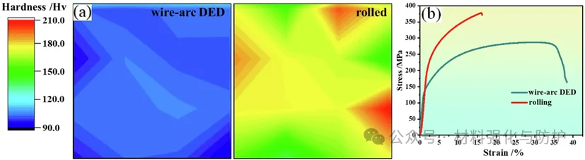 轧制后硬度提升78%,屈服强度提升51%,抗拉强度提升30%,断口形貌由韧窝为主转为准解理面,强化机制包括细晶强化+孪晶强化+弥散强化+织构强化的协同作用。