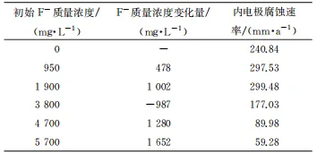 表5 不同初始F-含量下闭塞区F-含量的变化量与内电极的腐蚀速率